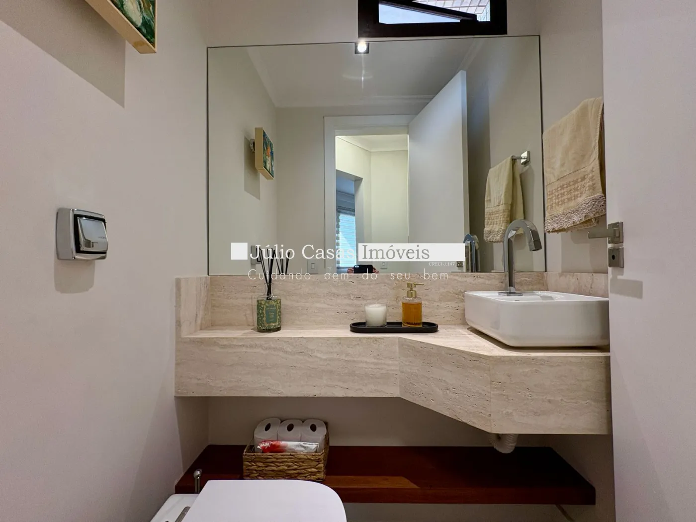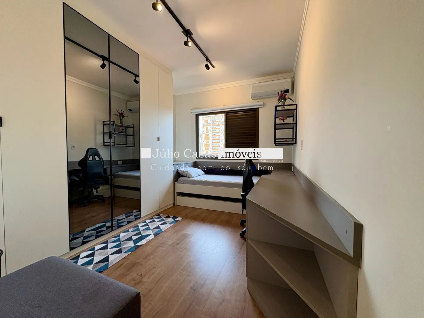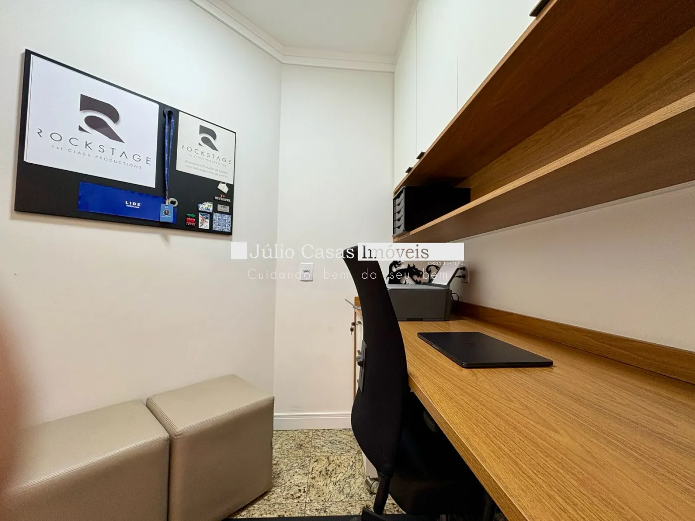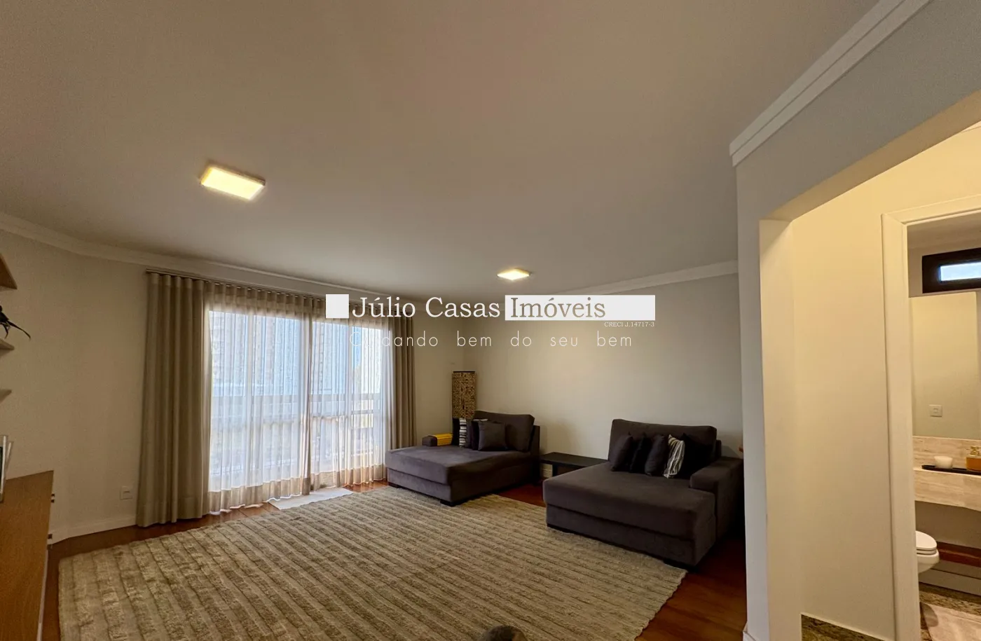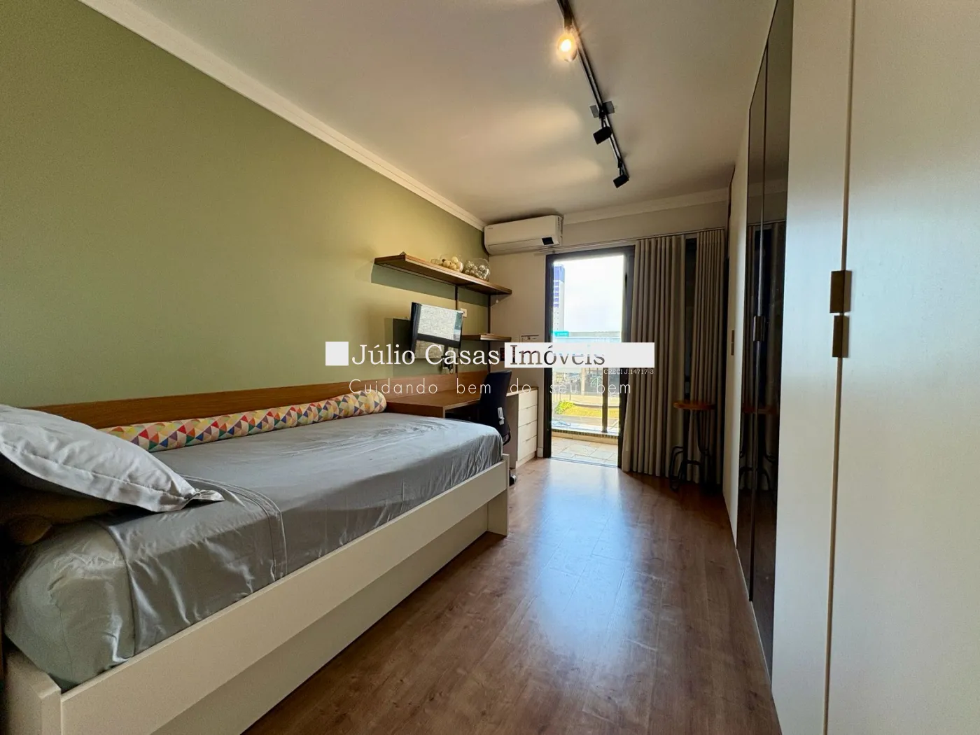 Apartamento muito bem localizado com sala dois ambientes, com sacada, em piso madeira, 3 suítes 2 com varanda e 1 com closet, todos modulados, cozinha com copa modulada, área de serviço com dependência de empregada completa, piso em granito nas áreas frias, quartos em carpetes de madeira, 2 vagas de garagem gaveta, elevador privativo.