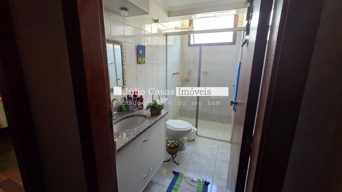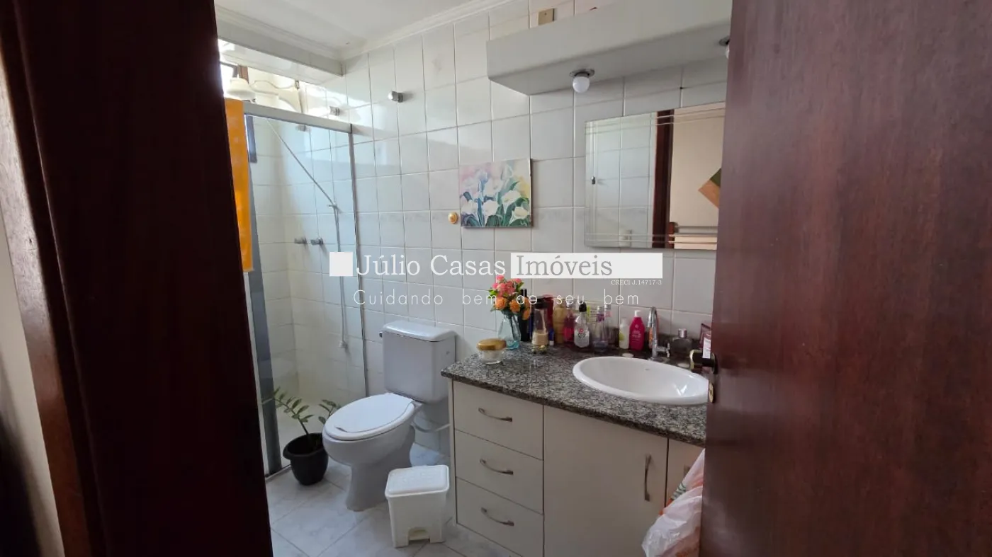 banheiros com box em vidro e gabinetes. 2 vagas de garagem cobertas e um depósito.