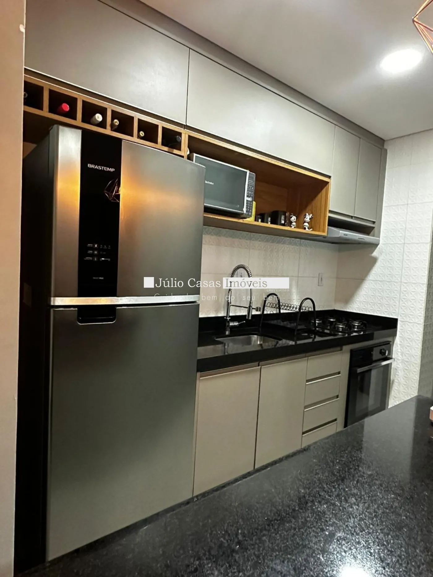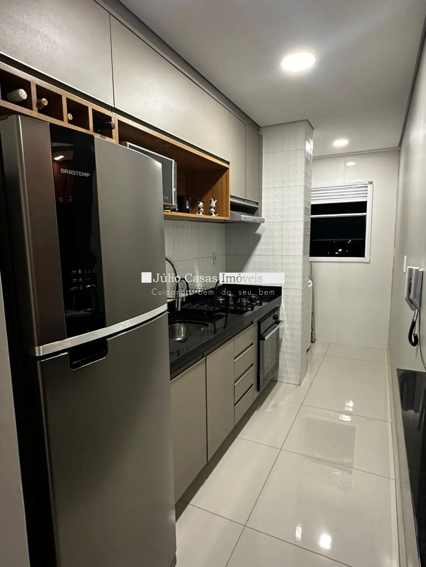 Apartamento moderno com 02 quartos. Sala dividida em dois ambientes para estar TV e jantar, com sanca de gesso rebaixada e iluminada no teto. Armários modulados planejados clean e modernos na cozinha. Armários modulado na parede inteira nos dois quartos. Ar condicionado no quarto principal. Cozinha do tipo americana com forno, cooktop e sugar. A sacada possui pia de granito o que possibilita aproveitar momentos agradáveis enquanto aprecia a vista externa. O condomínio conta com piscina adulto e infantil, espaço gourmet, playground, salão de festas, elevador e portaria 24 horas e sistema de segurança.