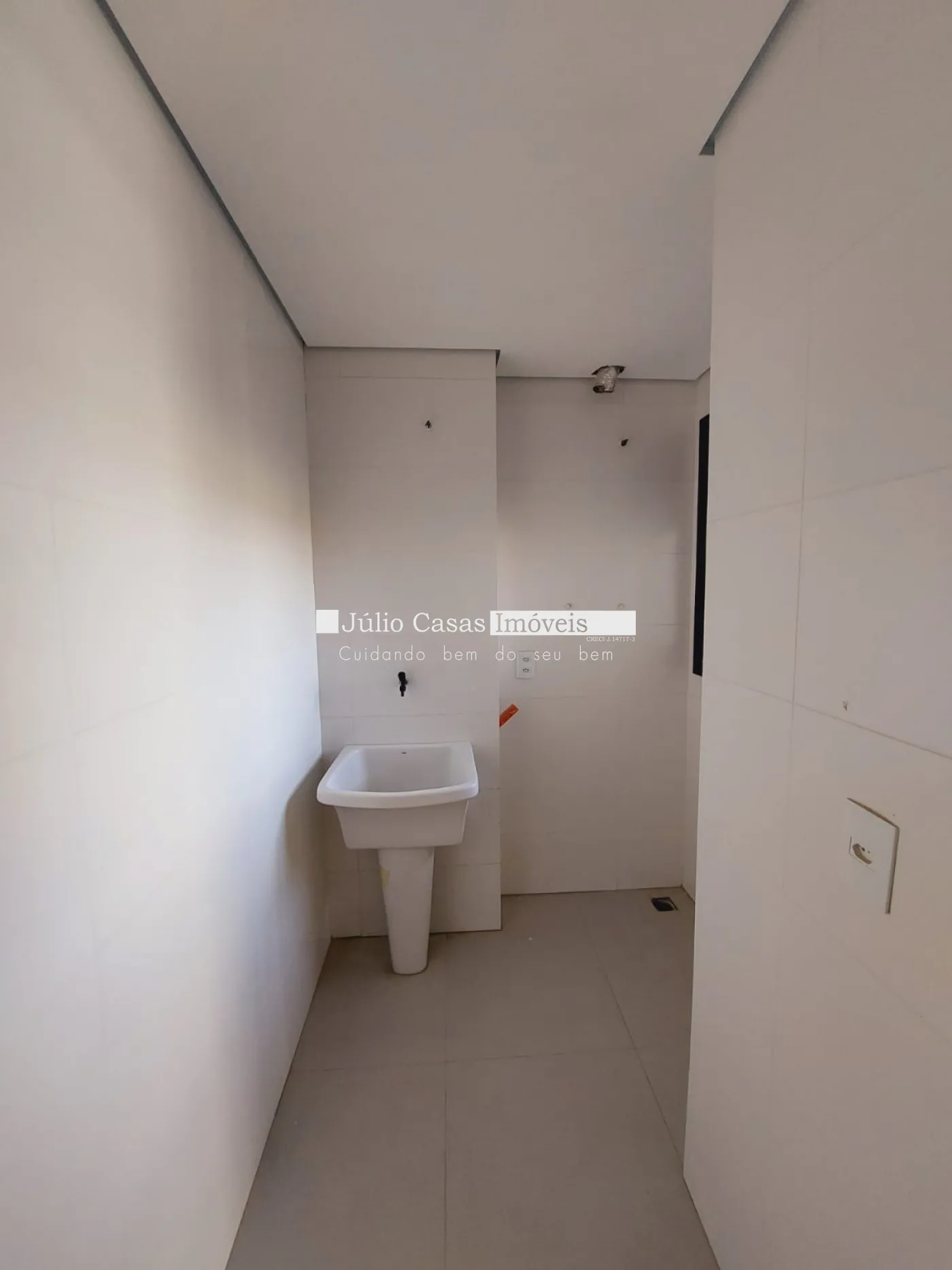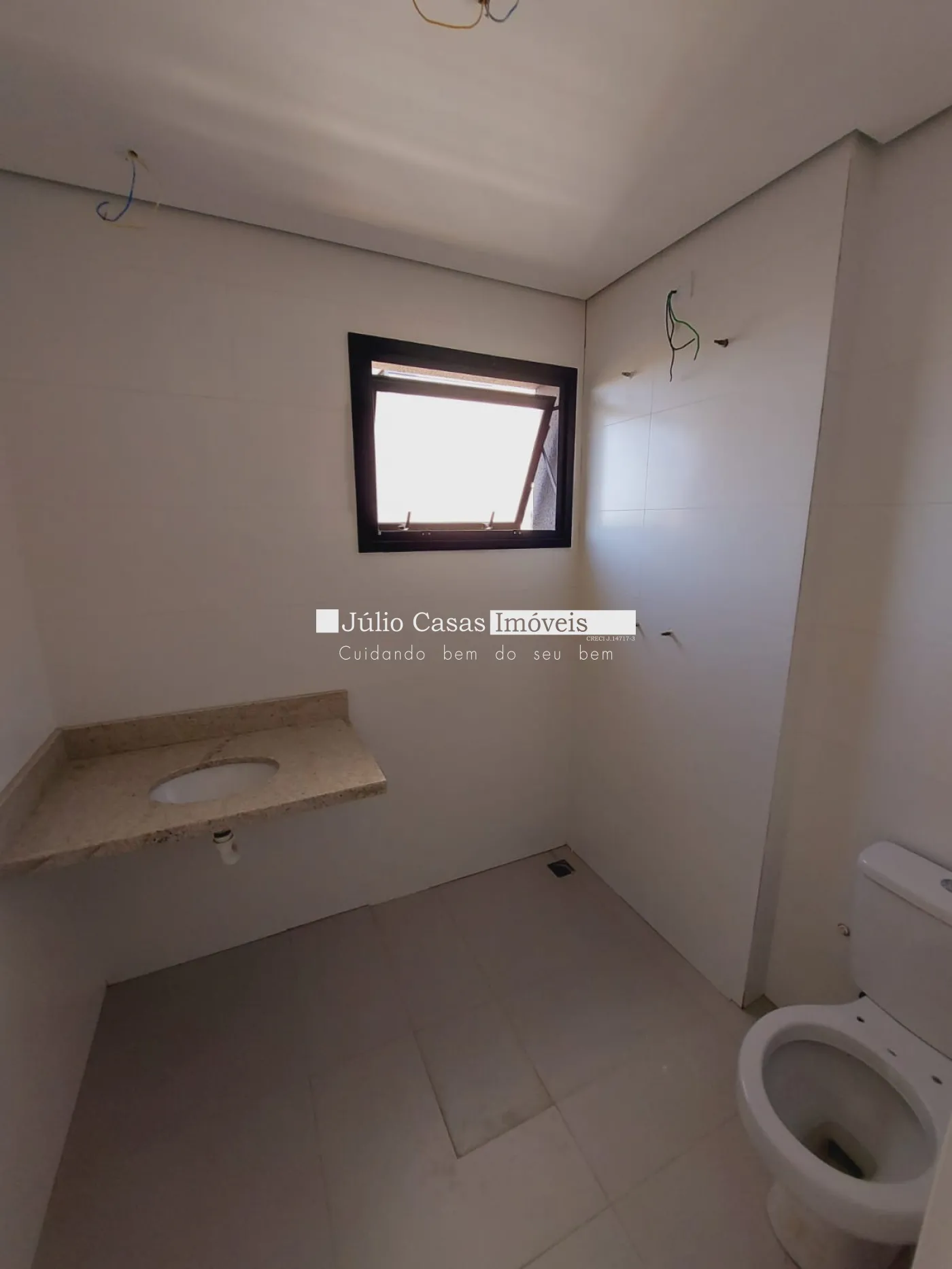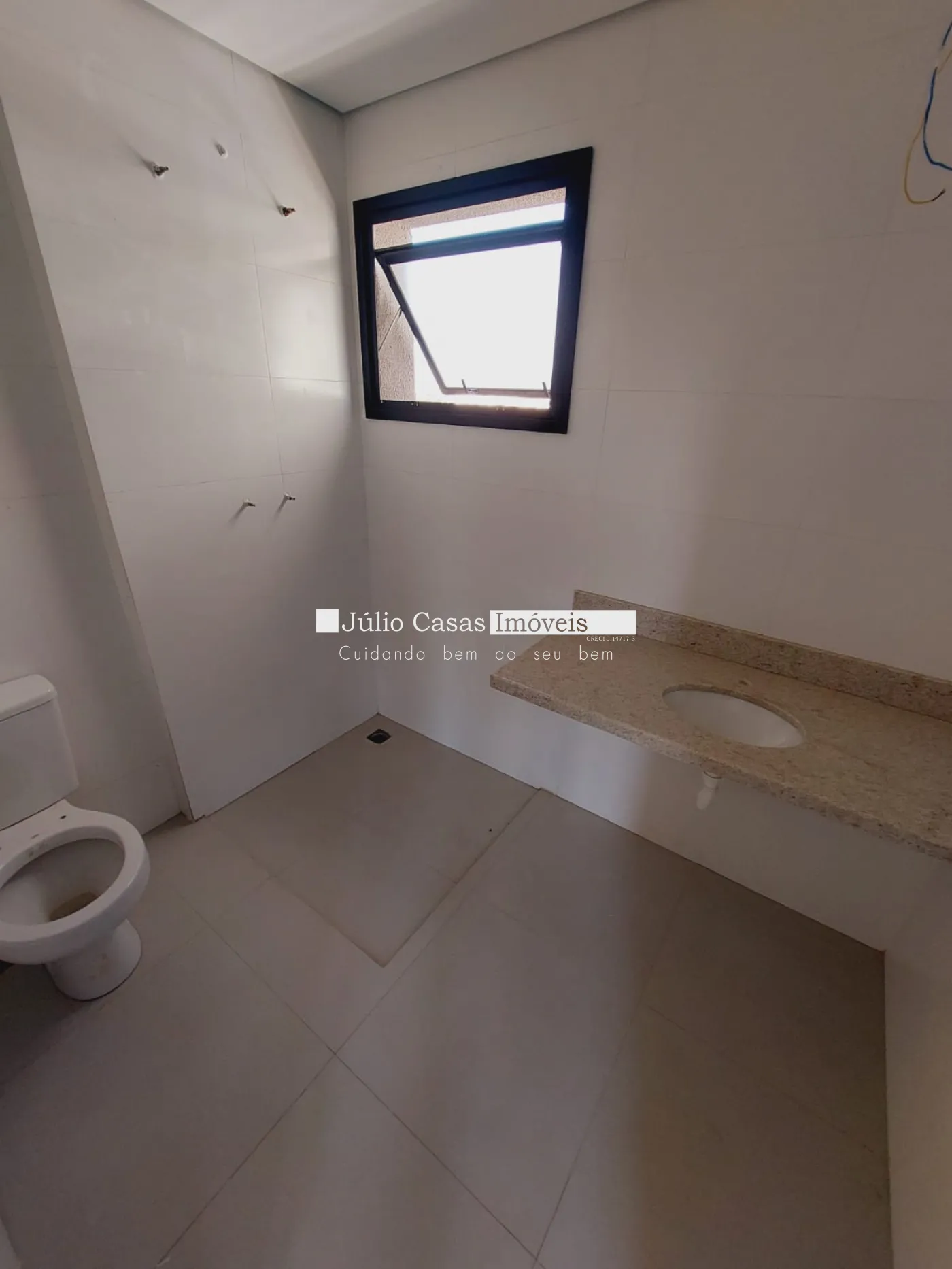 Sala com lavabo, cozinha ampla com pia em granito São Gabriel, 3 quartos amplos em piso laminado, 1 sendo suíte.