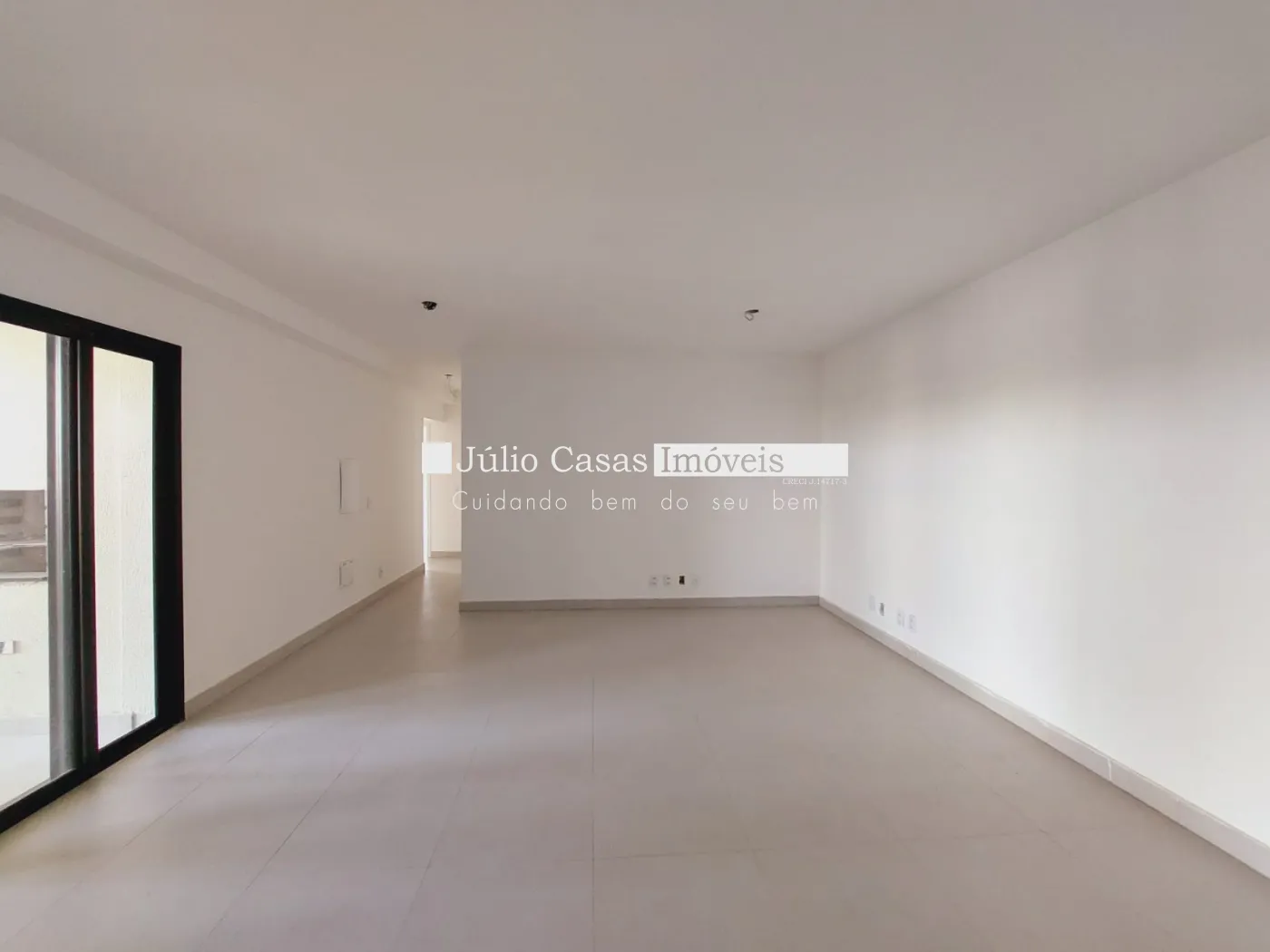 Apartamento a venda com sala 2 ambientes integrada a varanda gourmet em piso porcelanato. Varanda com pia e churrasqueira.