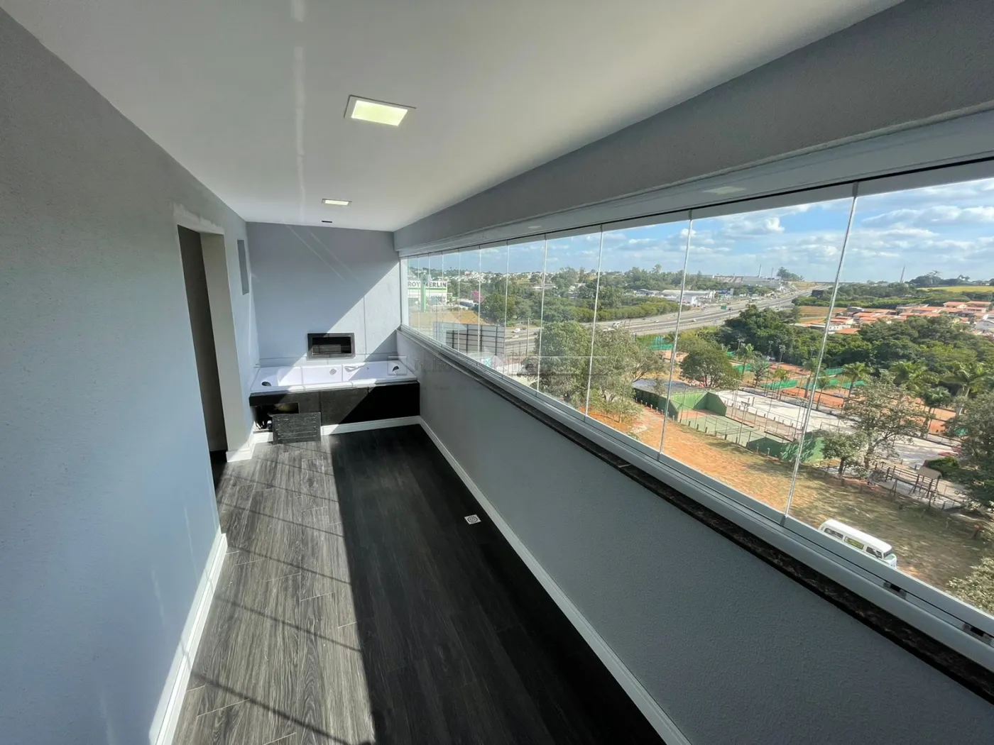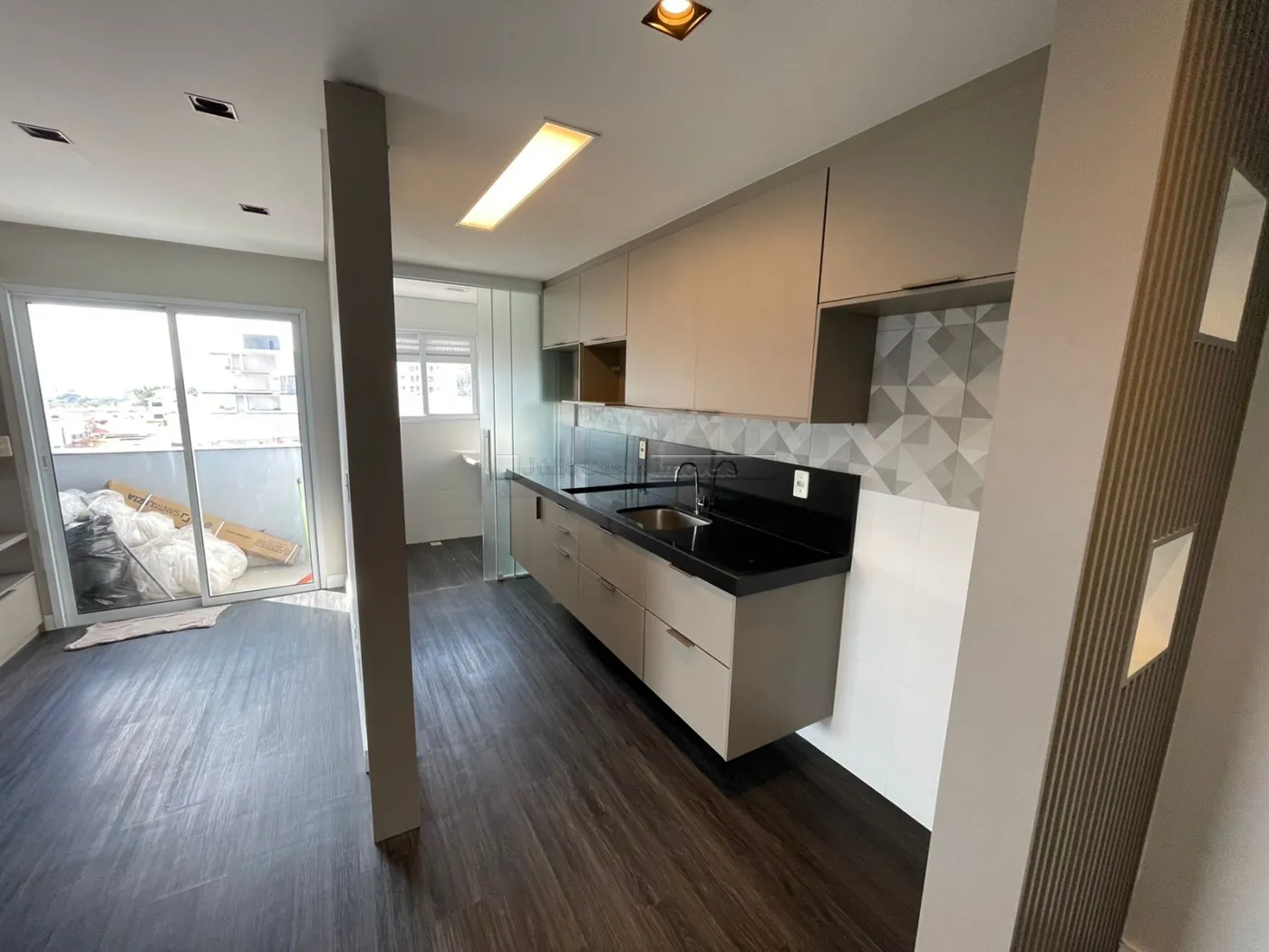mobiliado e modulado, sala com varanda e banheira com hidro, sala, cozinha integrada, dormitório, cozinha toda modulada com área de serviço com fechamento em porta em vidro.