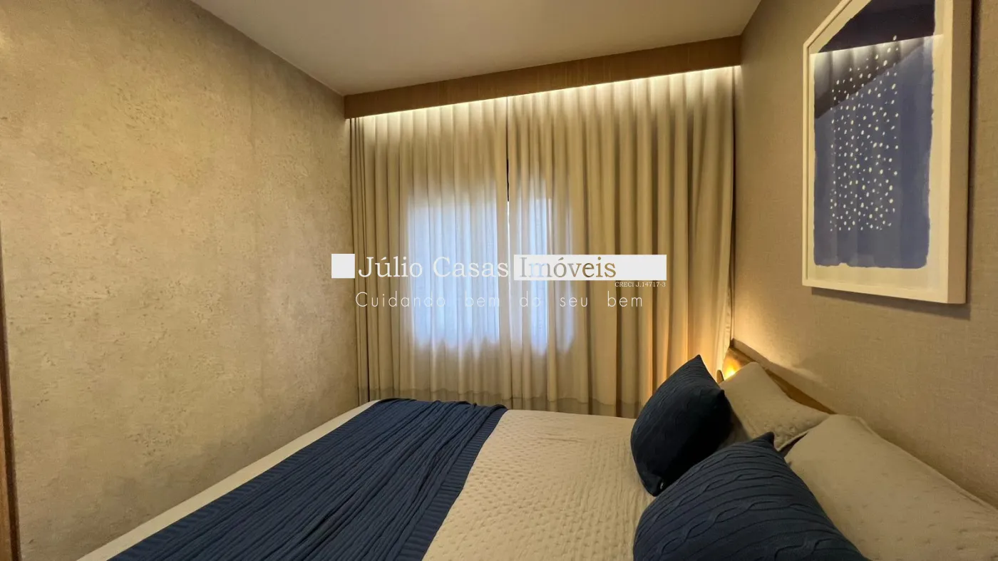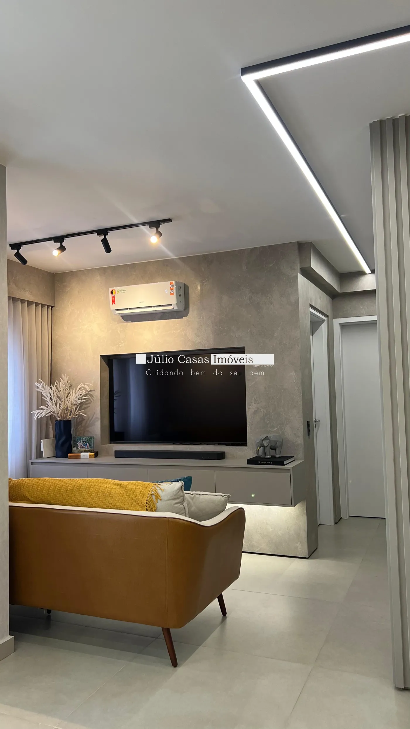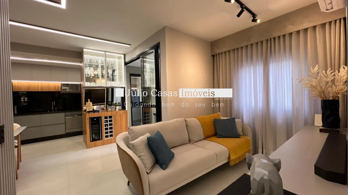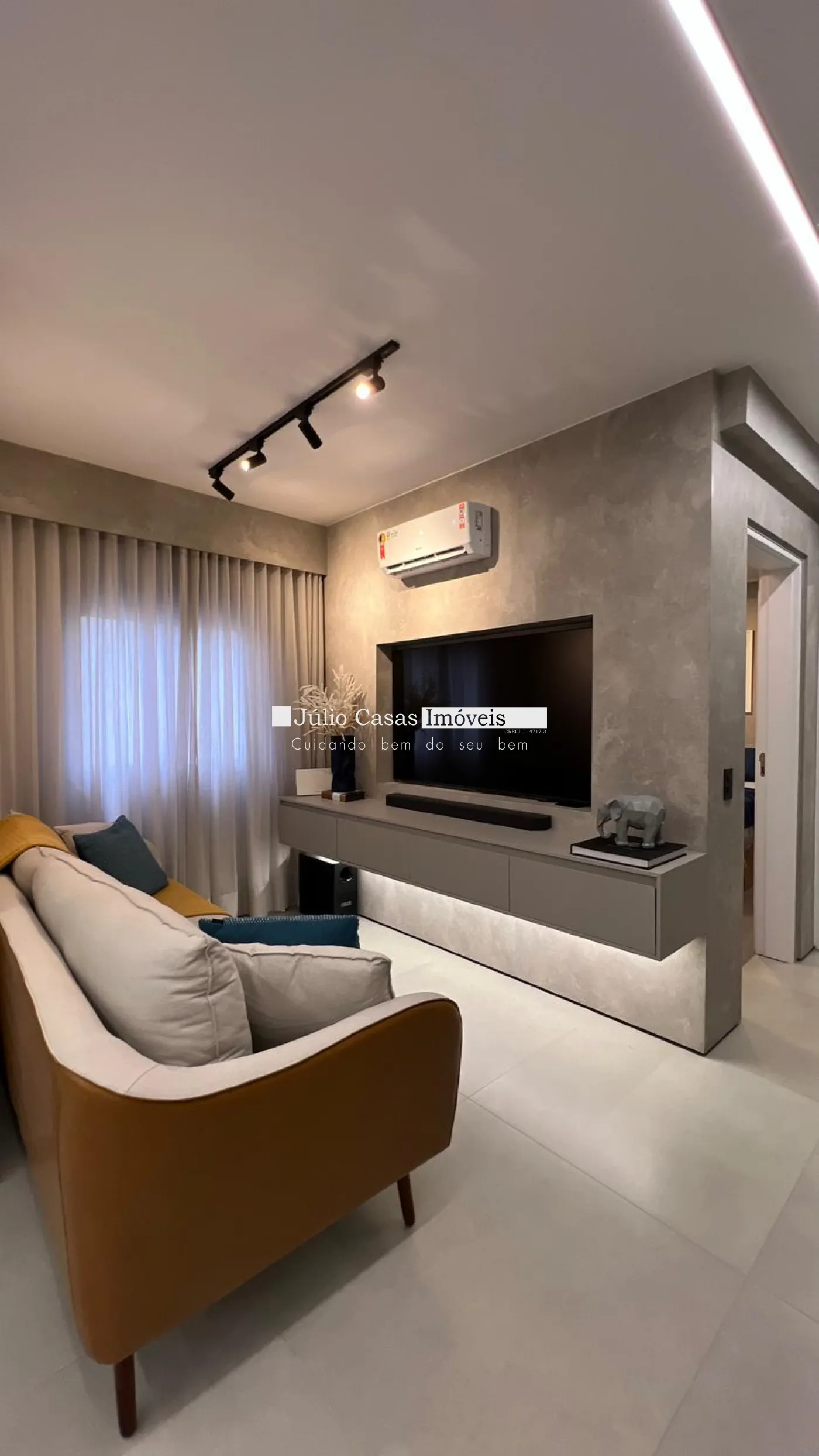 O imóvel conta com dois dormitórios, todos com armários modulados e ar condicionado, sendo um deles uma suíte, além de um banheiro social. Para sua conveniência, são duas vagas de garagem cobertas.
