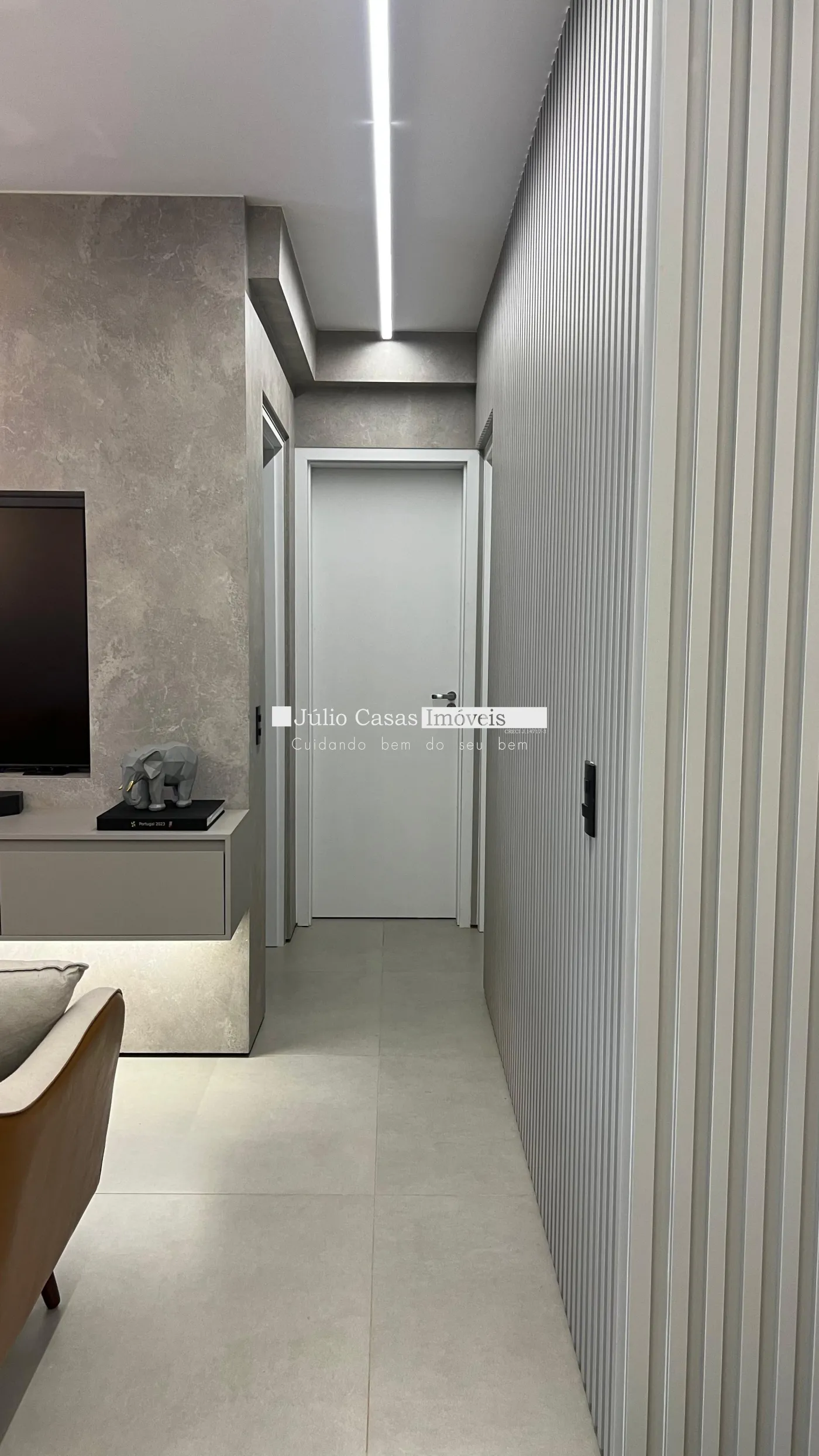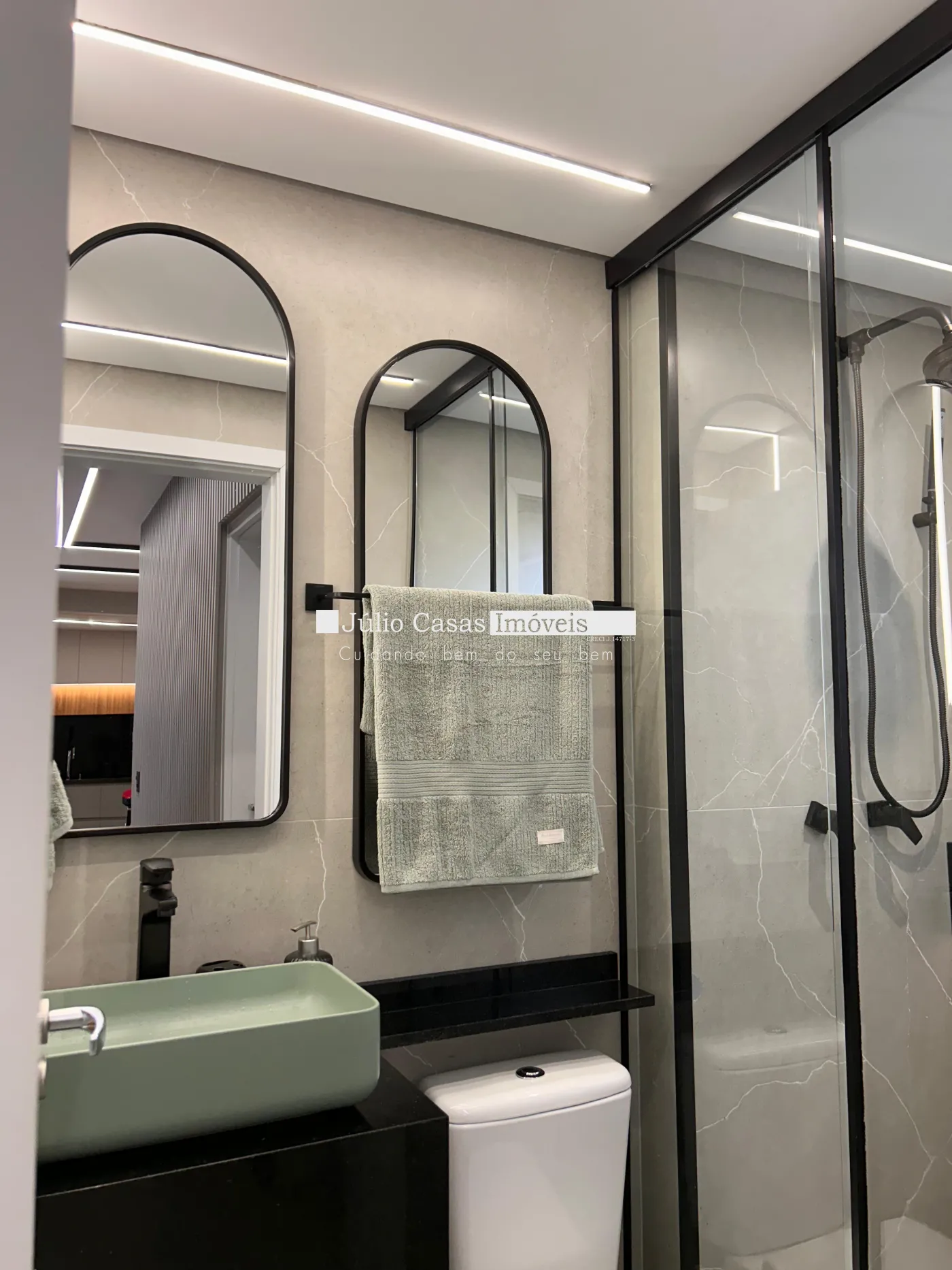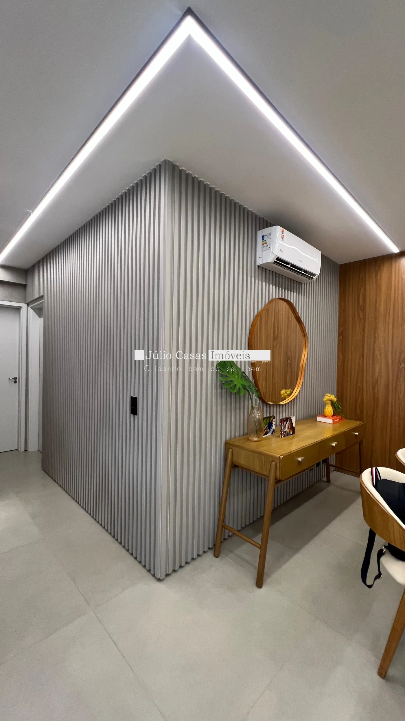 O imóvel conta com dois dormitórios, todos com armários modulados e ar condicionado, sendo um deles uma suíte, além de um banheiro social. Para sua conveniência, são duas vagas de garagem cobertas.