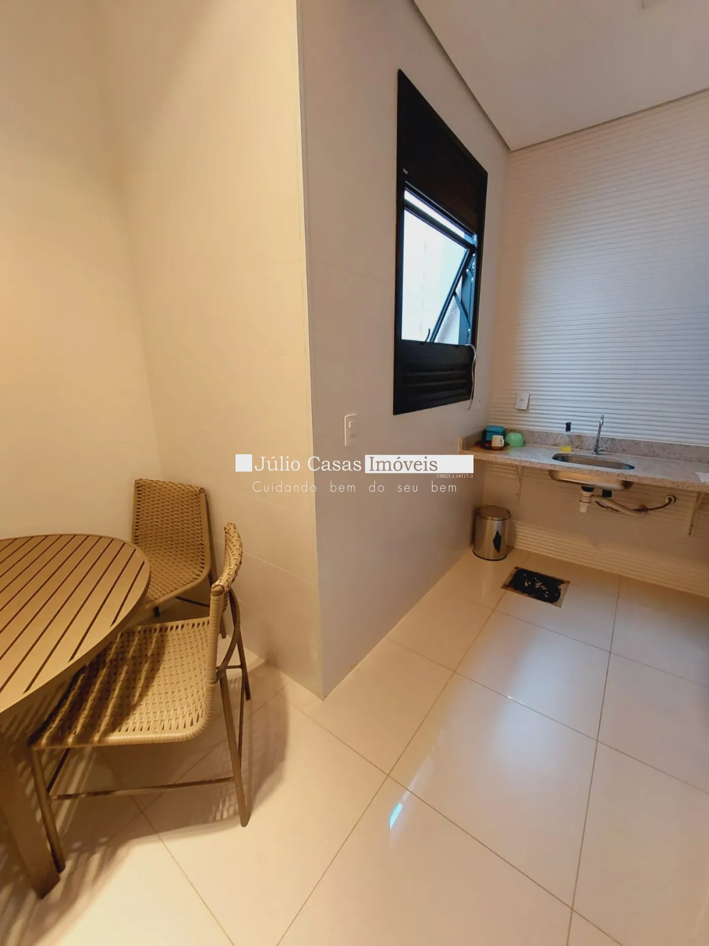 Apartamento com sala 2 ambientes, varanda gourmet com pia e churrasqueira, lavabo, cozinha integrada na sala e varanda, área de serviço com varanda técnica e wc de serviço.