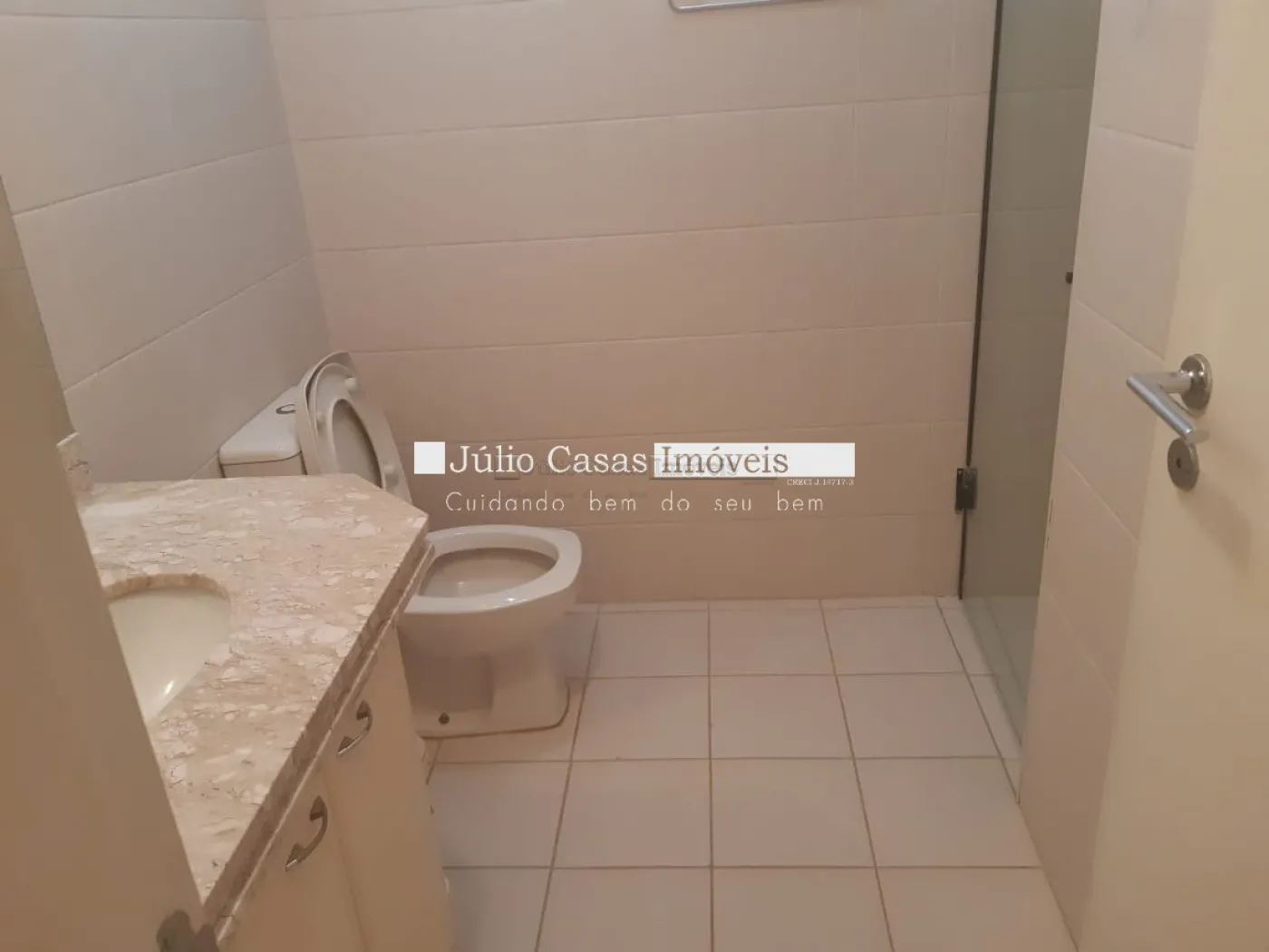Banheiro Social: Elegante, com box de vidro e gabinete, combinando estilo e funcionalidade.