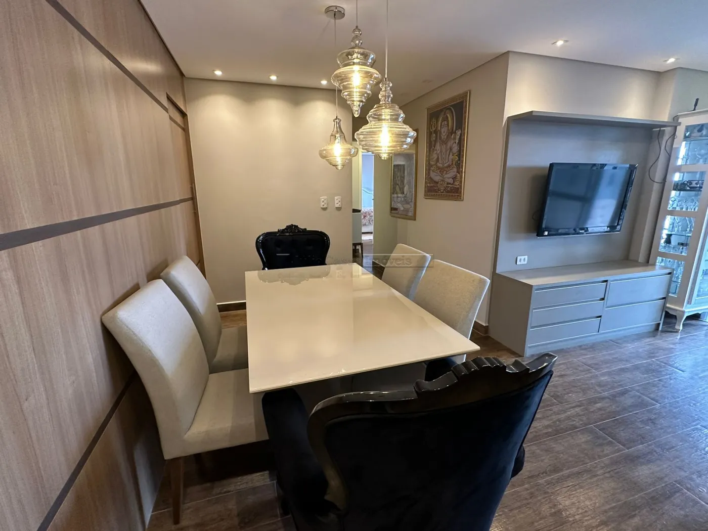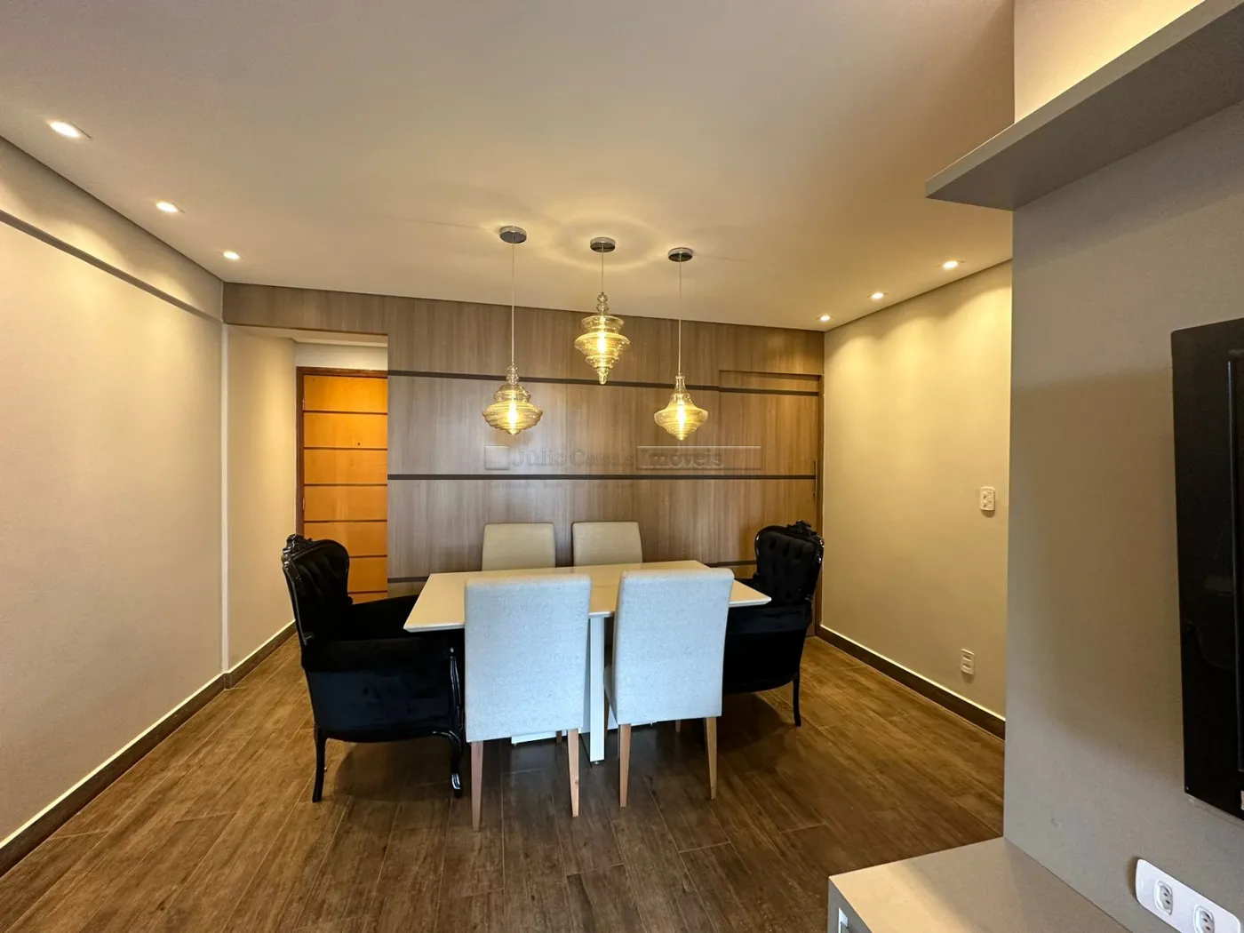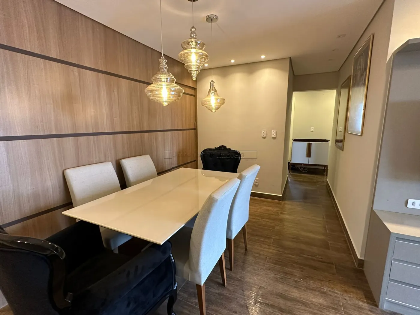 As suítes são espaçosas e possuem armários modulados e ar condicionado, garantindo um bom descanso e privacidade. A sala de estar é ampla e bem iluminada, com acesso à varanda. A sala de jantar é integrada à cozinha, que é planejada. A área de serviço é separada da cozinha e possui tanque.