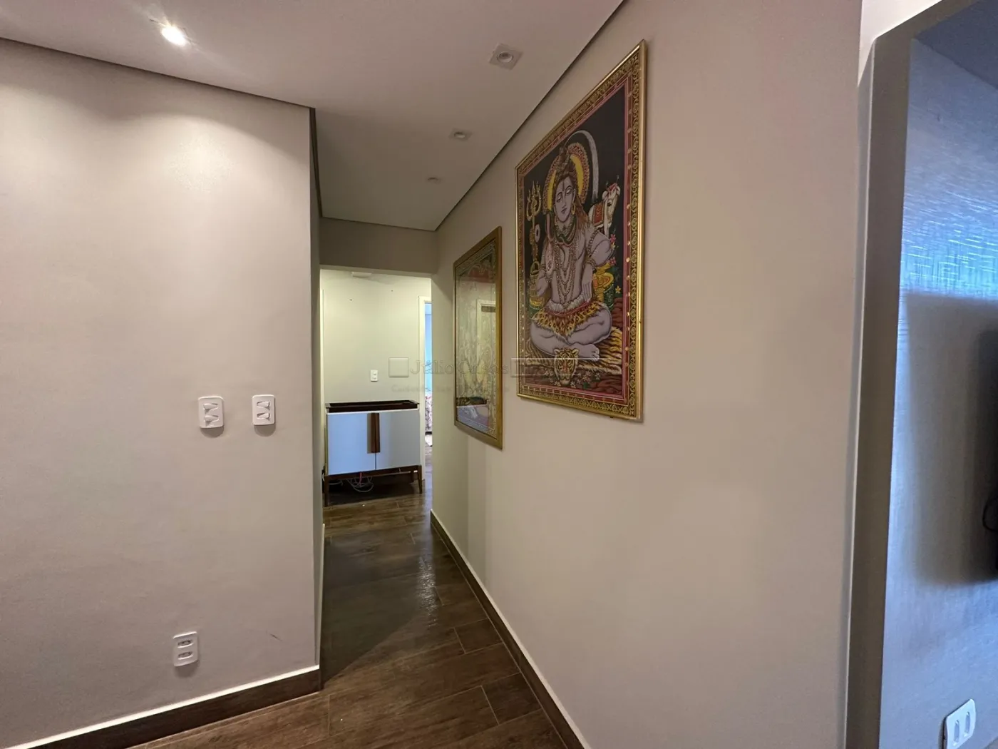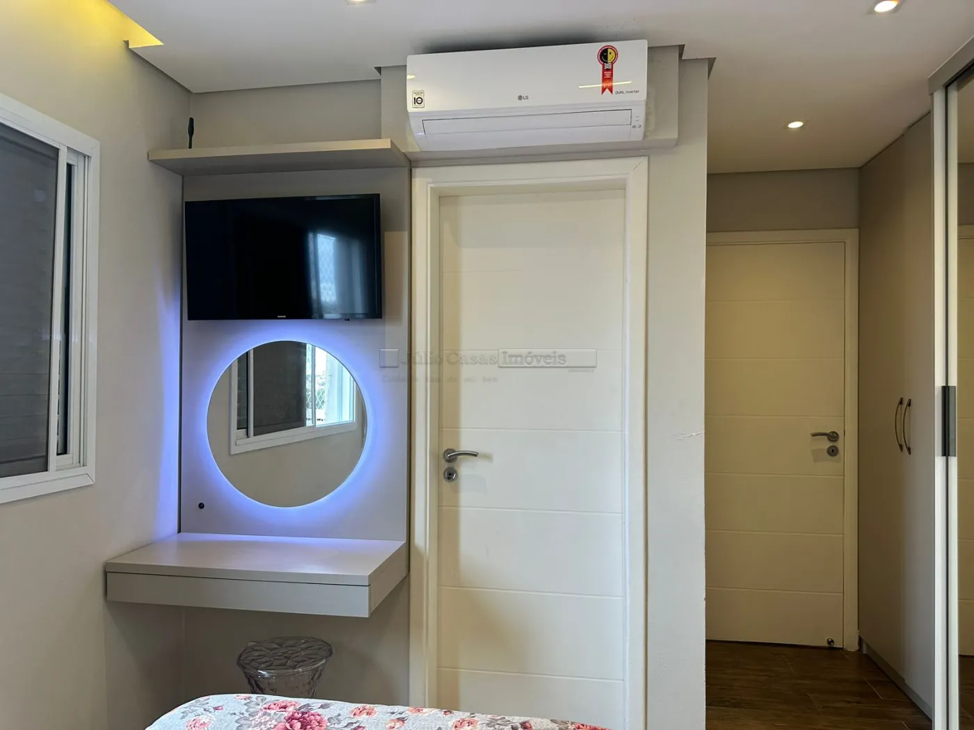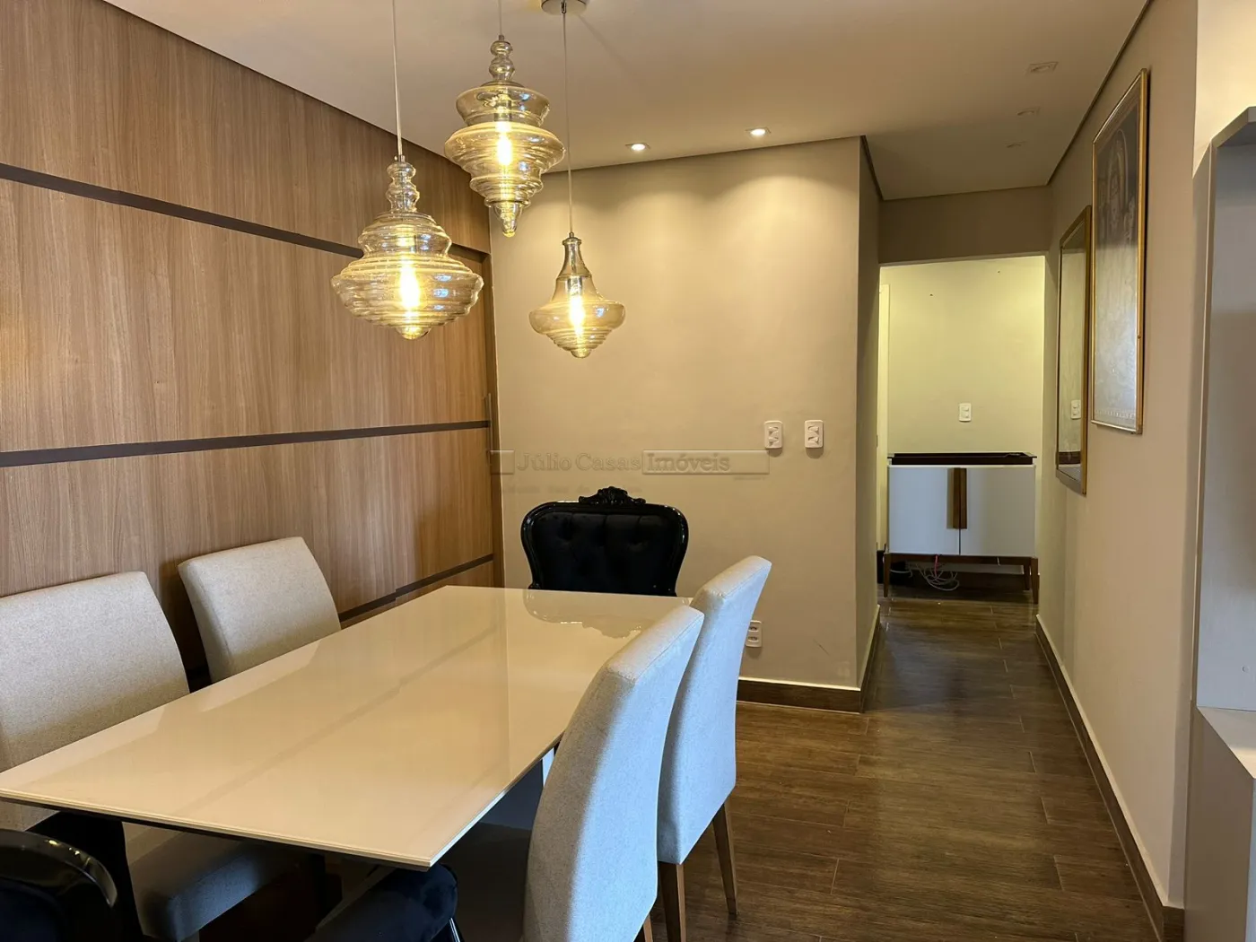 As suítes são espaçosas e possuem armários modulados e ar condicionado, garantindo um bom descanso e privacidade. A sala de estar é ampla e bem iluminada, com acesso à varanda. A sala de jantar é integrada à cozinha, que é planejada. A área de serviço é separada da cozinha e possui tanque.