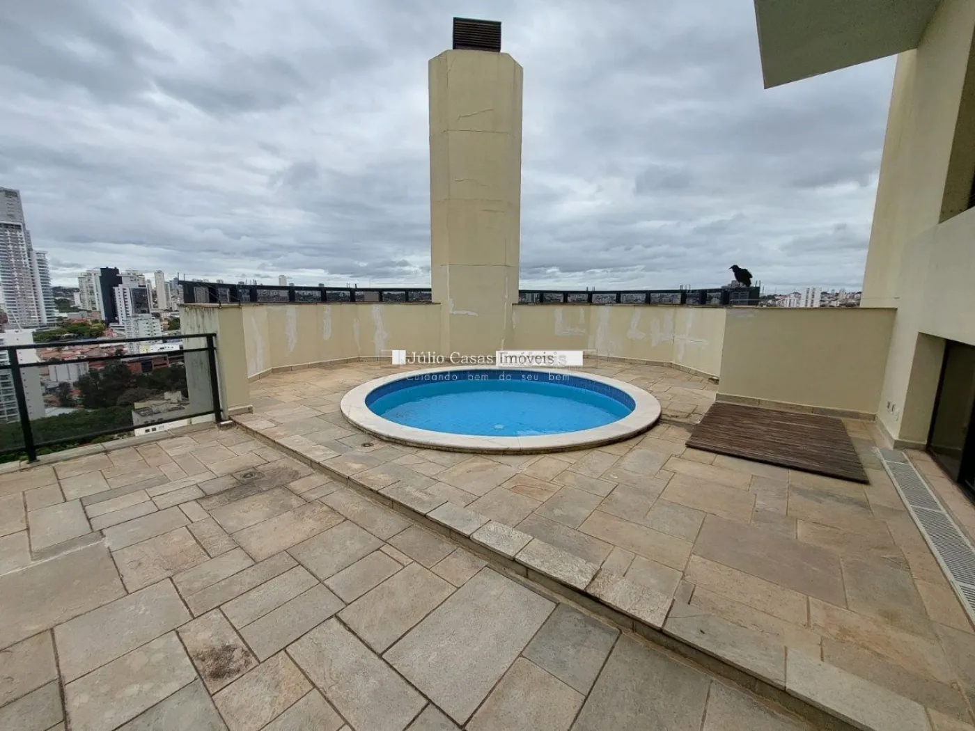 Excelente triplex com uma vista 360o da cidade, duas entradas (serviço e social), a cobertura tem 3 vagas cobertas com vagas em paralelo e um deposito para cada. Ampla sala de estar/jantar, lareira, varanda ao redor das salas, lavado grande, cozinha bem espaçosa com bancada em mármore, duas pias, dispensa, lavanderia e dependência de empregada completa. Subindo 1 lance de escada você se depara com a área da piscina com espaço para instalação de uma área gourmet. Acessando mais um lance de escada você se depara com uma sala íntima com lareira, de um lado uma suite master com closet, banheiro com hidro e chuveiro separados e uma área que pode ser usada como sala íntima do casal ou escritório e uma pequena varanda. Apartamento muito bem iluminado naturalmente e com excelente circulação de ar.