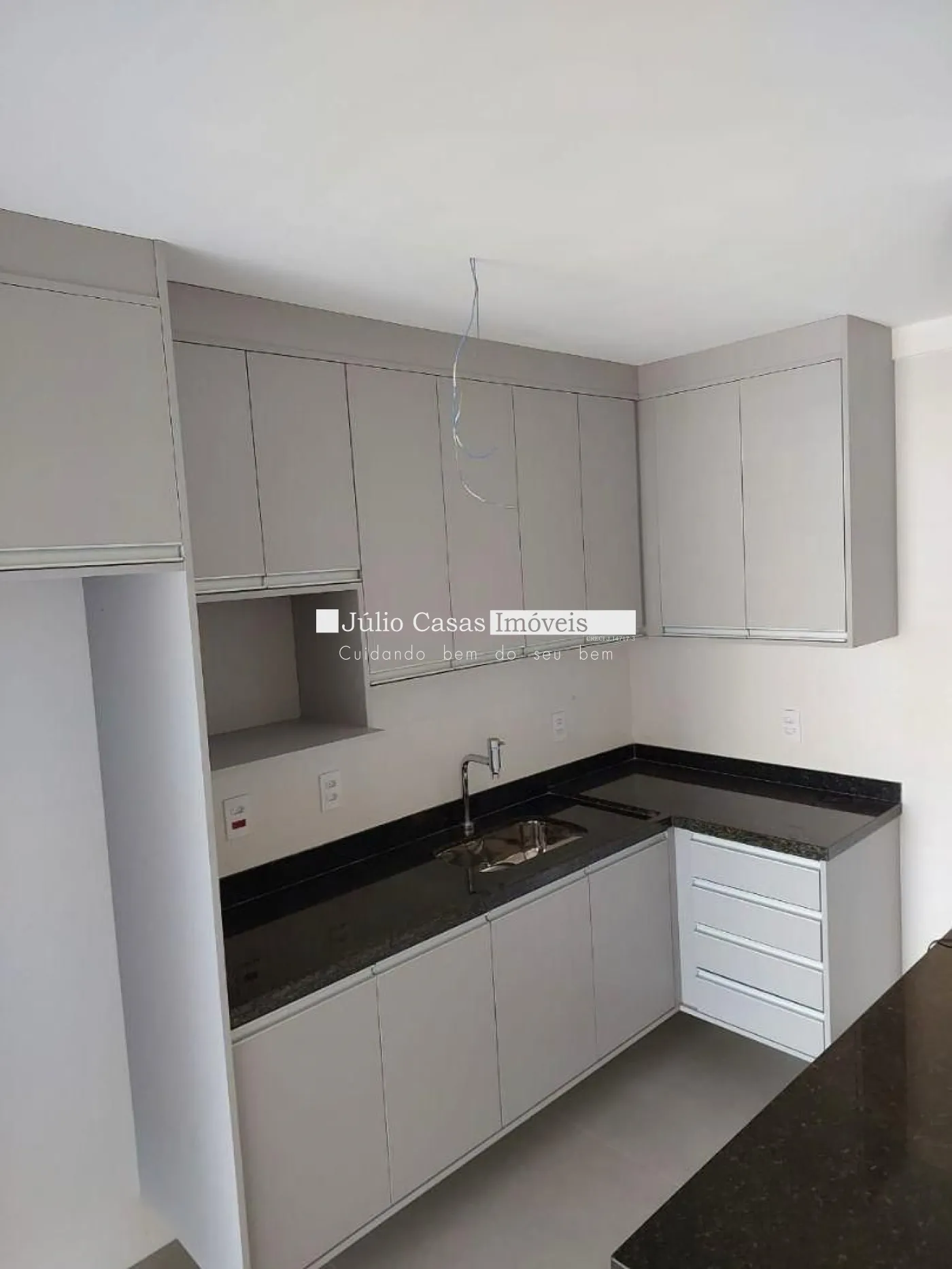 Novíssimo apartamento com uma sala 2 ambientes com varanda integrada e cozinha americana, toda em piso porcelanato e com instalação para Split, 2 dormitórios sendo 1 suíte, dormitórios com instalação para Split, banheiro social e lavanderia. 2 vagas de garagem coberta e demarcadas