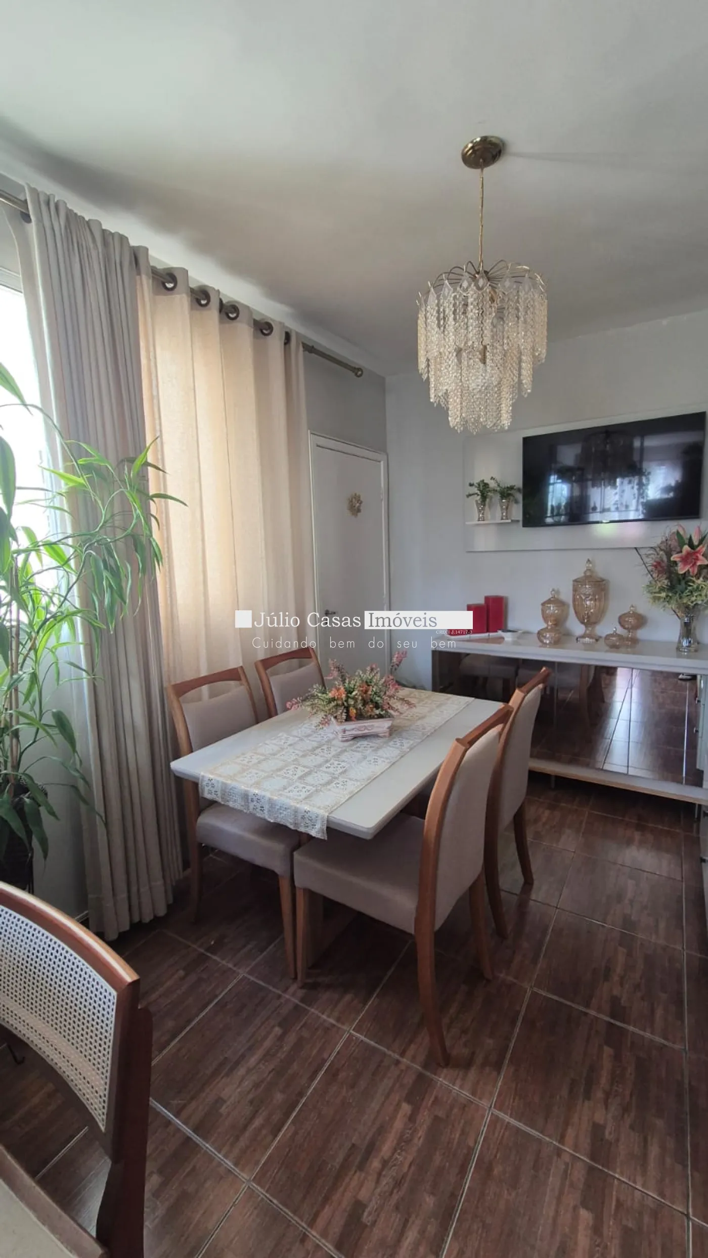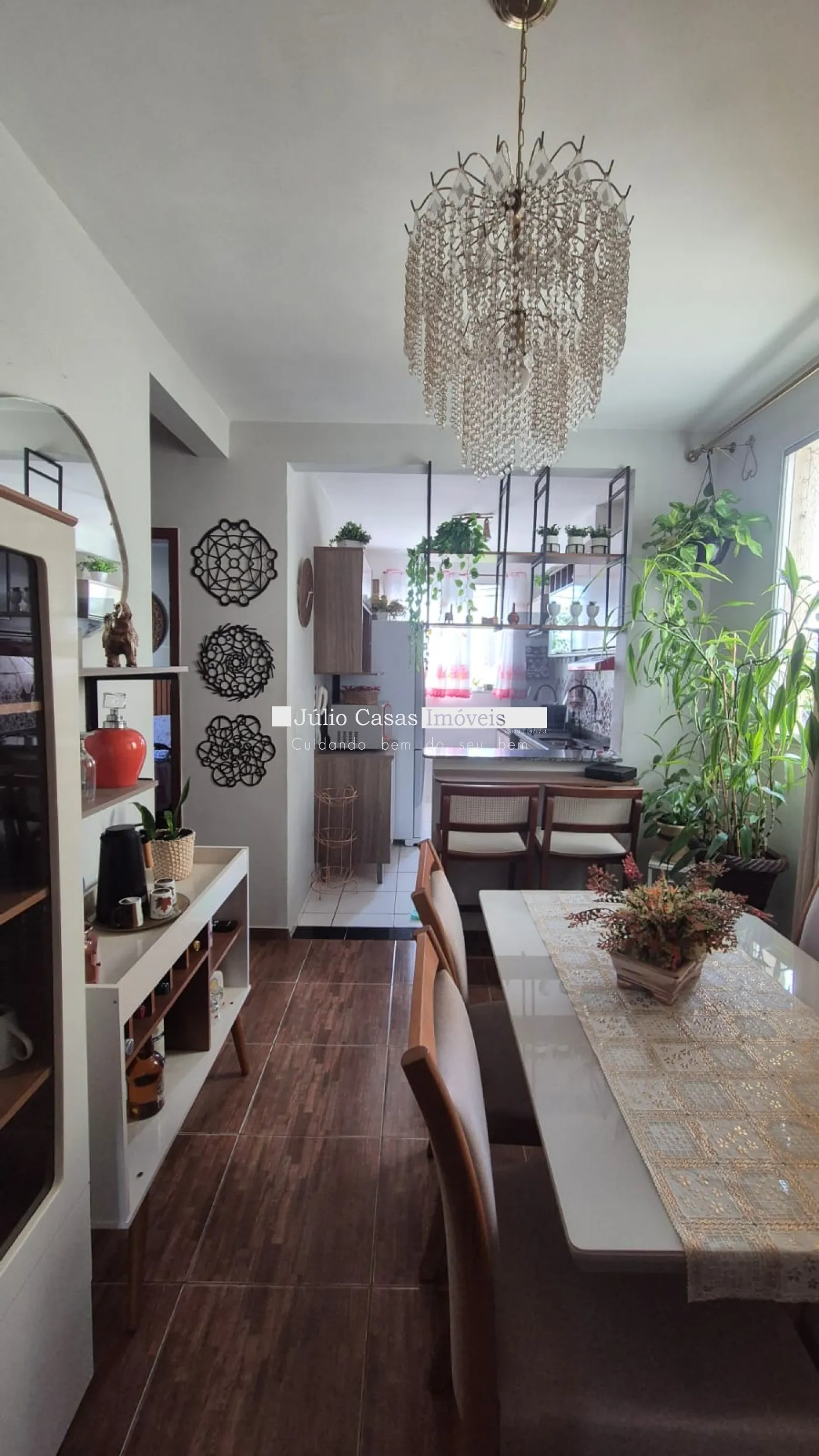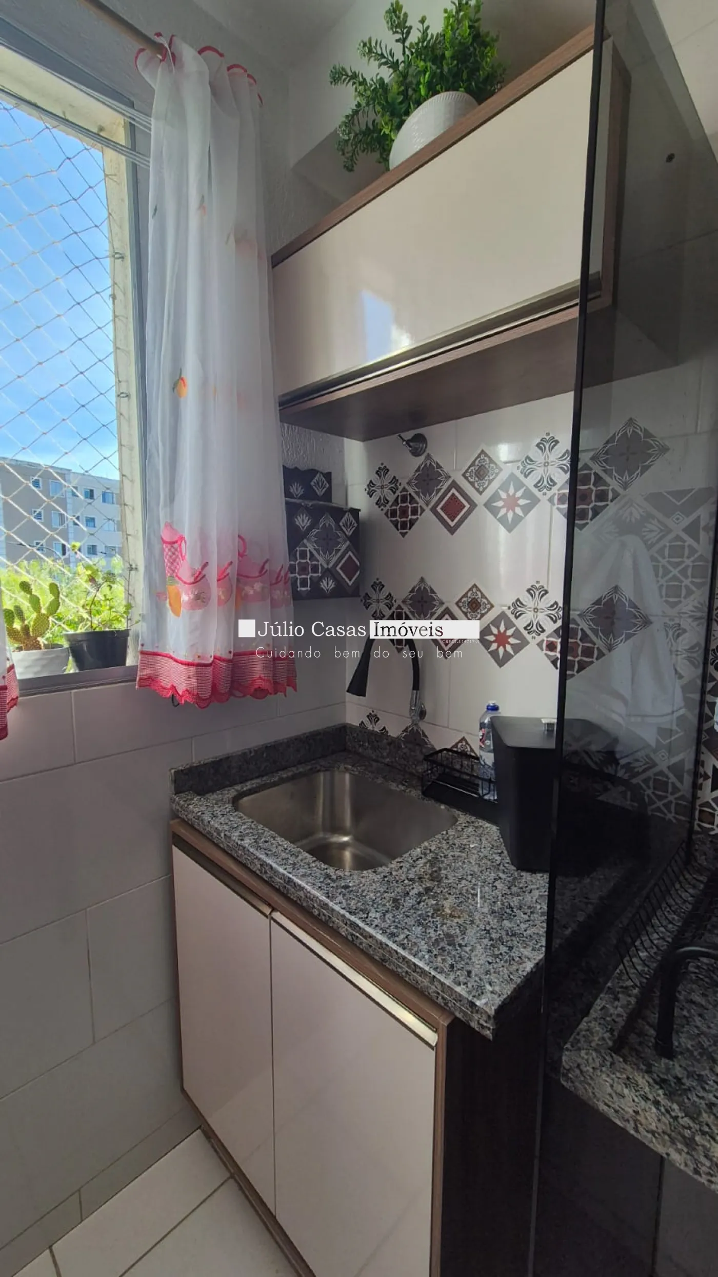 Apartamento a venda com sala de esta, cozinha com armários e lavanderia.