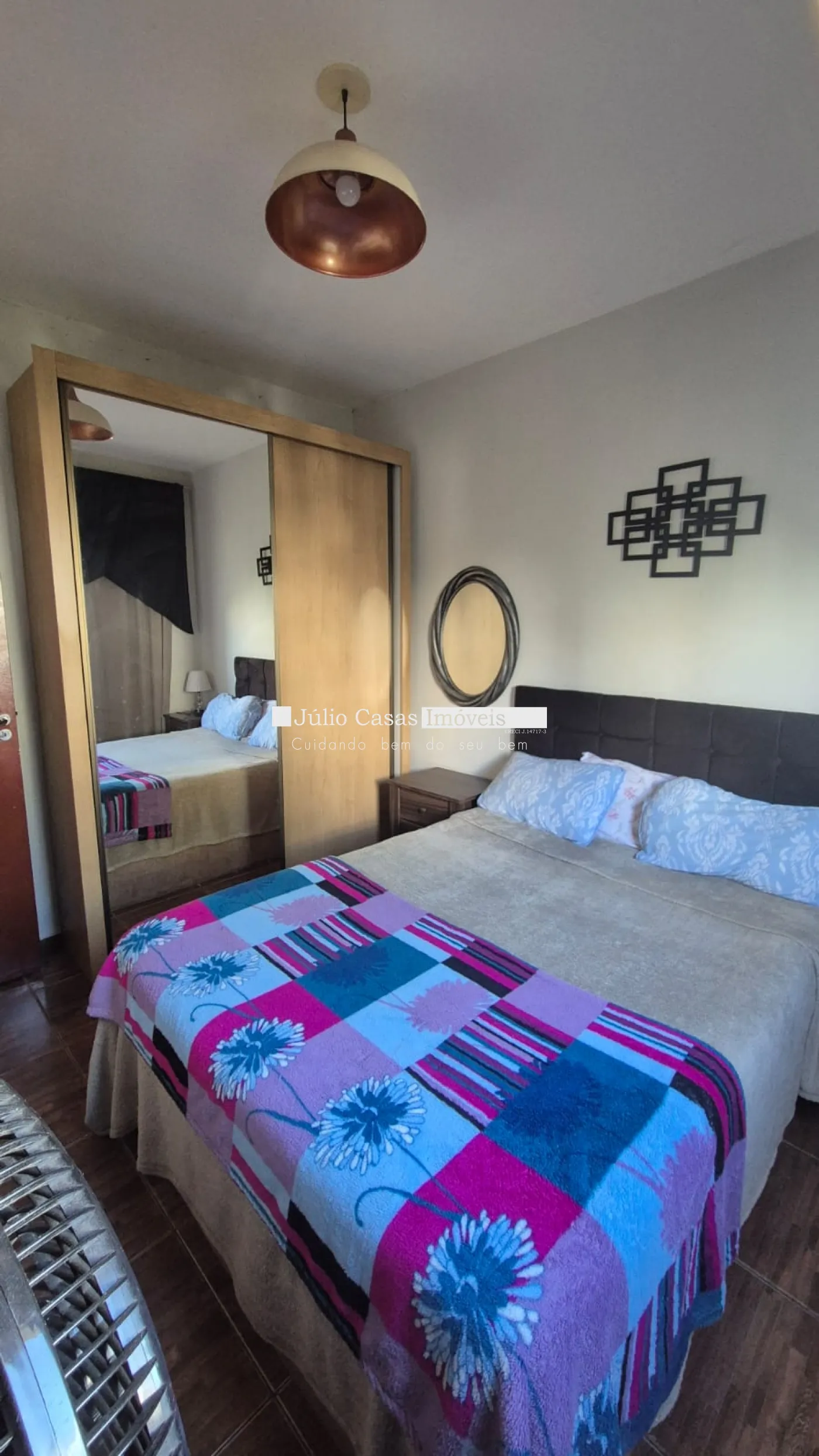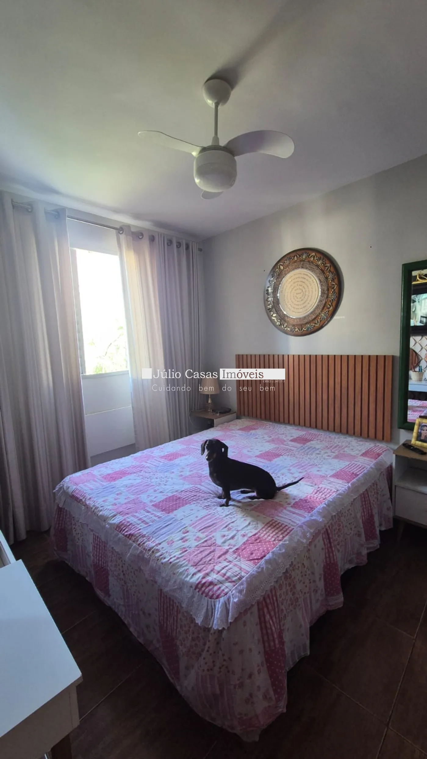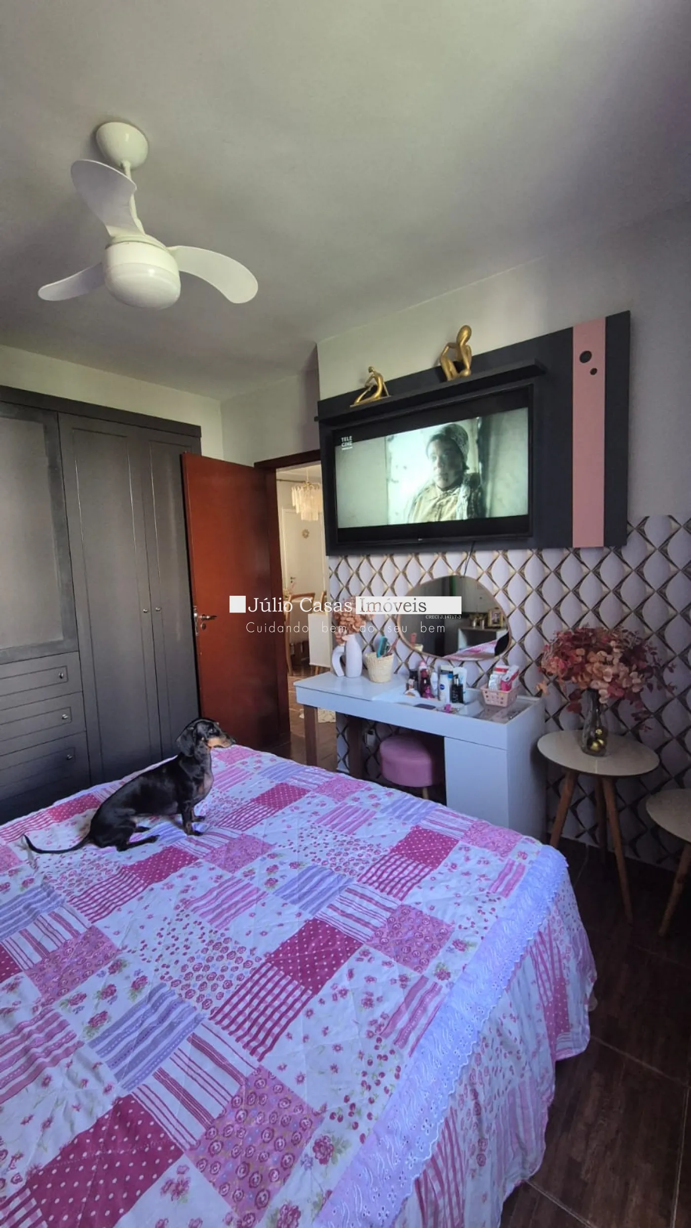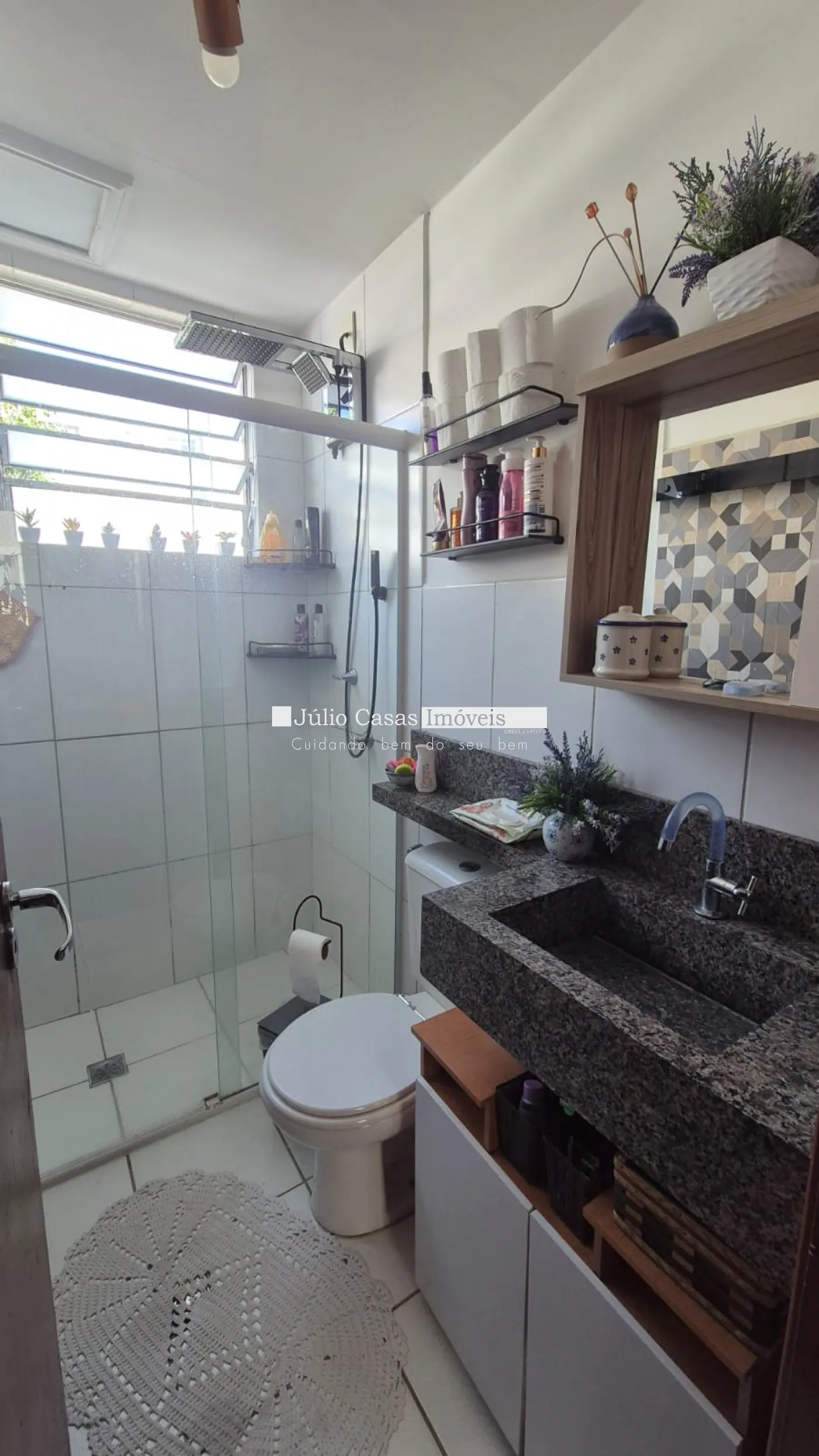 2 quartos e wc social, apartamento todo em piso cerâmico, e banheiro com box em vidro e gabinete.