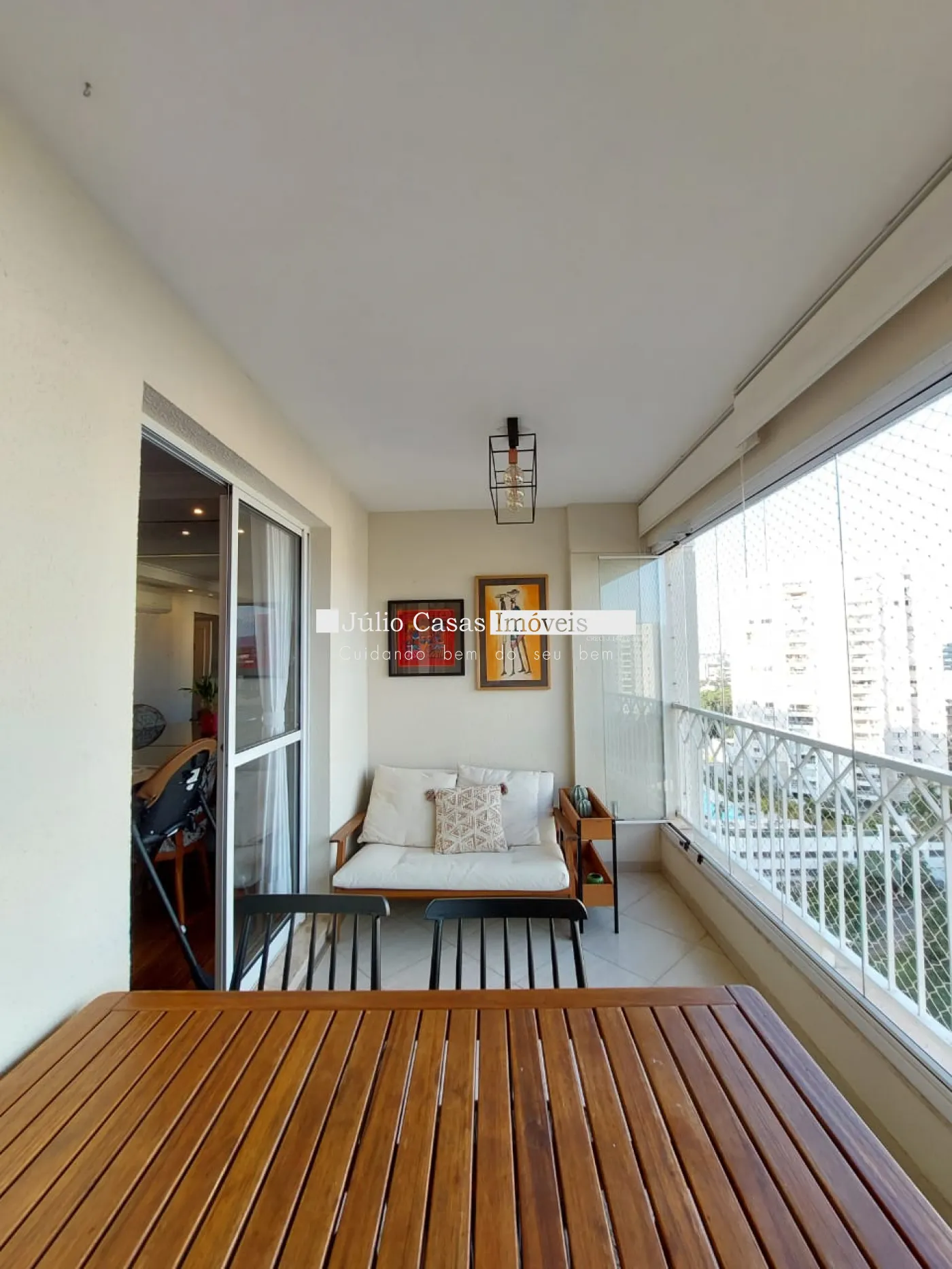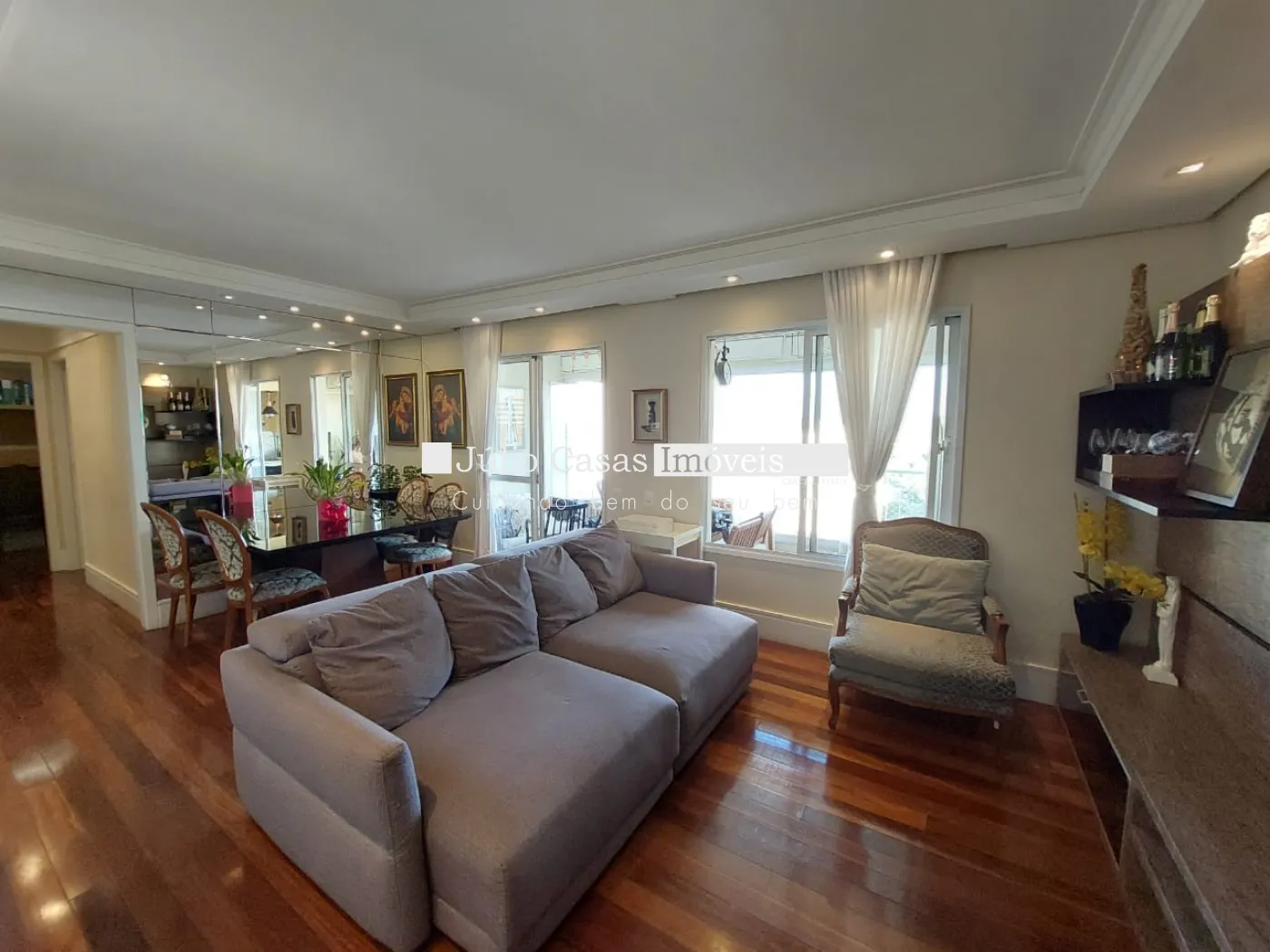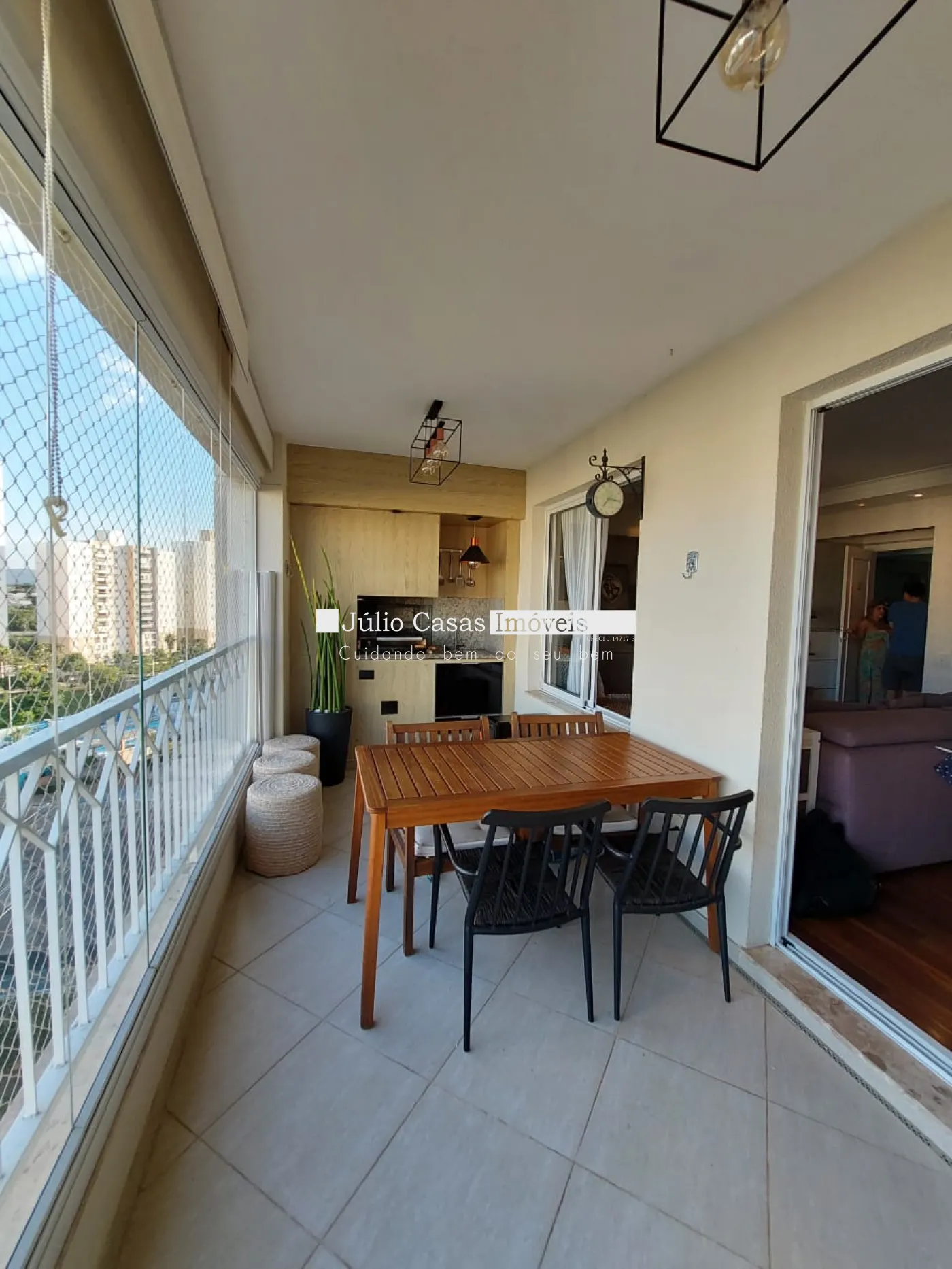 Este apartamento conta com uma espaçosa sala de estar com dois ambientes, acabamento em gesso e piso de madeira de alta qualidade, além de painel e rack modulados. O lavabo possui papel de parede elegante e pia em mármore travertino. A varanda gourmet é equipada com móveis modulados e churrasqueira, e conta com fechamento em vidro, proporcionando um ambiente perfeito para receber amigos e família.