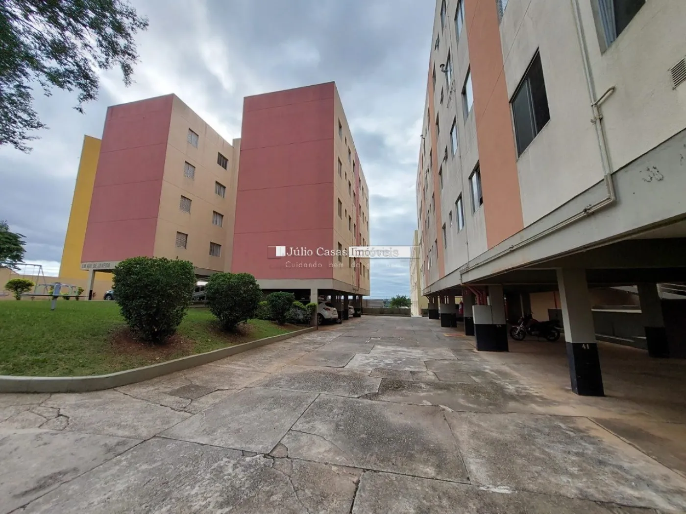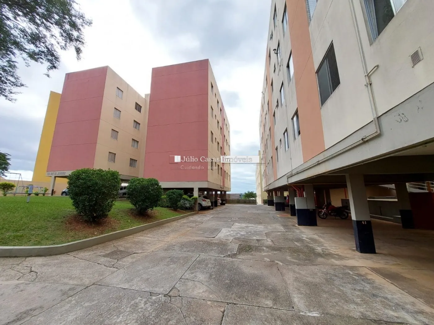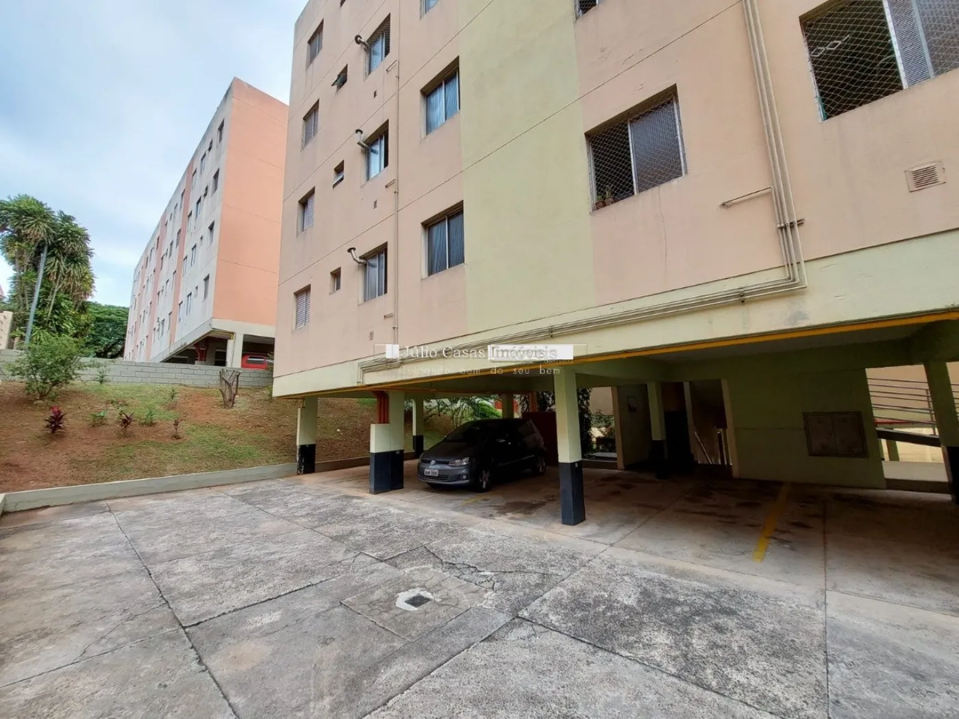 São dois dormitórios, sendo que um deles possui armário embutido, garantindo mais espaço e funcionalidade. O banheiro social é bem distribuído, e o apartamento é totalmente revestido em piso cerâmico, facilitando a limpeza e manutenção. A unidade inclui uma vaga de garagem, oferecendo conveniência e segurança para o morador.