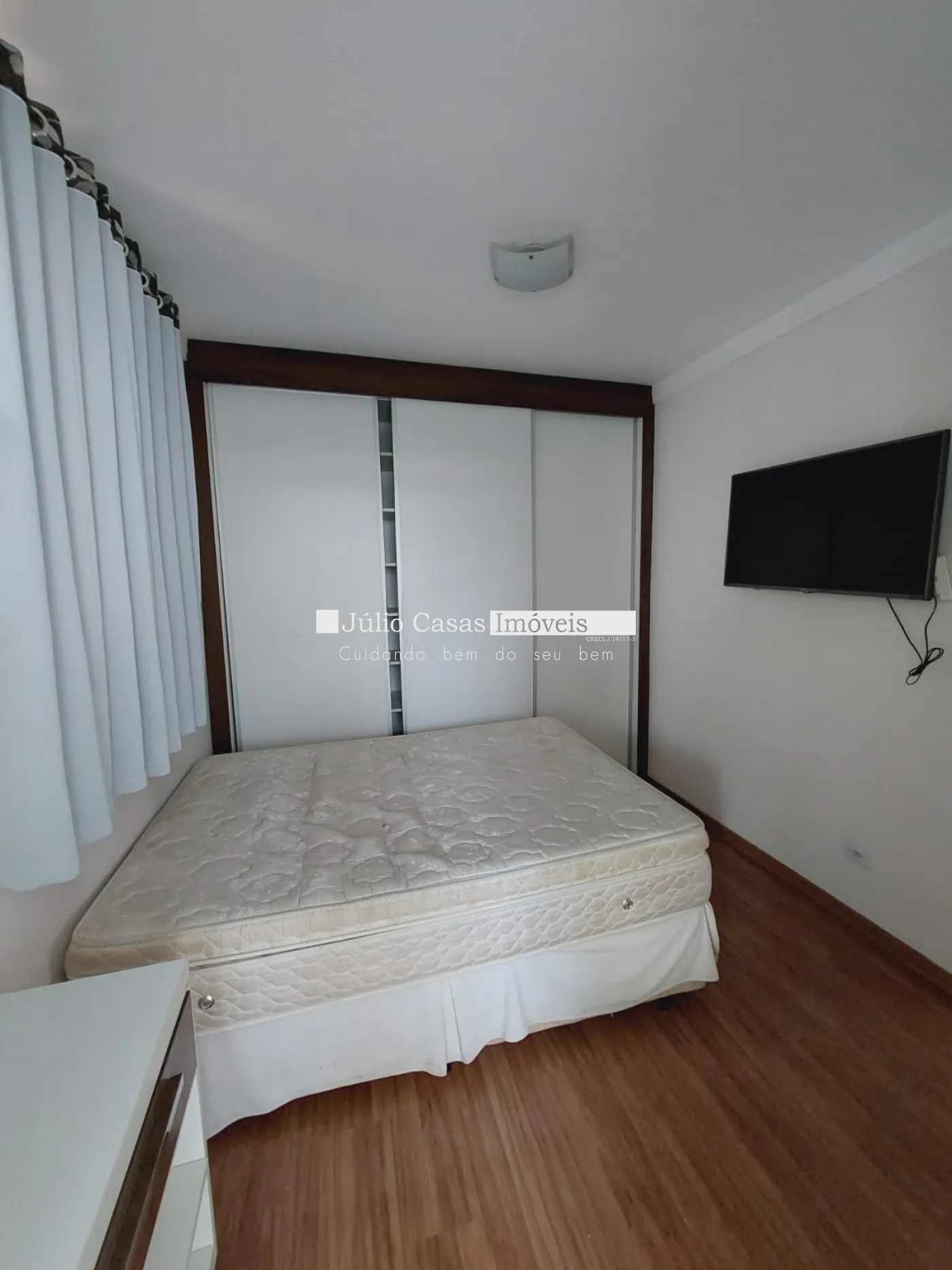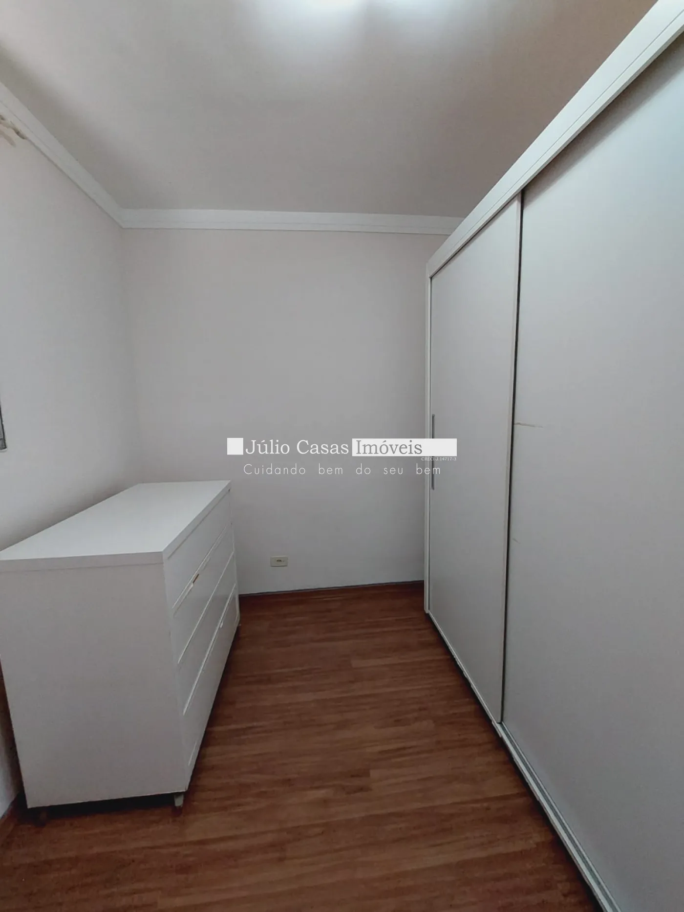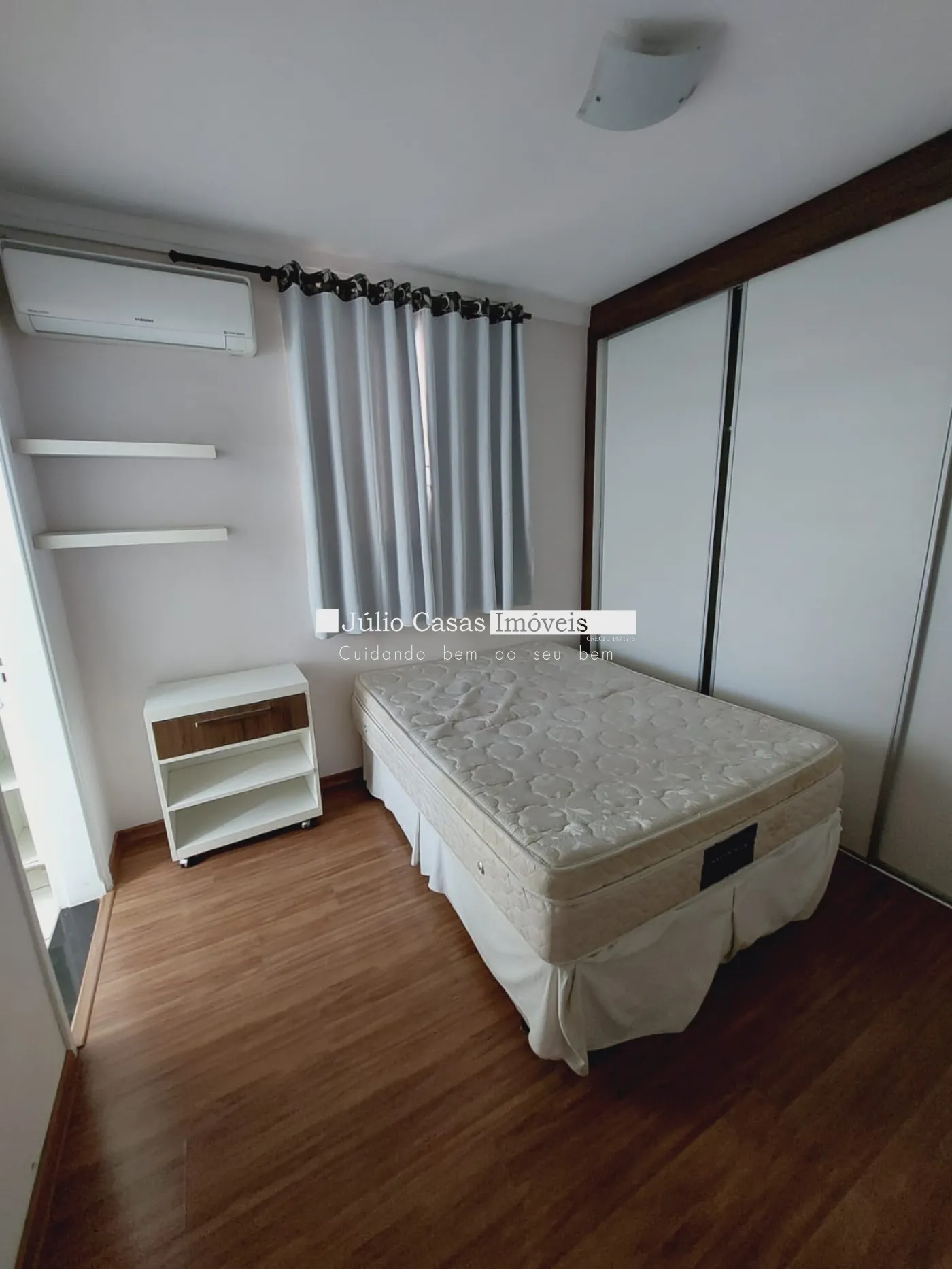 Sala e dormitórios em laminados e áreas frias em porcelanatos.