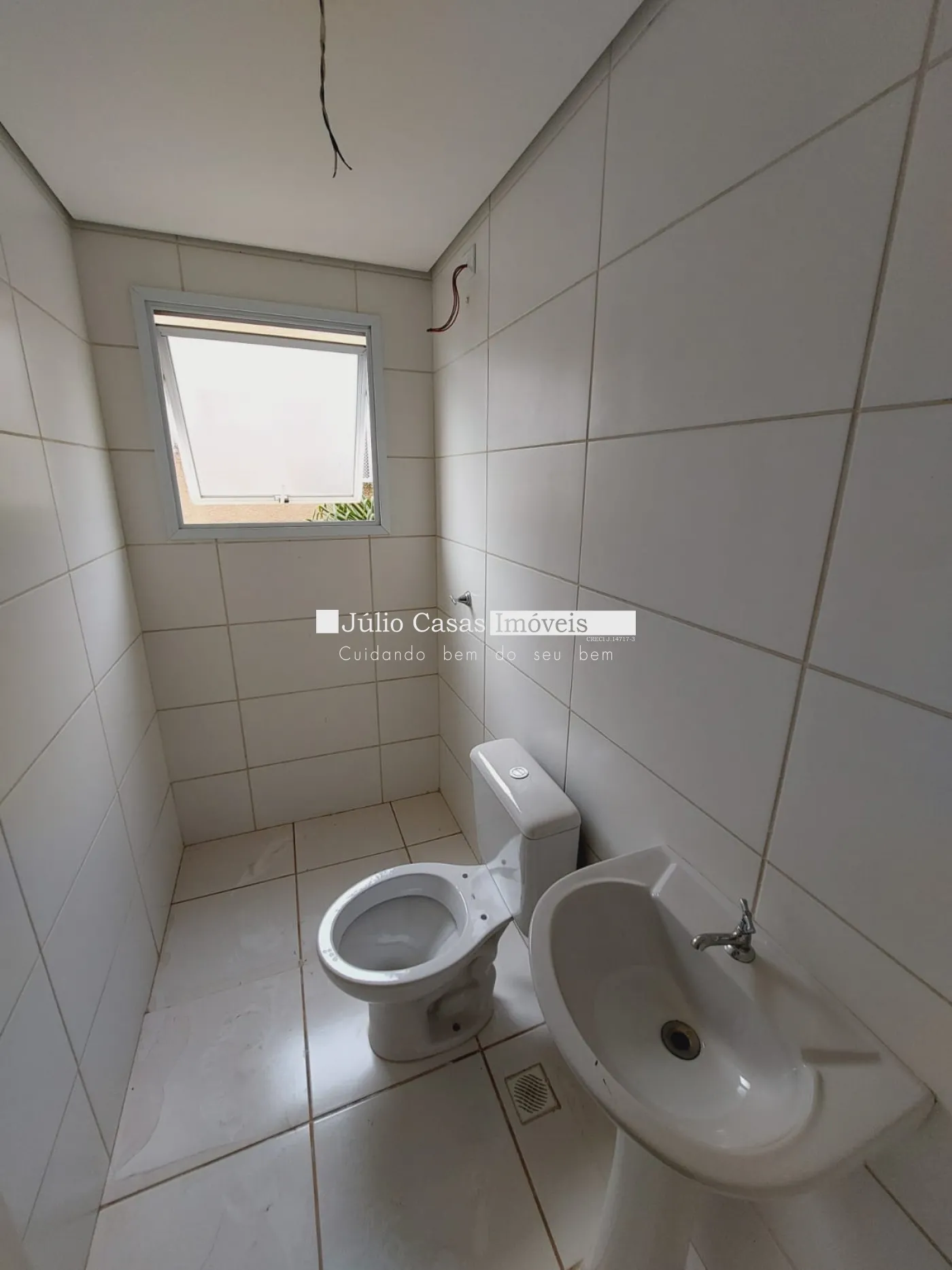 Sala de estar, cozinha com pia em granito e área de serviço, 2 quartos no contrapiso conforme entregue pela construtora, e wc social todo em piso e revestimento cerâmico.