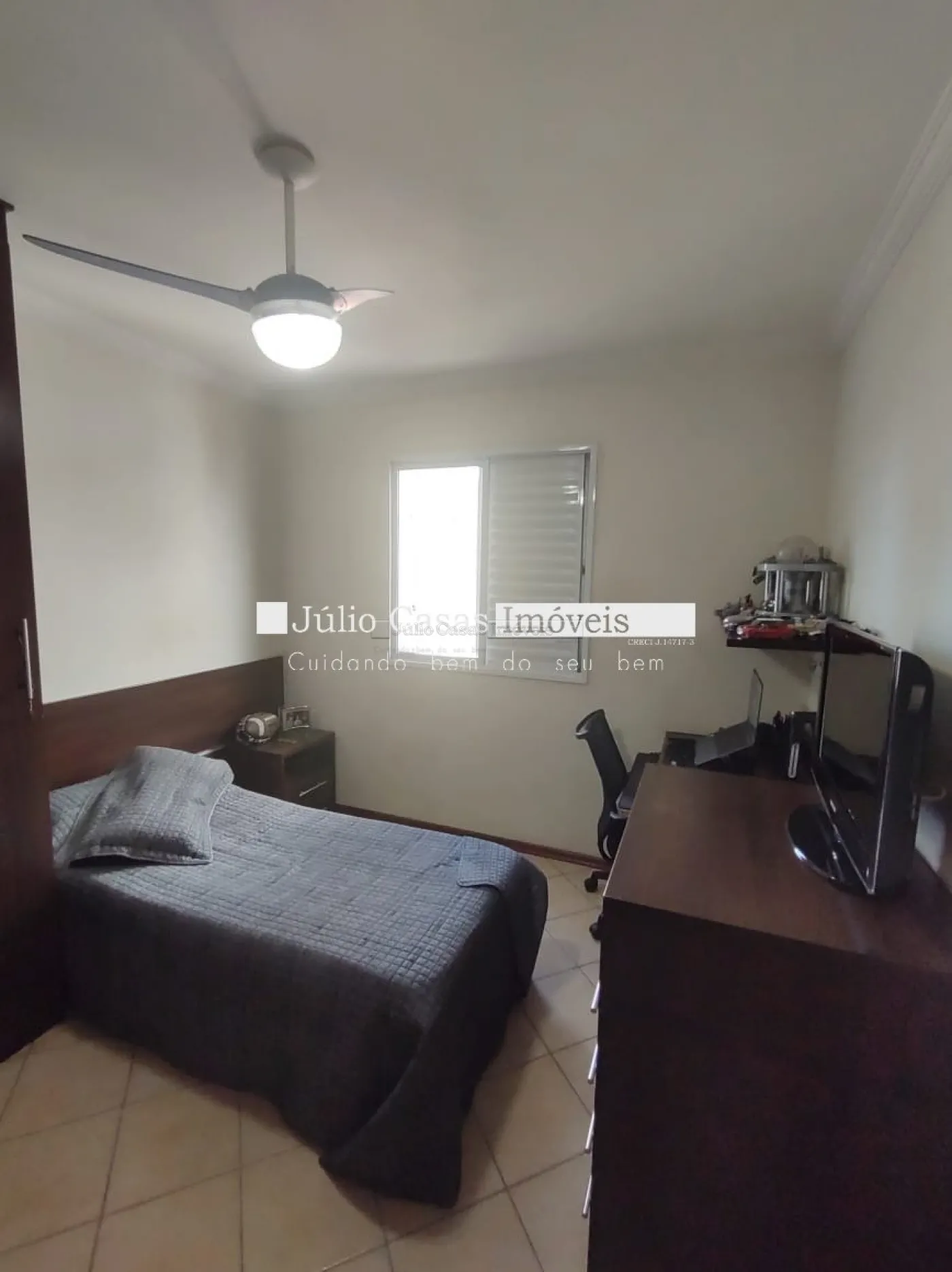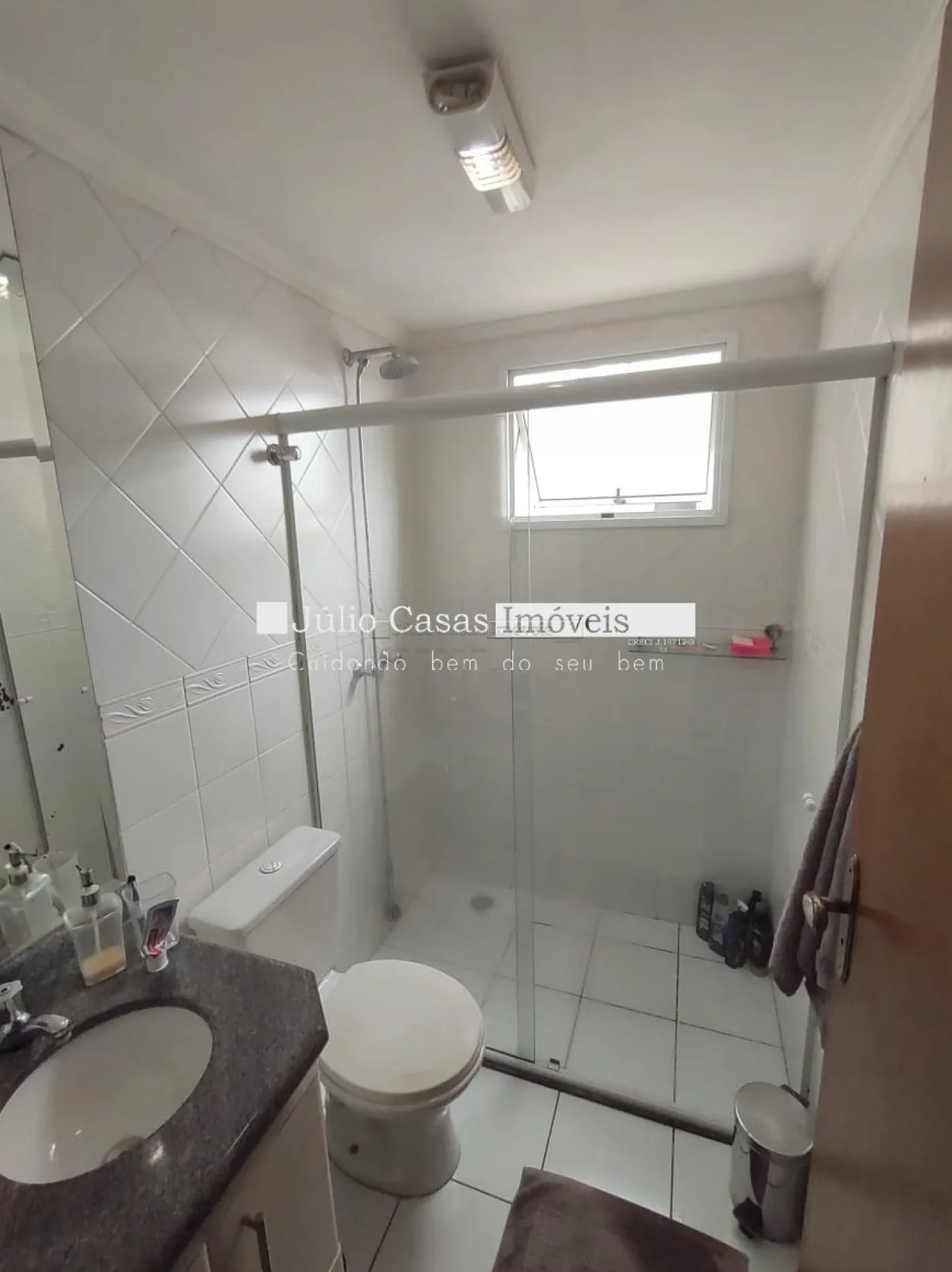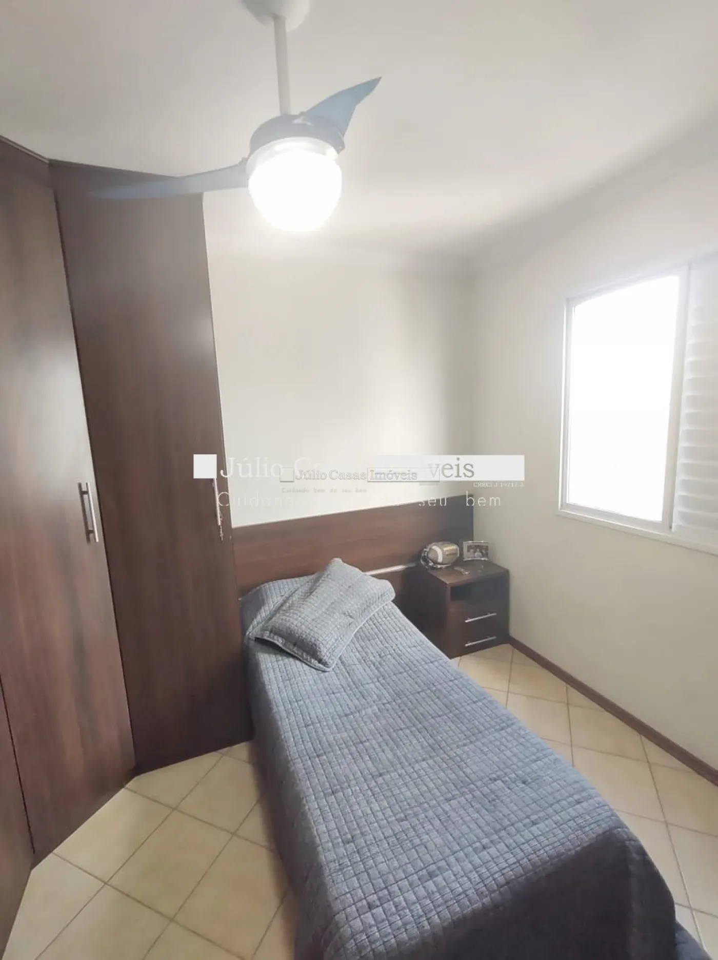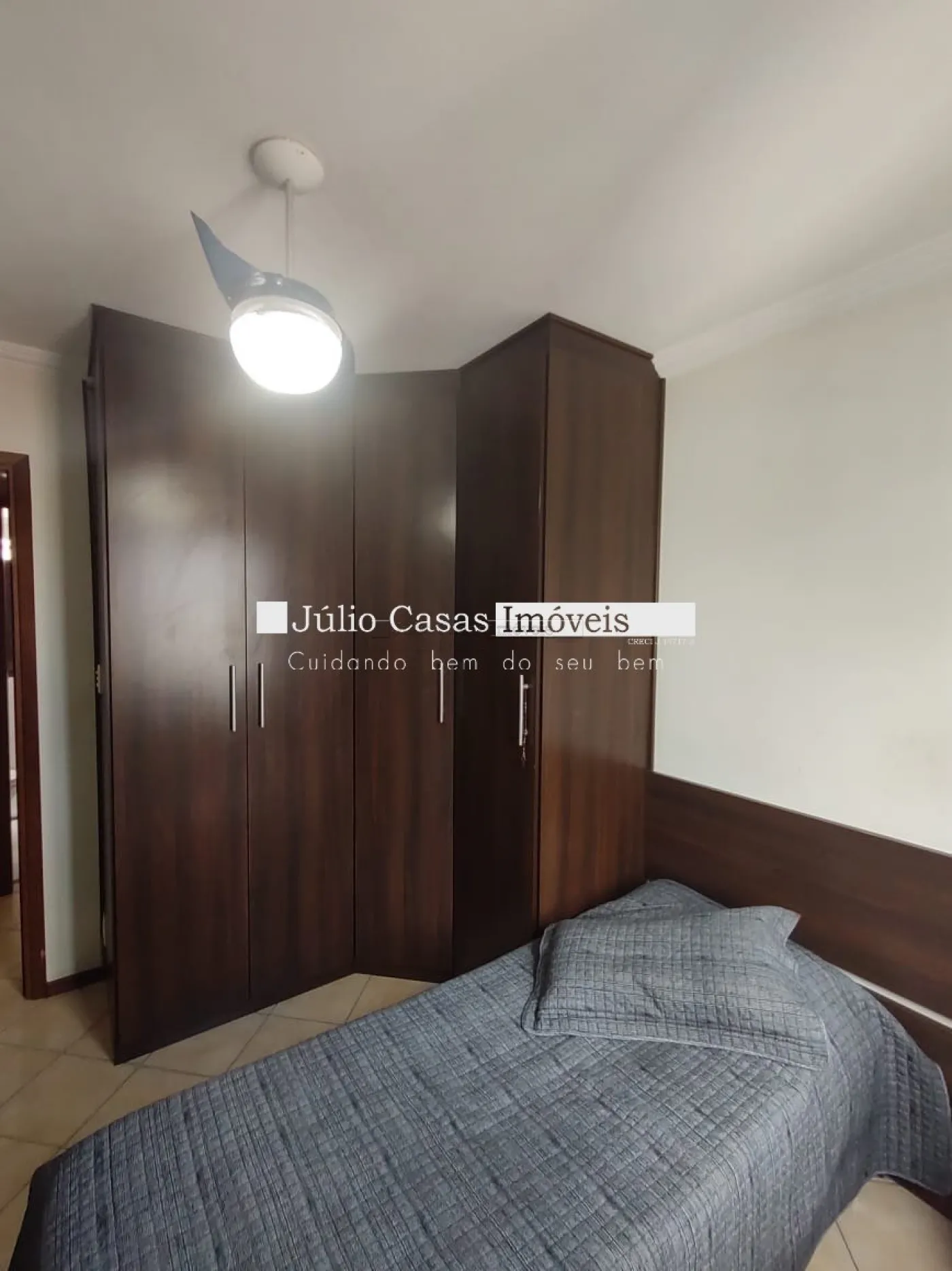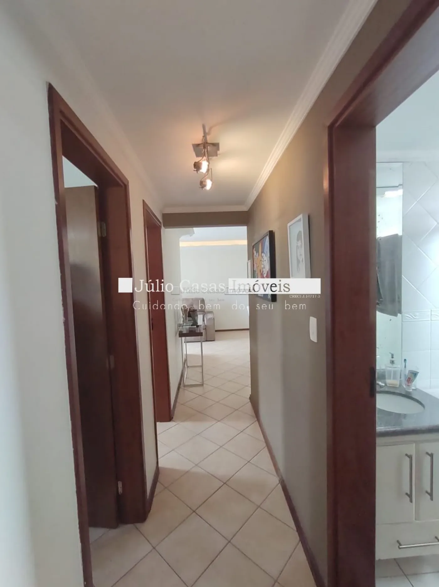 O imóvel conta com três dormitórios, incluindo uma suíte, todos equipados com armários planejados da Todeschini. O banheiro social é moderno, com box de vidro e gabinetes sob medida. A cozinha é modulada e a área de serviço é separada por uma porta, garantindo praticidade e organização. Todo o apartamento é revestido com piso cerâmico de alta qualidade.