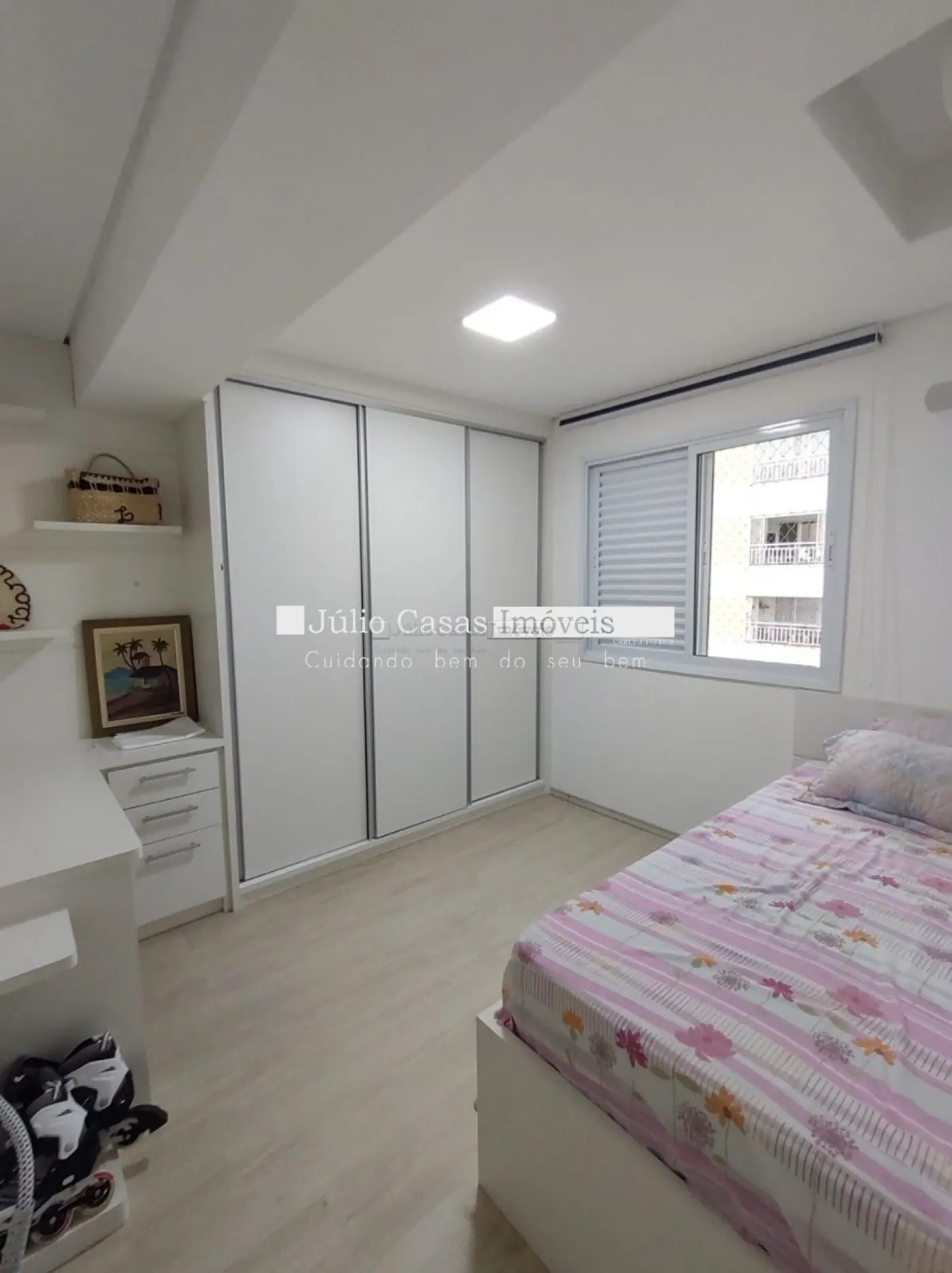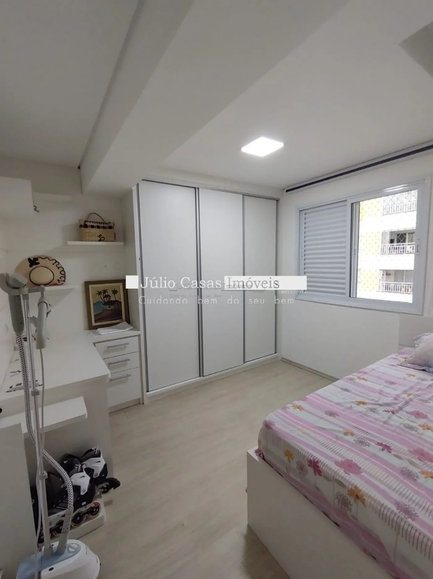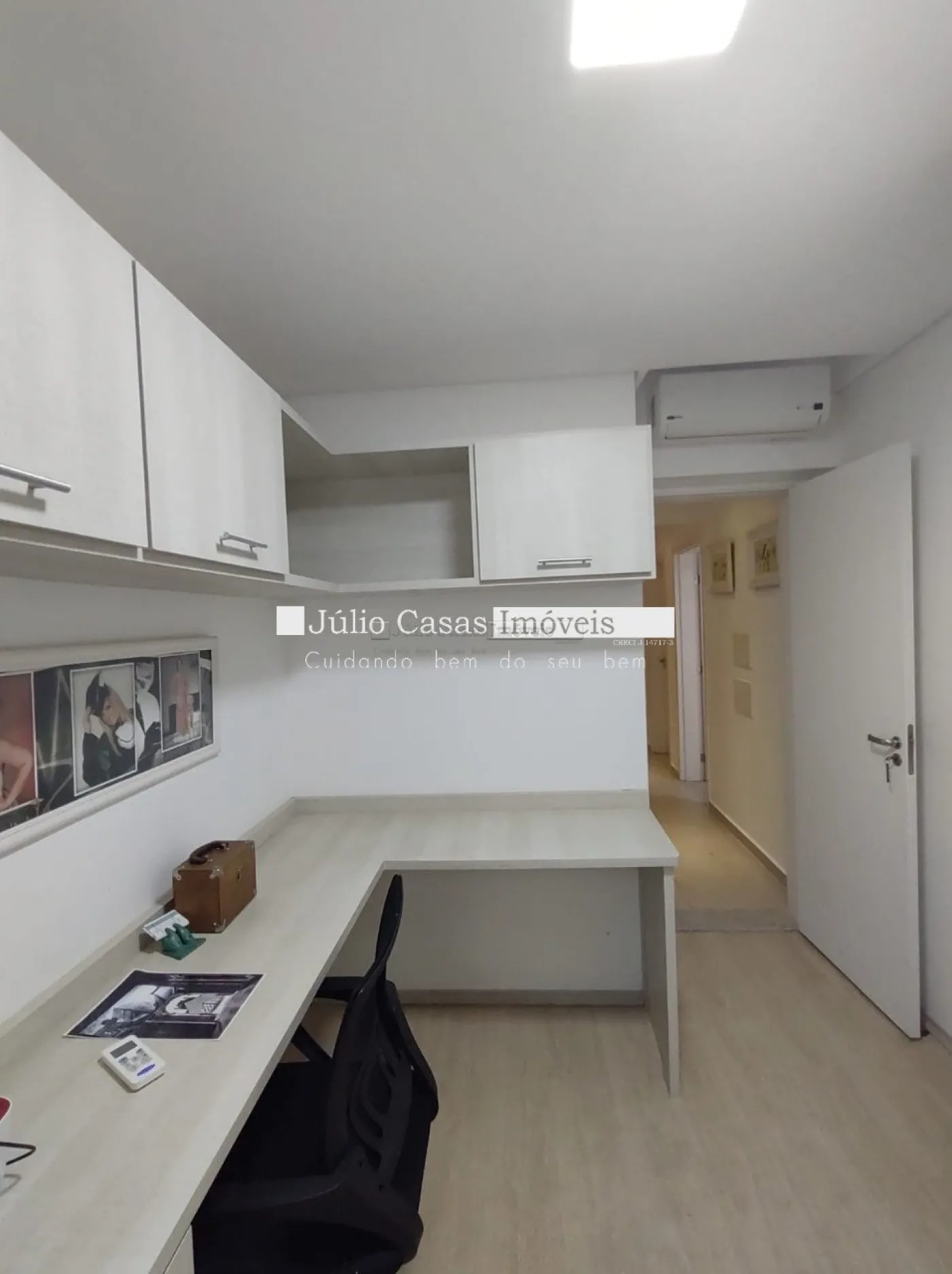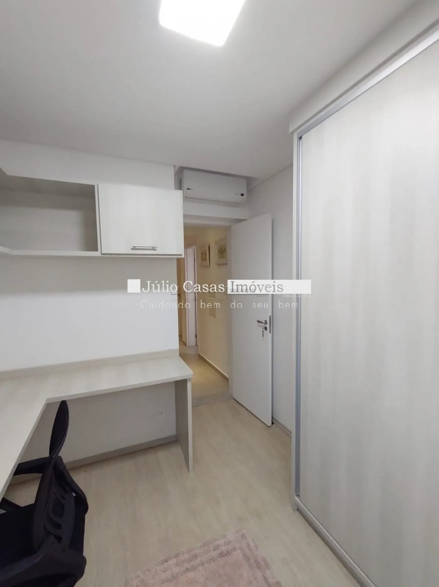 Os três dormitórios, todos modulados, incluem uma suíte com closet, além de um banheiro social.