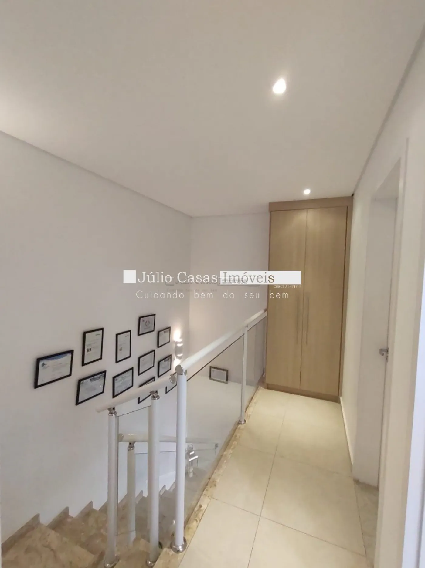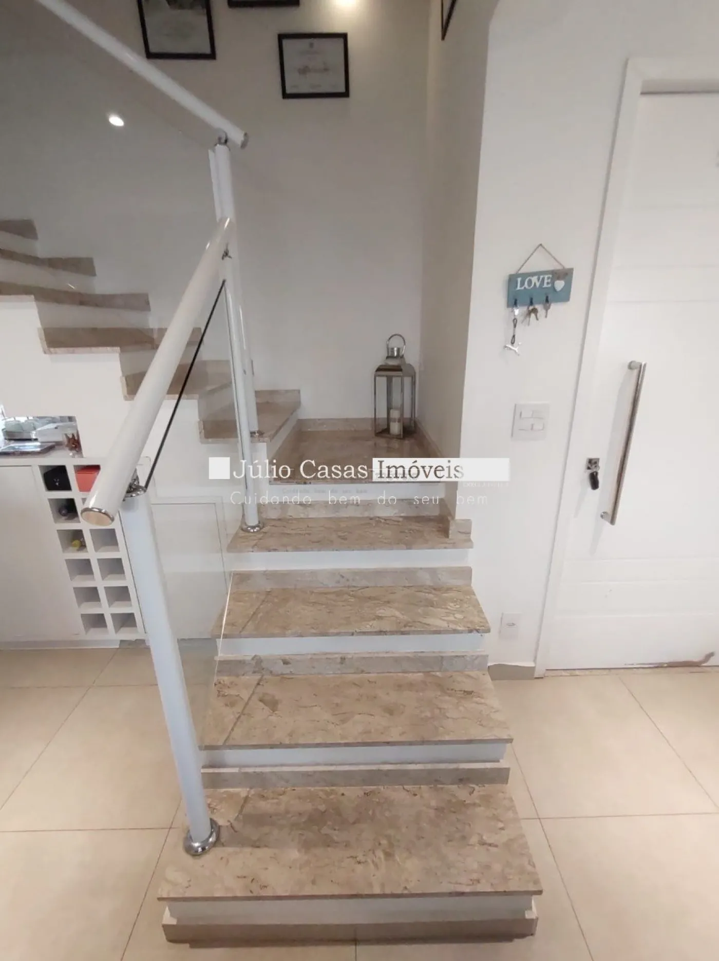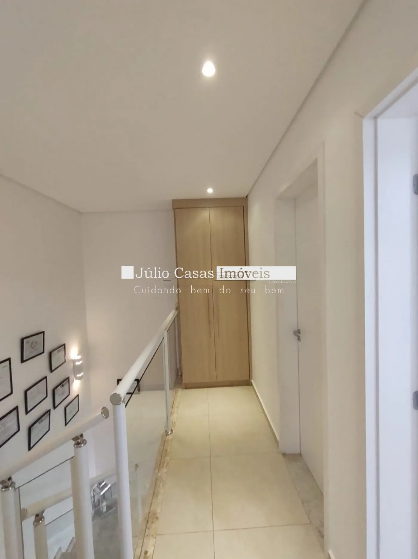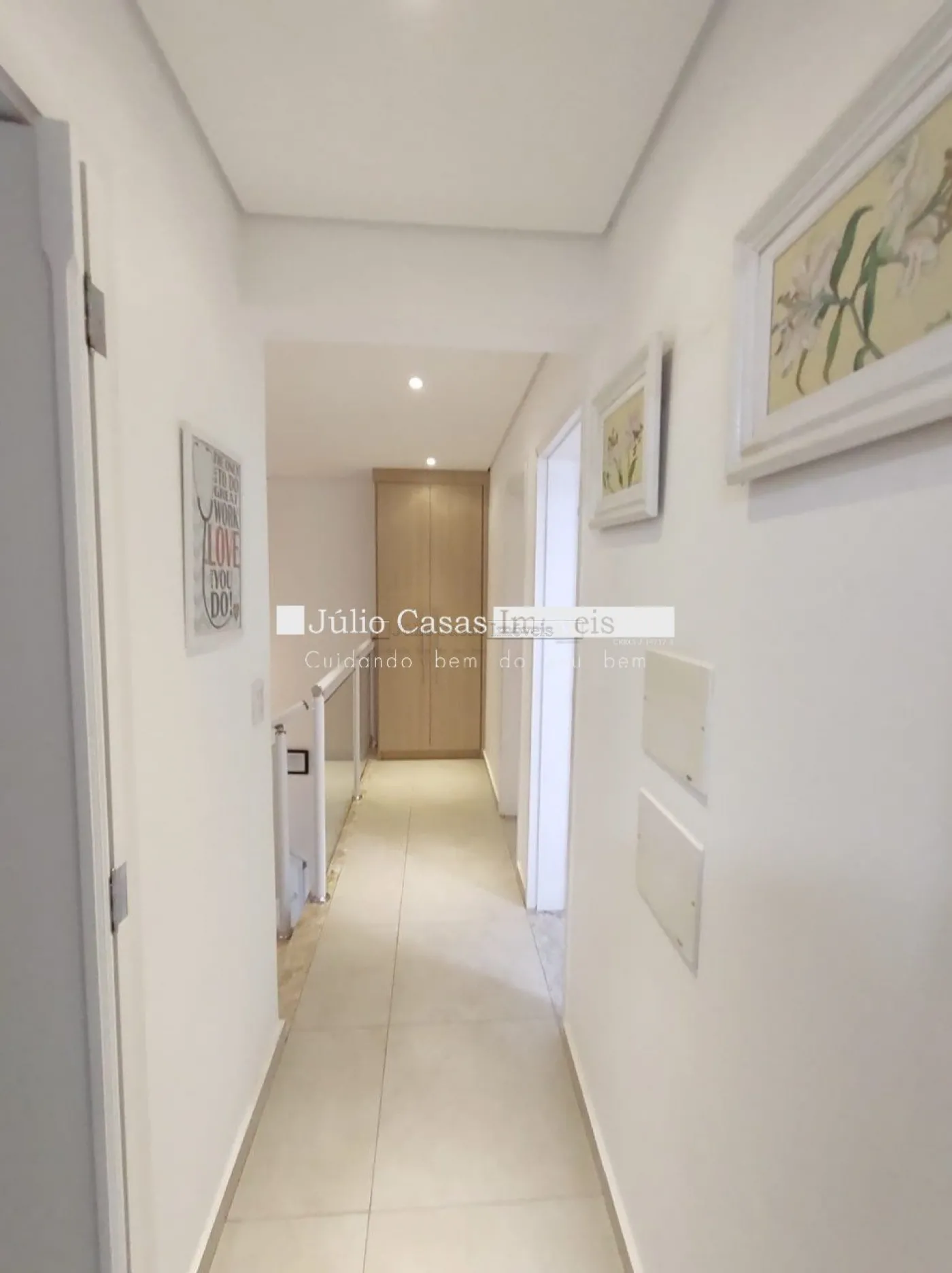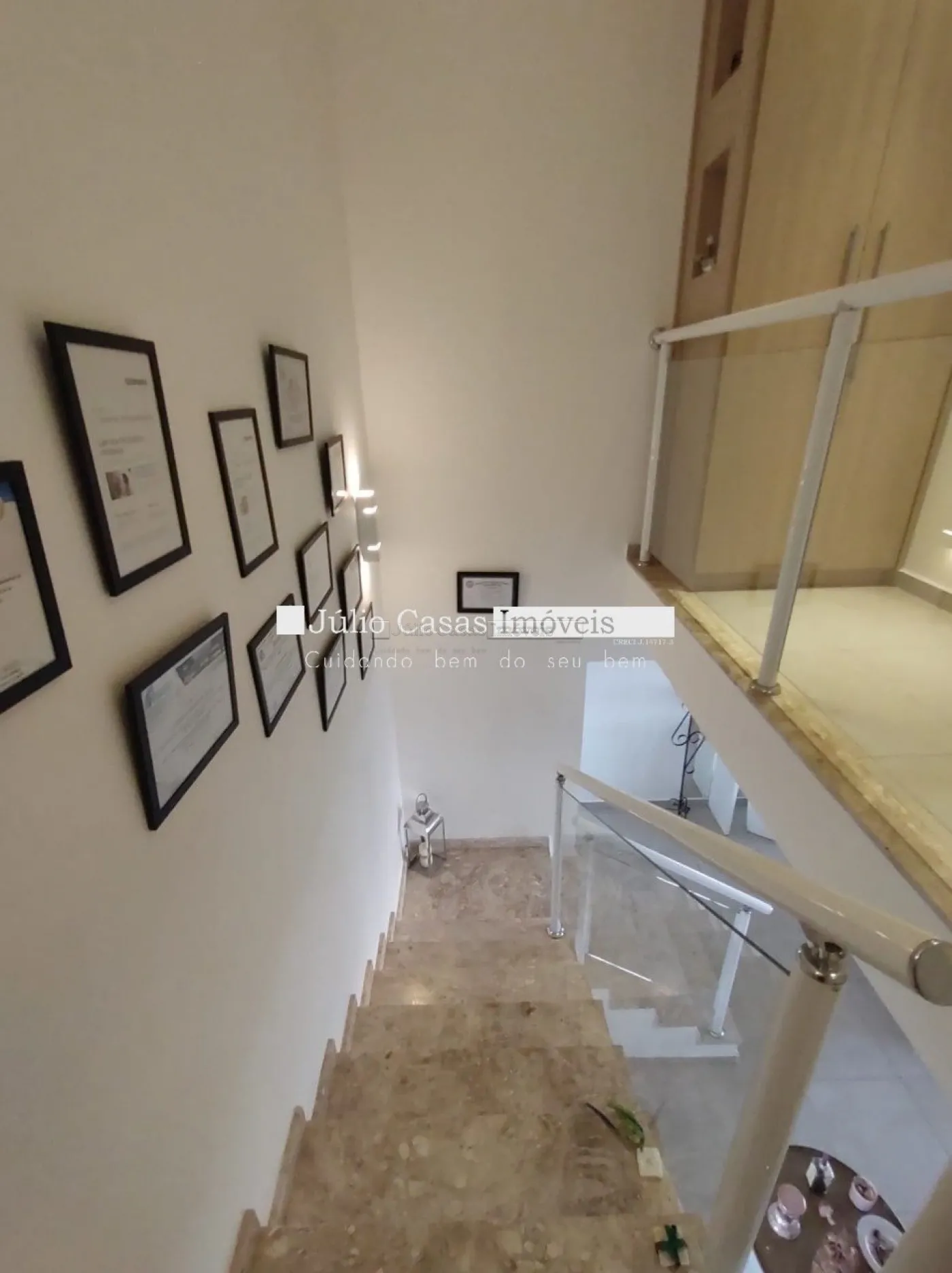 Na área gourmet, você encontrará uma churrasqueira e varanda, ideais para momentos de lazer. A escada, em mármore, complementa o ambiente com um corrimão em alumínio branco. No andar superior, um roupeiro no corredor otimiza o espaço.