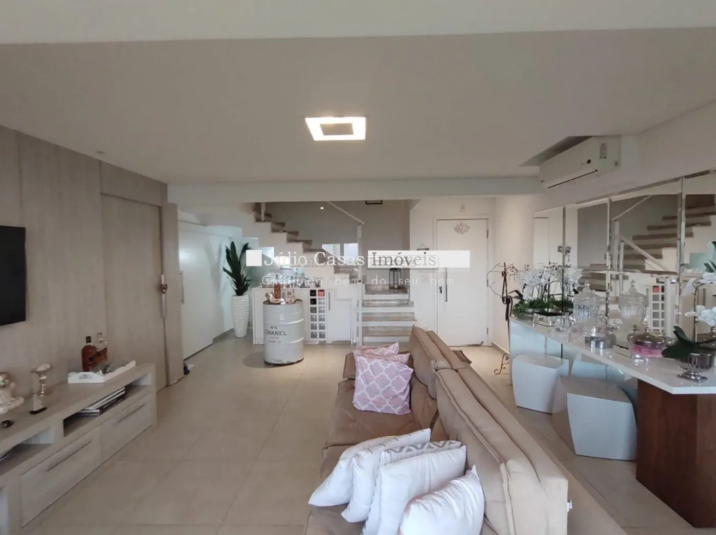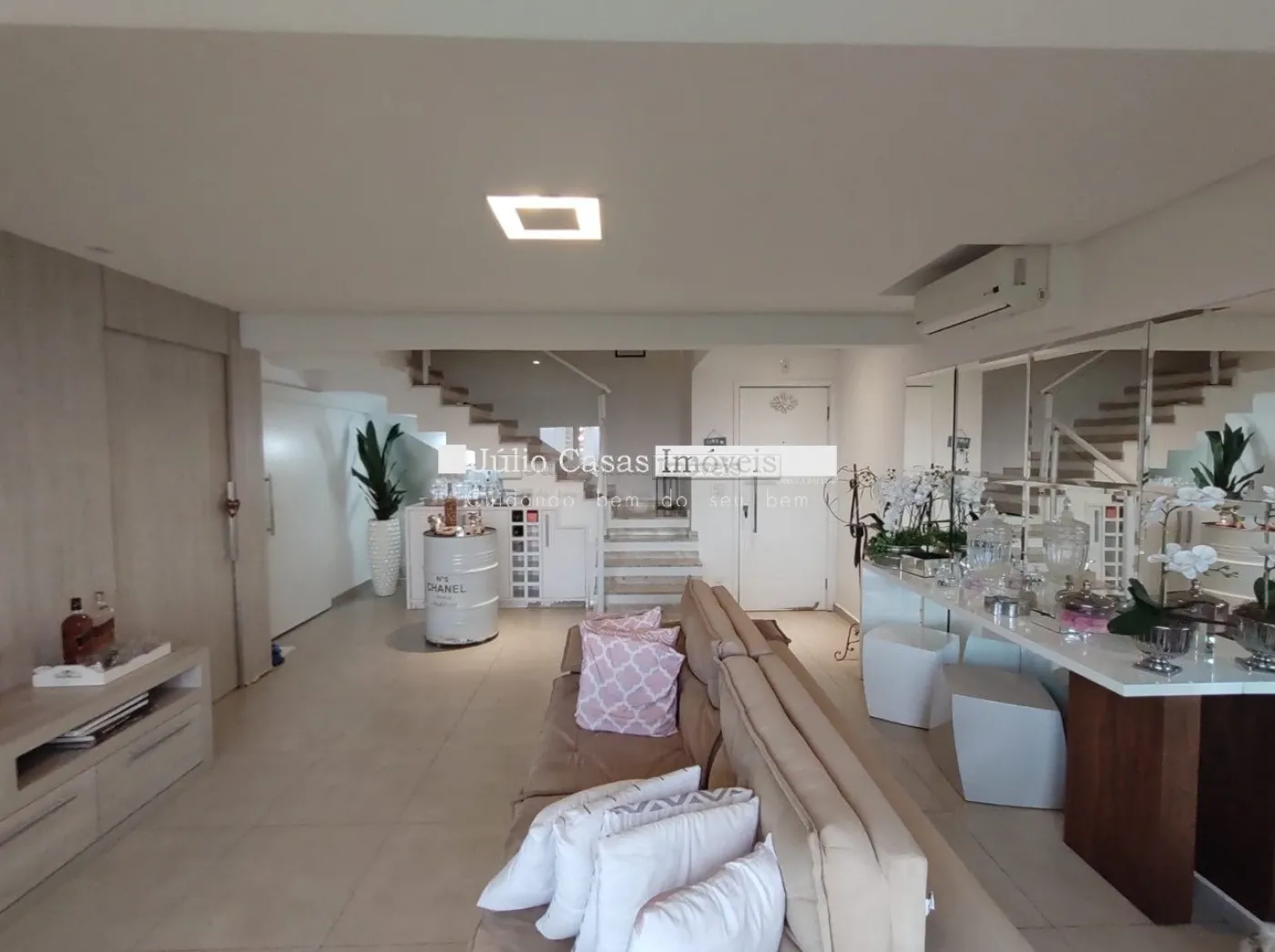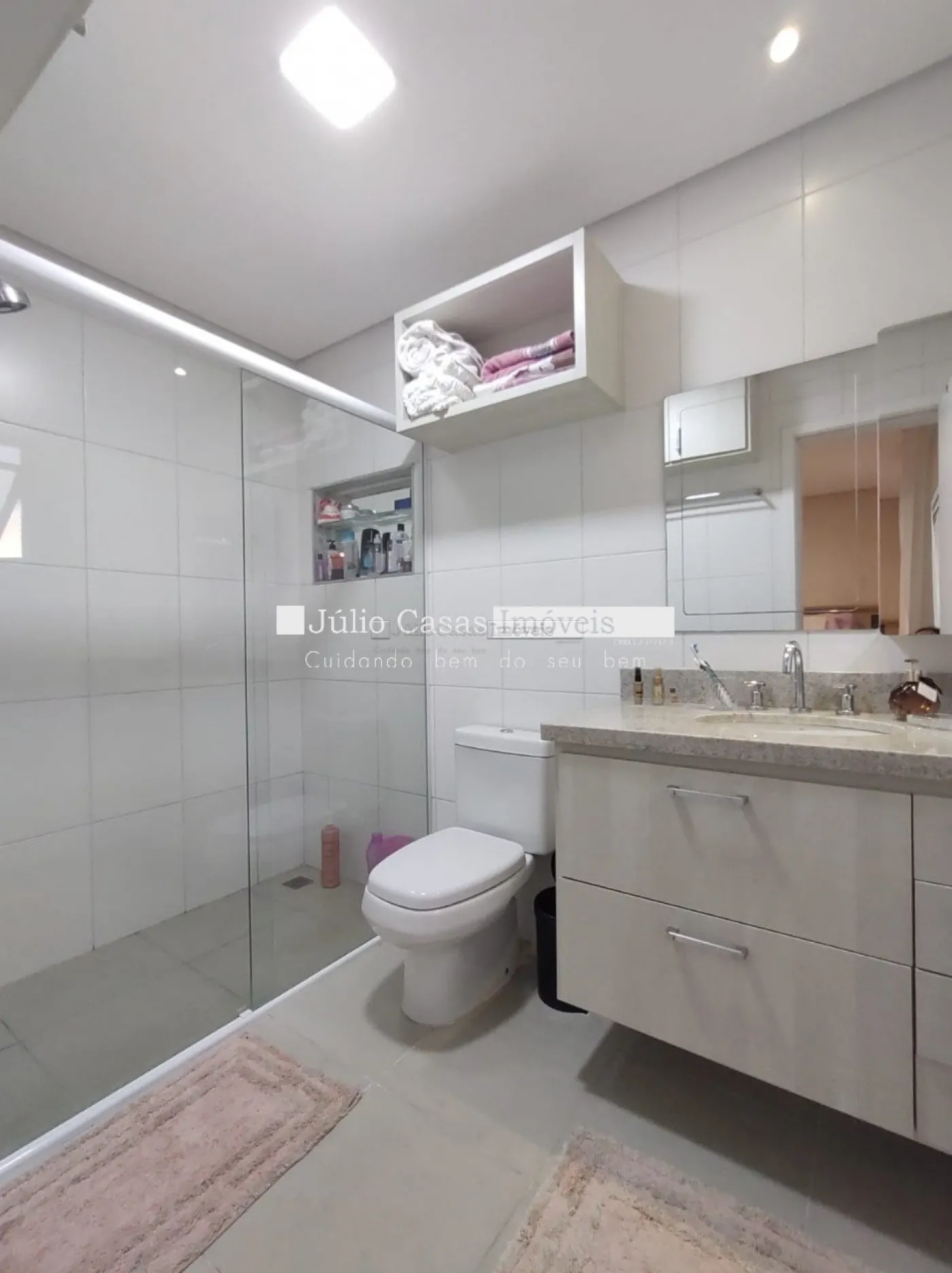 Os banheiros são modernizados com box em vidro e gabinetes, enquanto o apartamento é todo revestido em porcelanato, garantindo beleza e facilidade de manutenção. O conforto é garantido com ar-condicionado em todos os dormitórios e salas.
