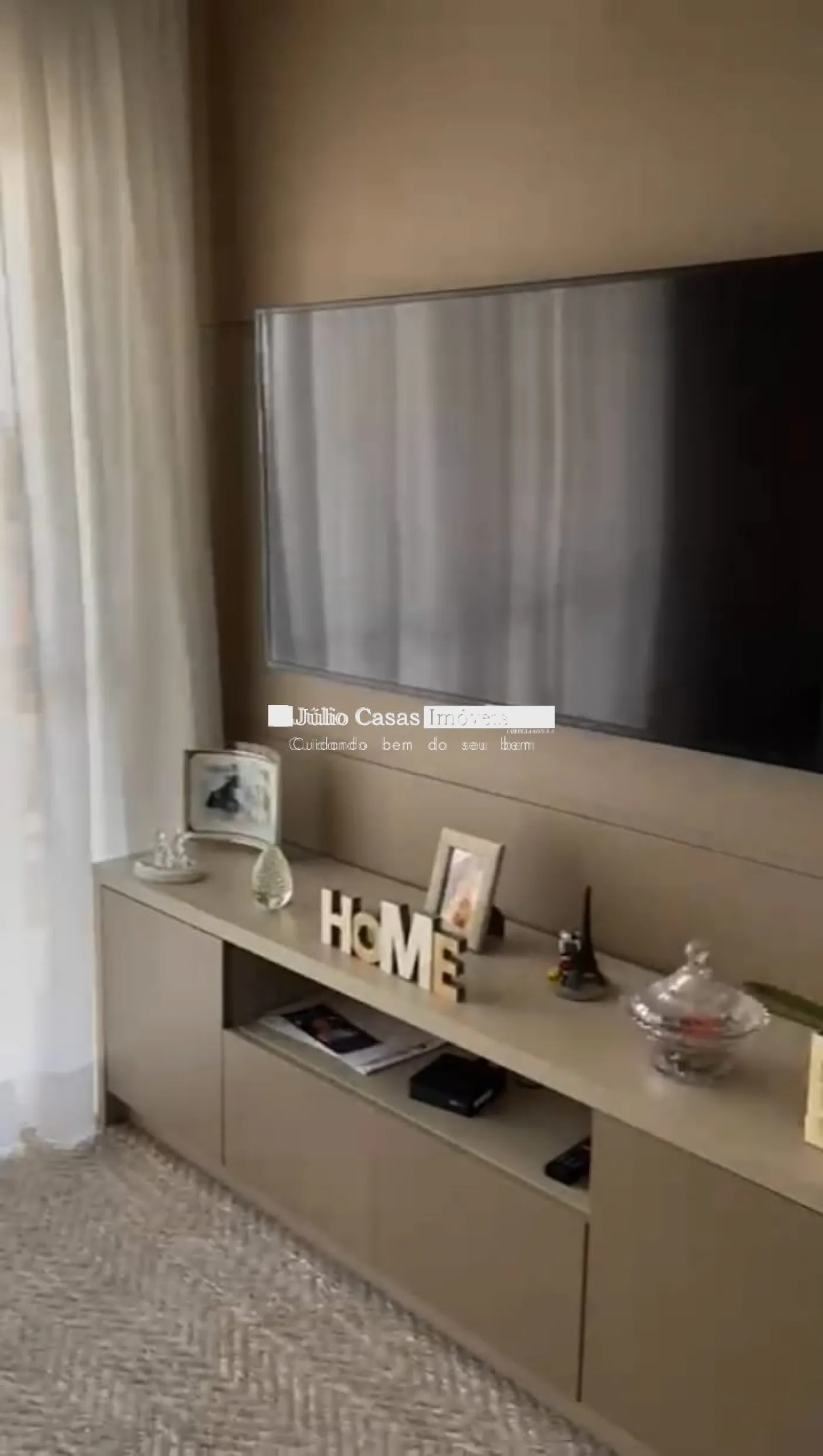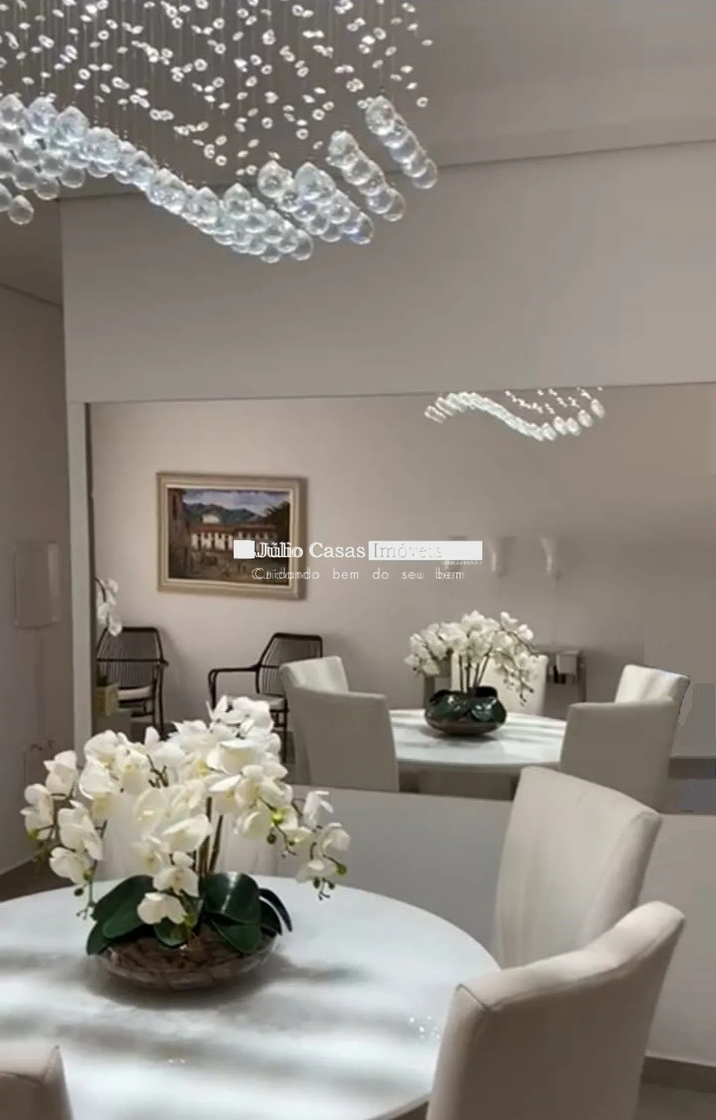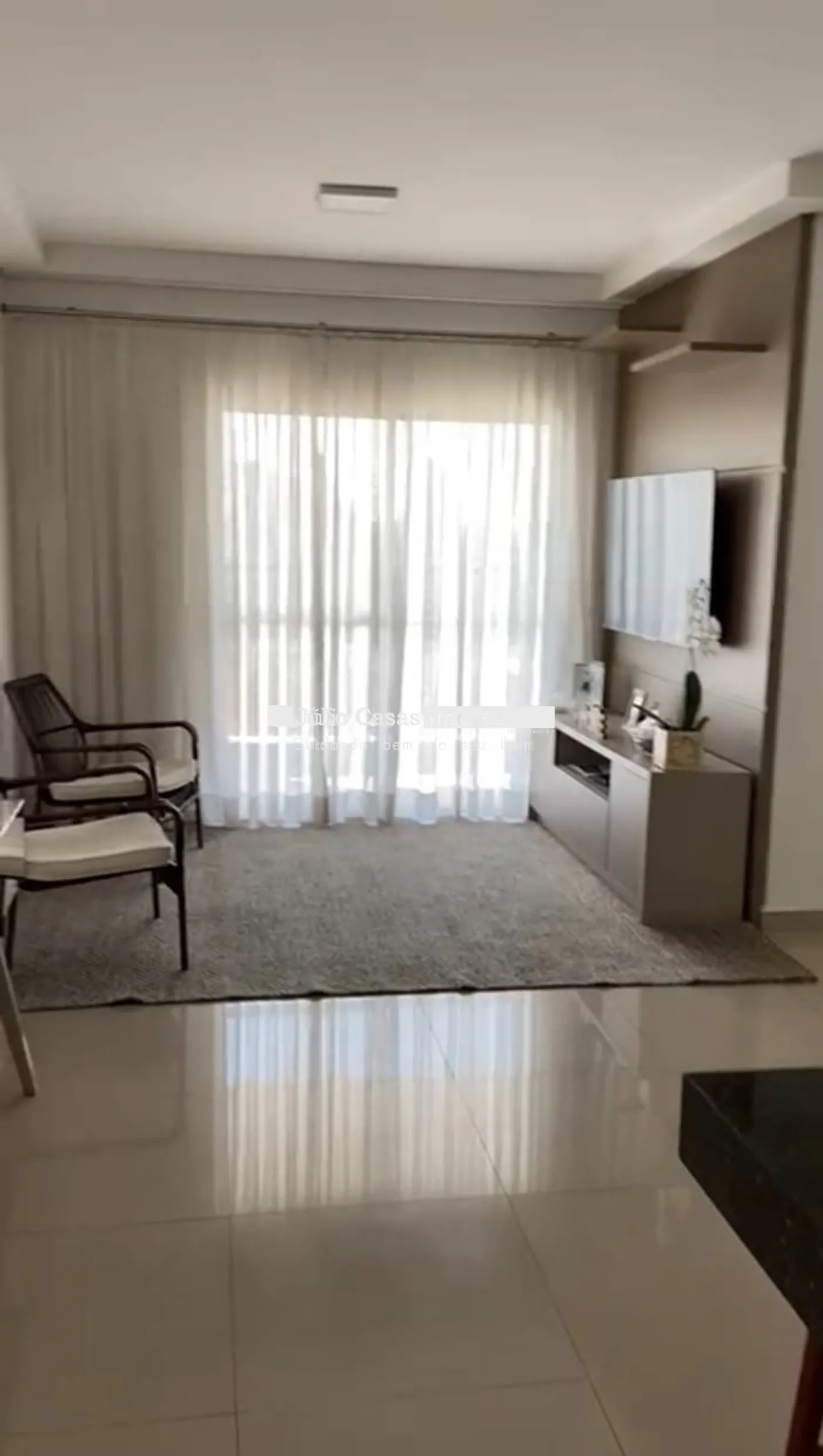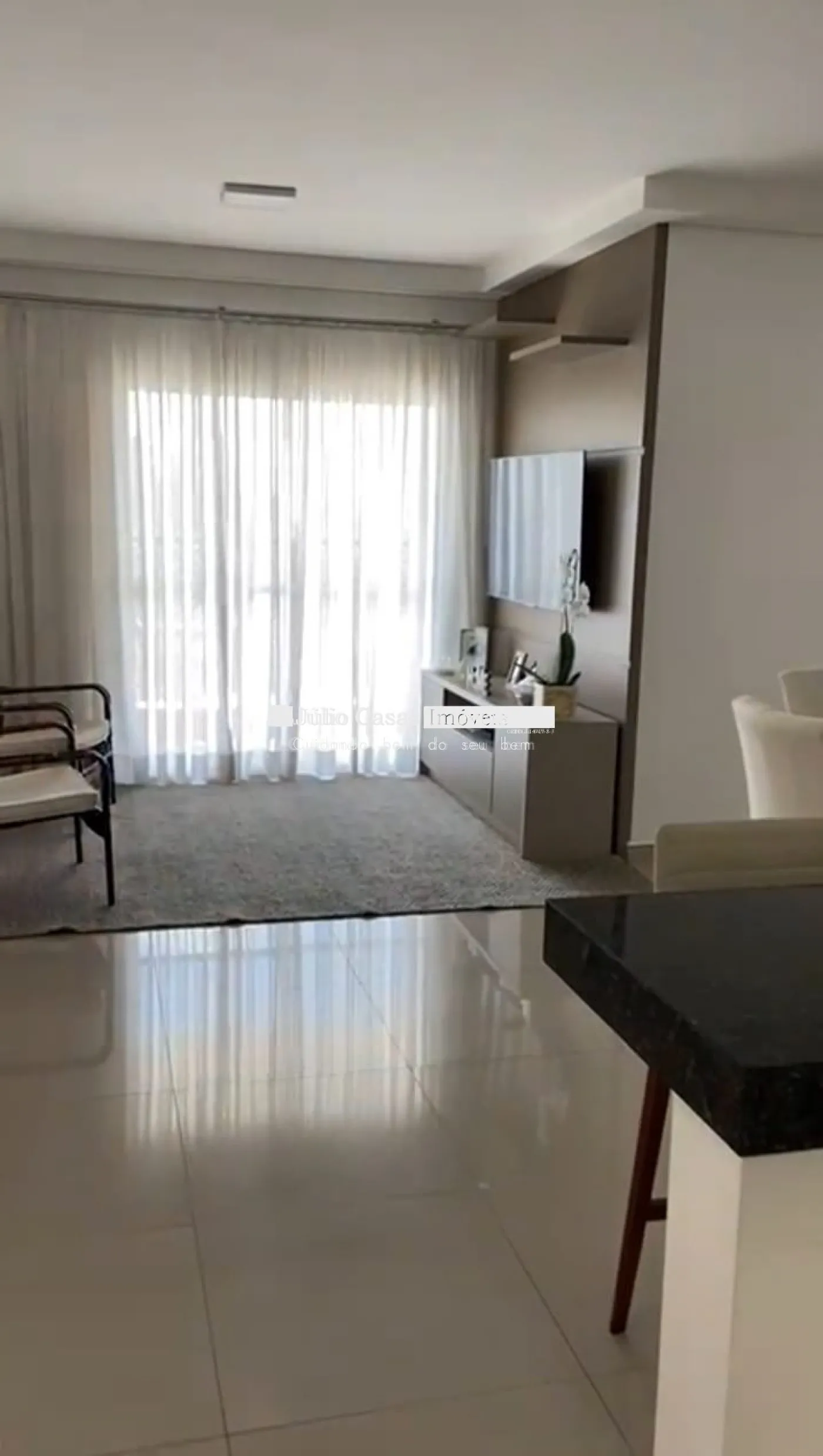 Sala 2 ambientes com piso em porcelanato, sancas e luminárias embutidas, integrada com a varanda gourmet com churrasqueira e modulada, cozinha modulada em estilo americana, 3 dormitórios modulados 1 sendo suíte, banheiros modulados e box em vidro,