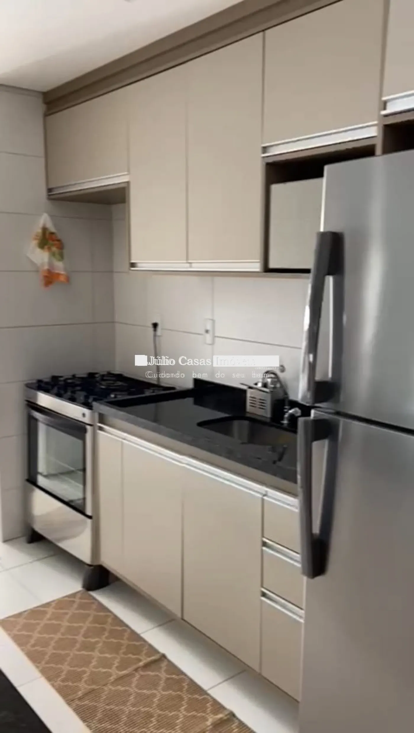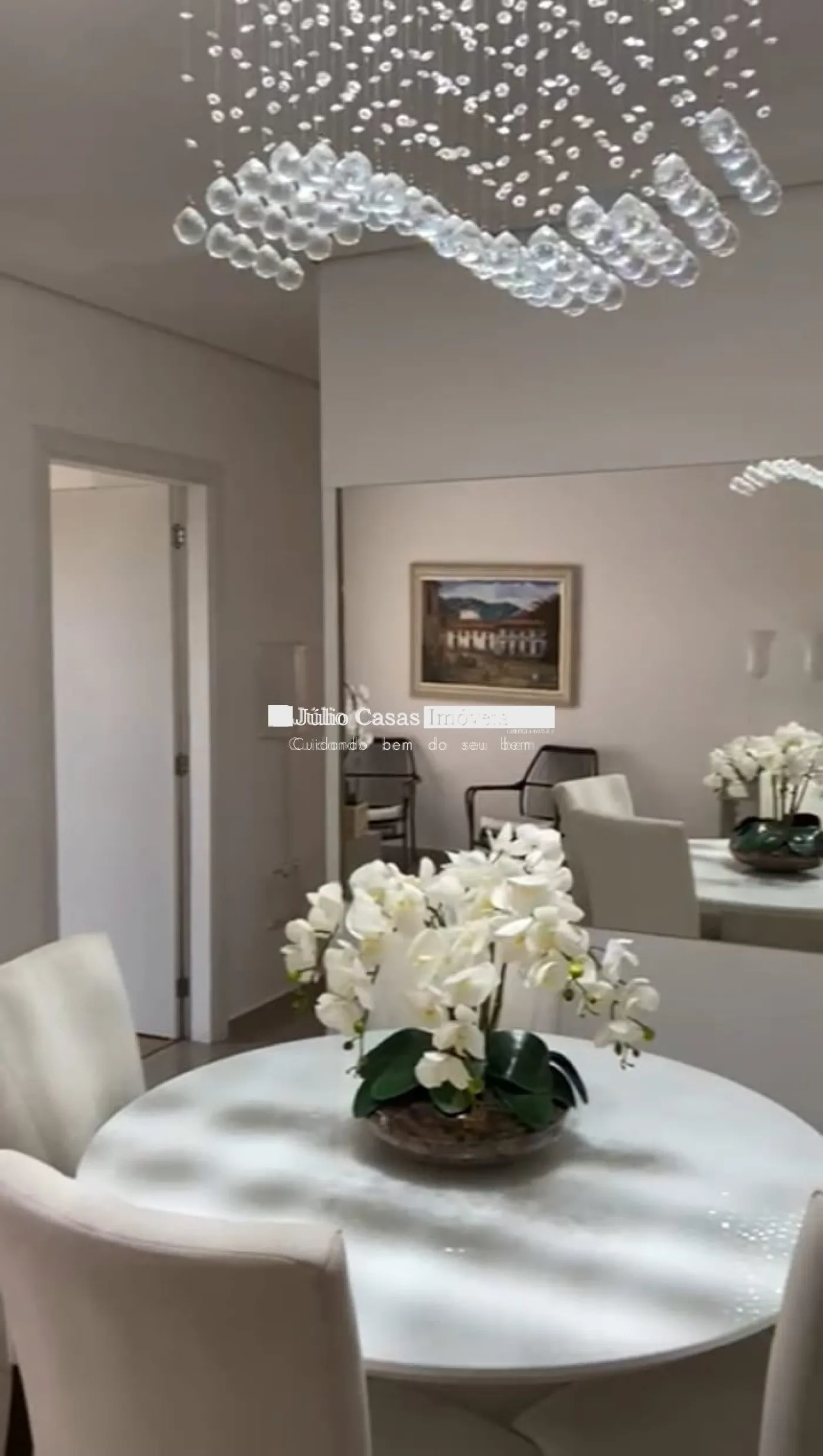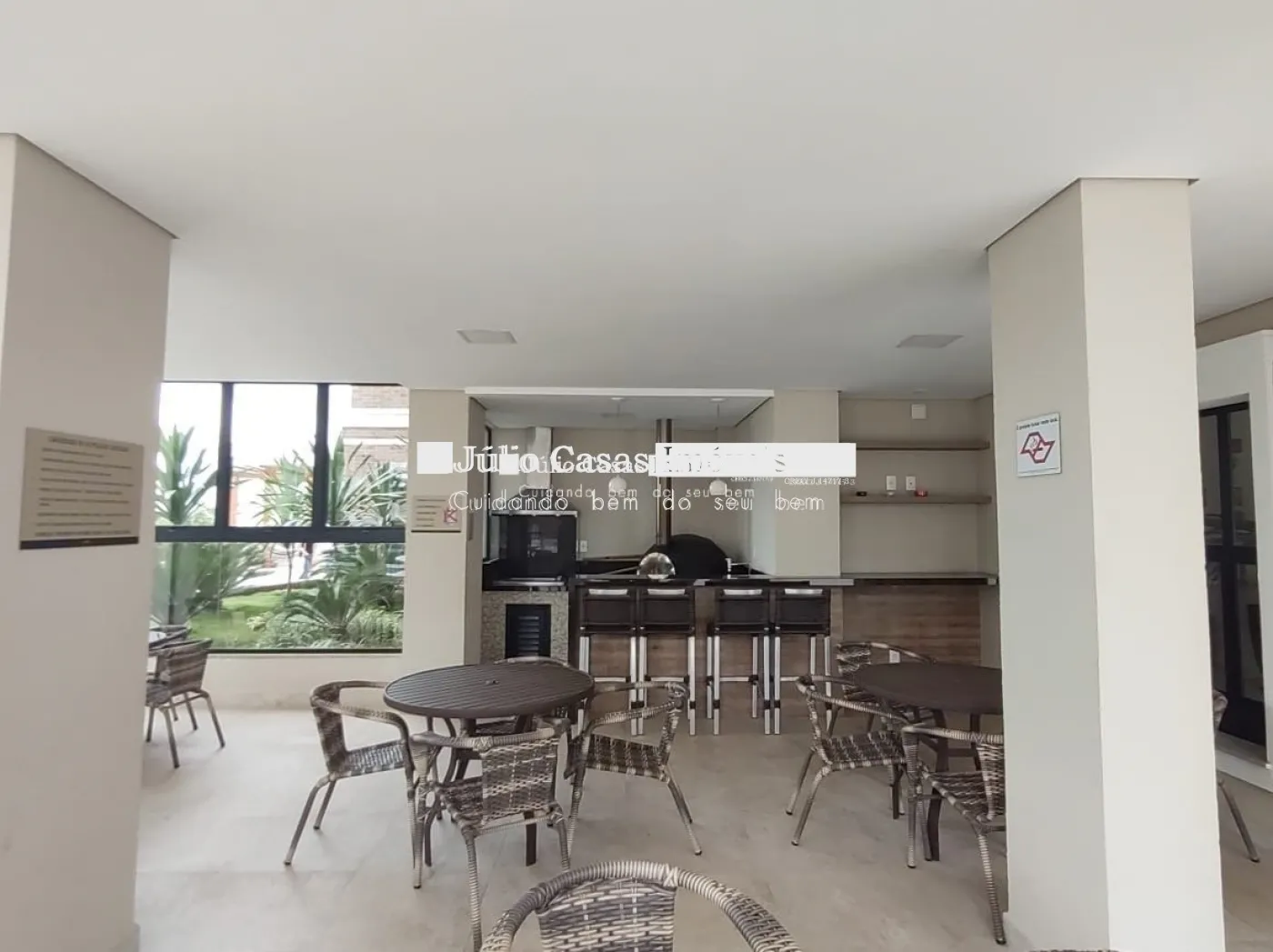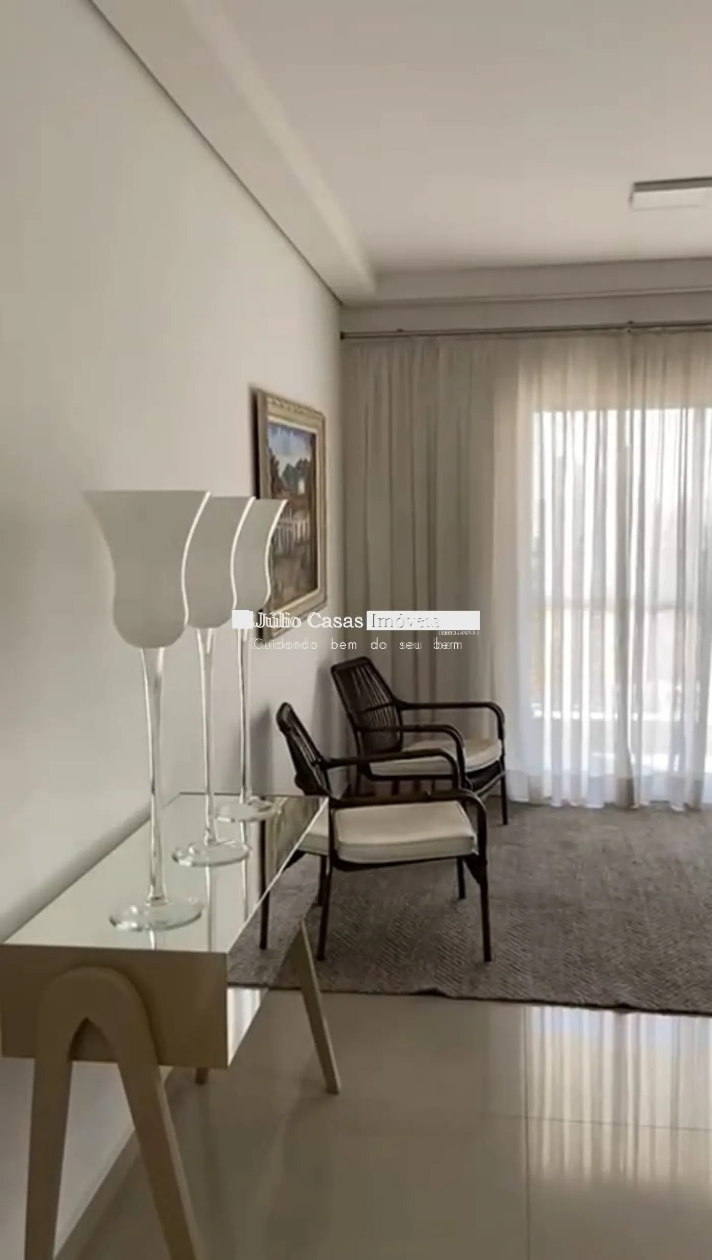 Sala 2 ambientes com piso em porcelanato, sancas e luminárias embutidas, integrada com a varanda gourmet com churrasqueira e modulada, cozinha modulada em estilo americana, 3 dormitórios modulados 1 sendo suíte, banheiros modulados e box em vidro,