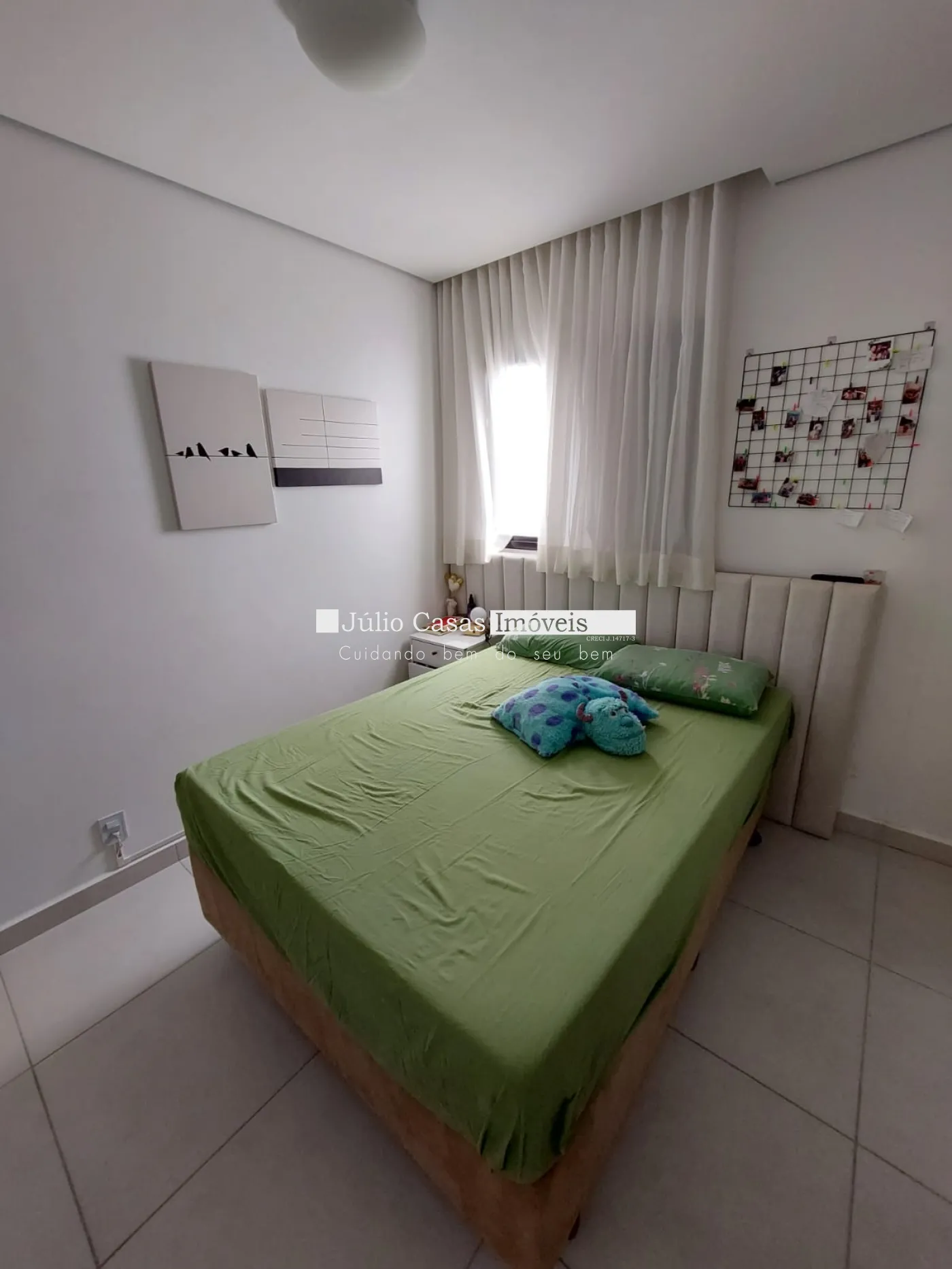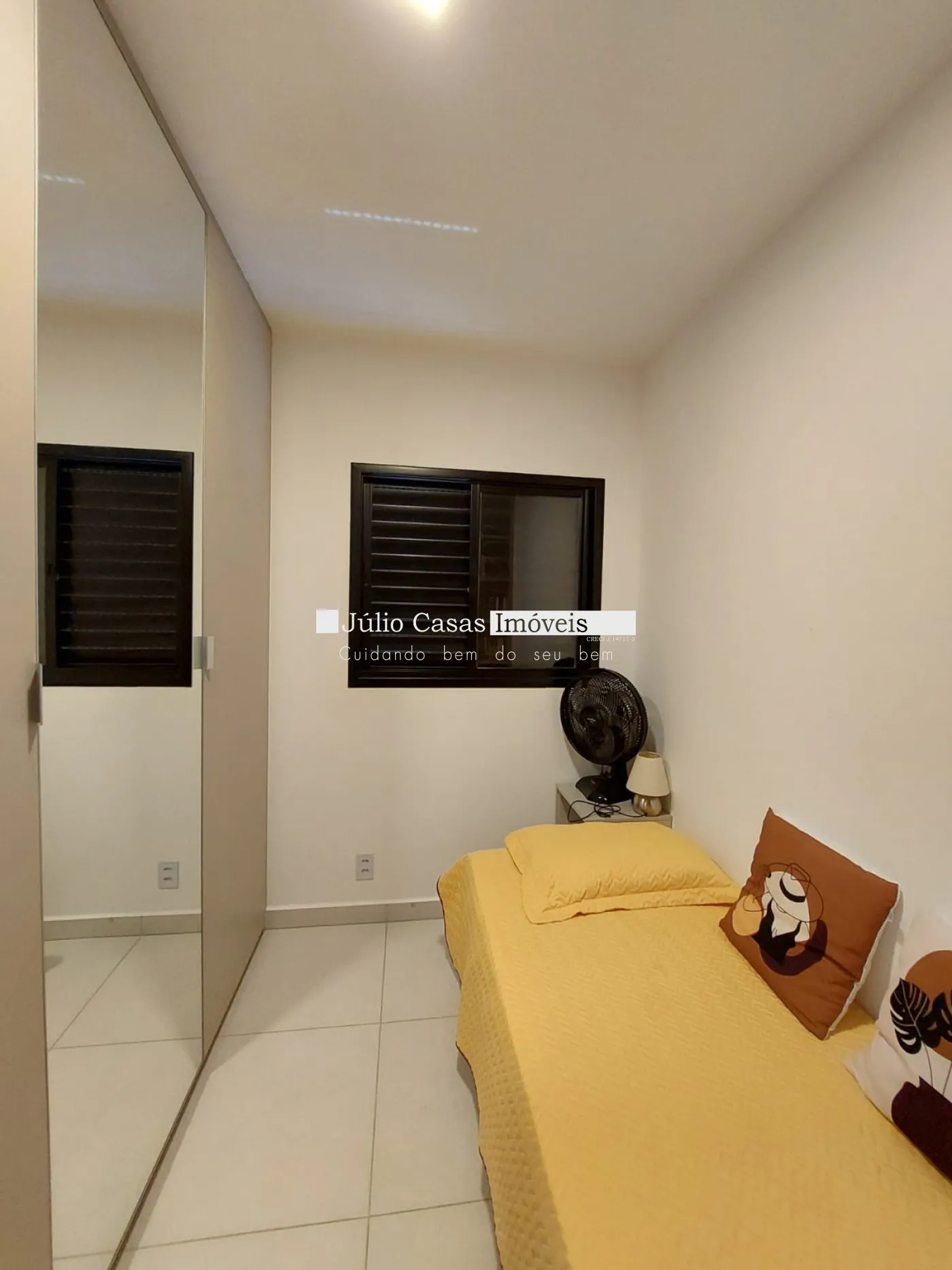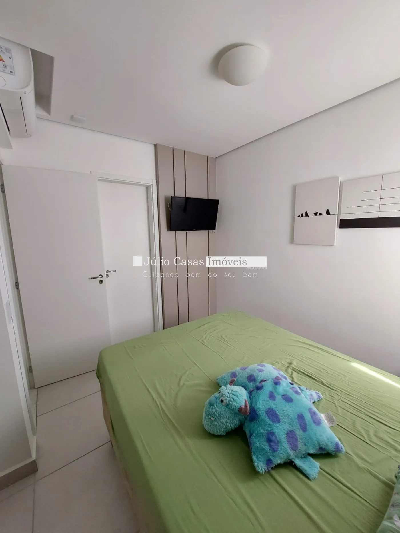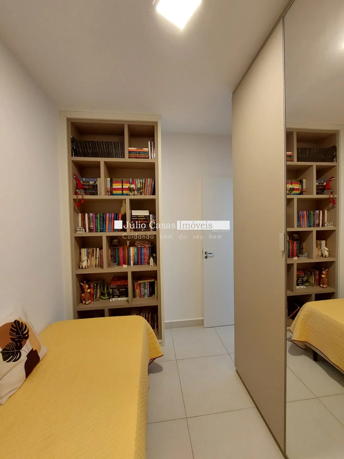 Possui 2 quartos modulados, sendo 1 suíte equipada com ar-condicionado. Os banheiros são modernos, com box em vidro e gabinetes.