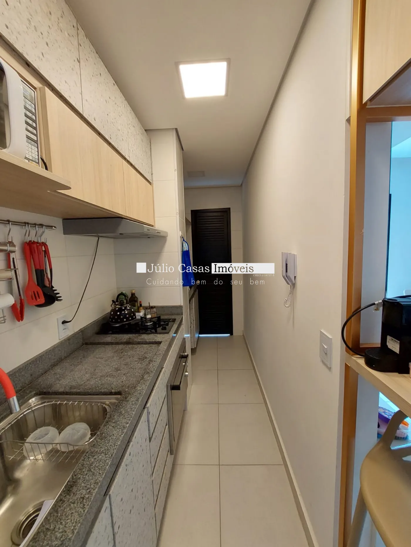 O imóvel conta com uma sala com dois ambientes, uma aconchegante varanda gourmet, e cozinha integrada à sala, além de área de serviço e varanda técnica.