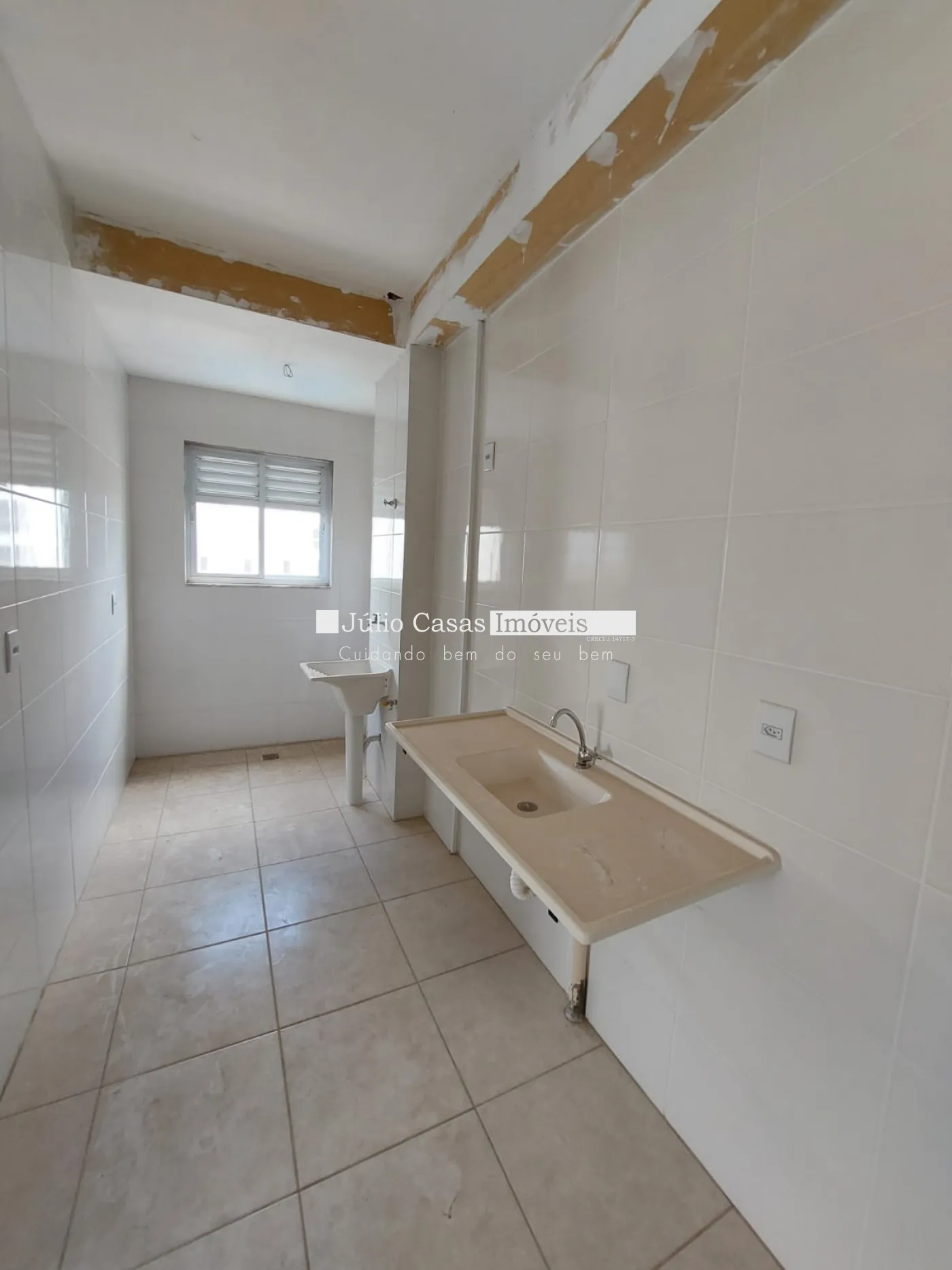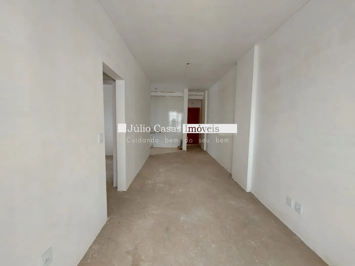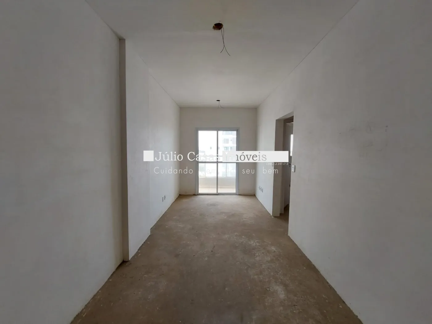 Sala ampla com sacada, wc, cozinha e 2 quarto, ambientes frios em piso e quarto e sala no contrapiso.