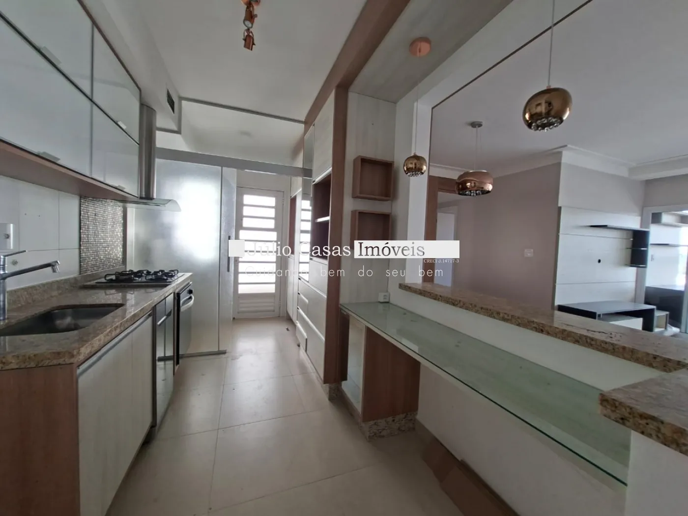 Sala 2 ambientes integrada com a varanda gourmet fechada por vidro , lavabo com pedra em mármore travertino, toda em piso porcelanato, 3 dormitórios 1 sendo suíte com closet todos estão com modulados, dormitórios em piso laminado, wc social, cozinha toda modulada com exaustor, lavanderia com varanda técnica, acabamento em gesso e sancas, varanda gourmet fechada em vidro temperado, banheiros com box em vidro e gabinetes. 2 vagas de garagem cobertas.