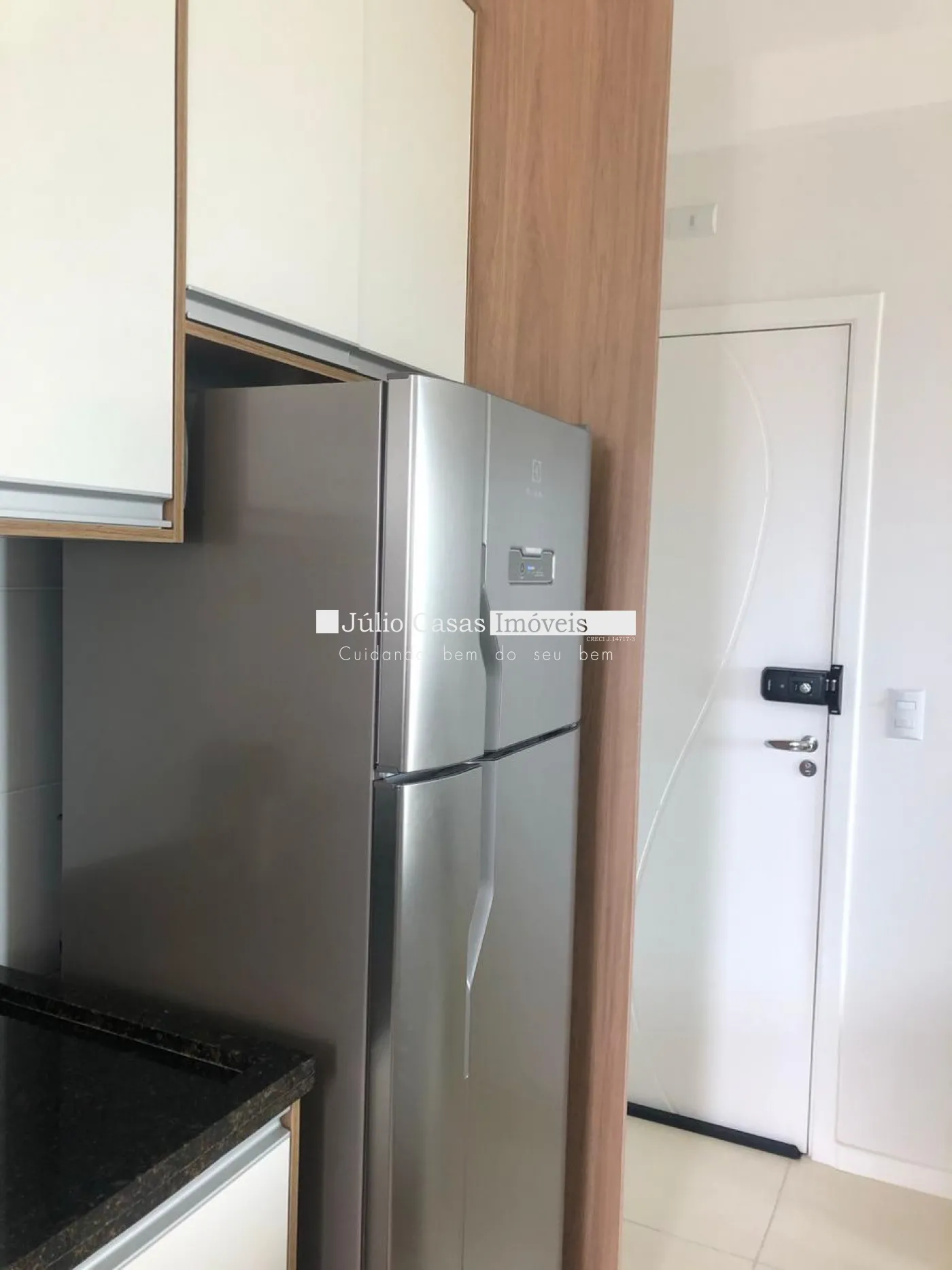 Cozinha, lavanderia, fechadura eletrônica, ar condicionado.