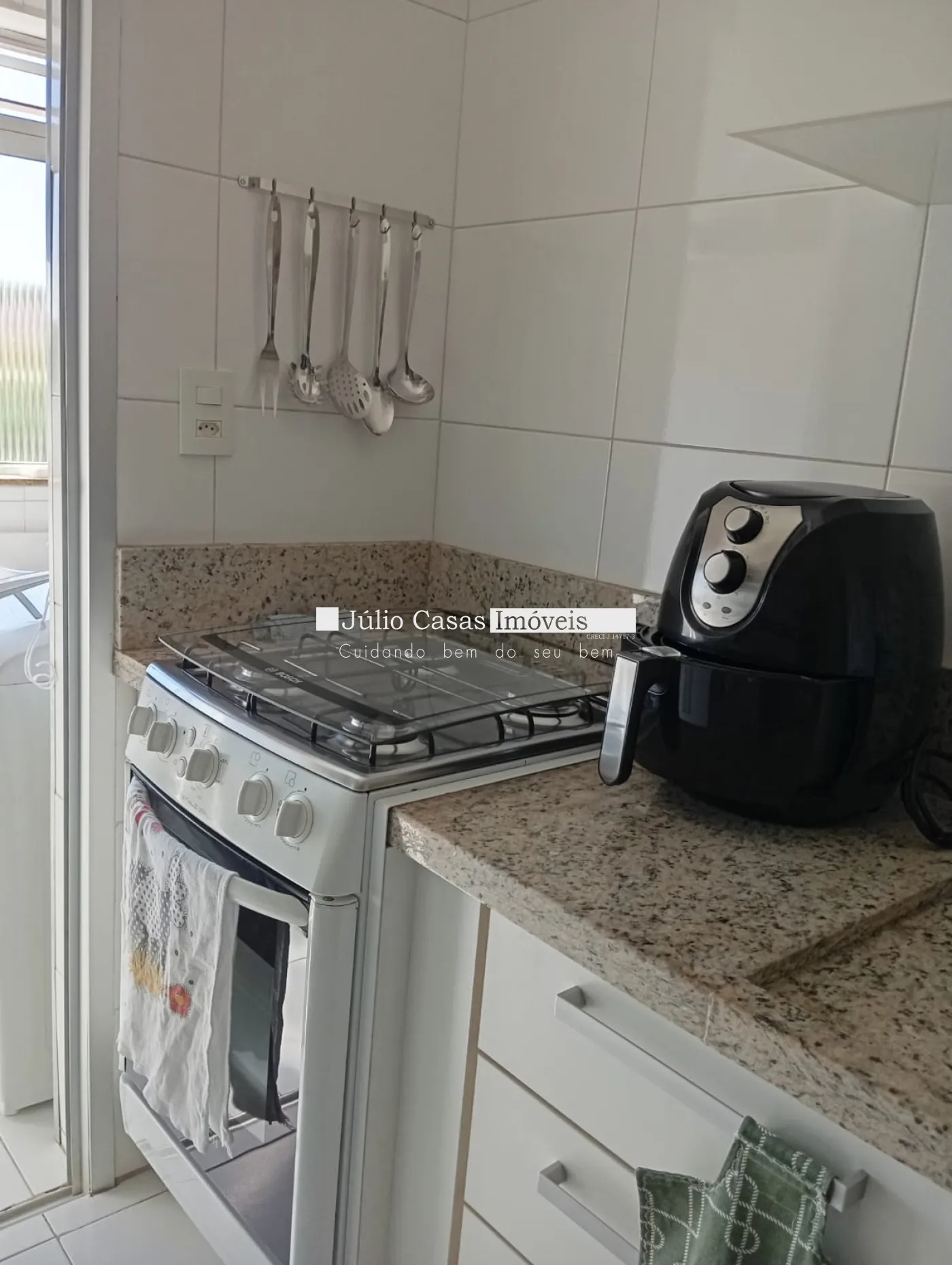- Piso em cerâmica na cozinha, garantindo praticidade e fácil manutenção