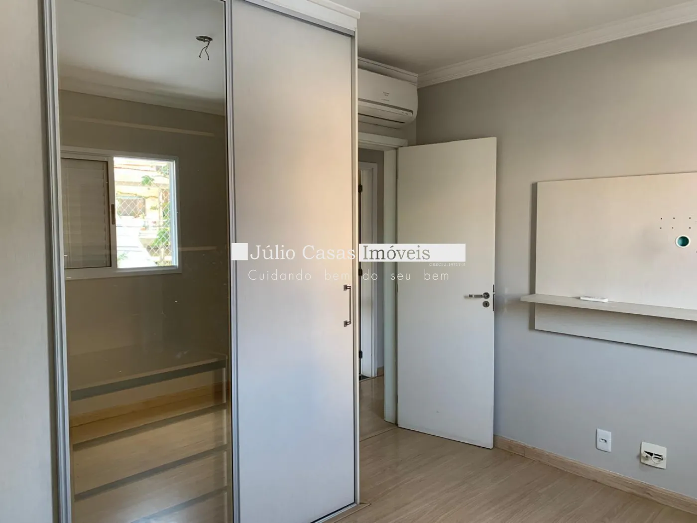Sendo 1 dormitório com ar-condicionado, armário planejado e painel de TV