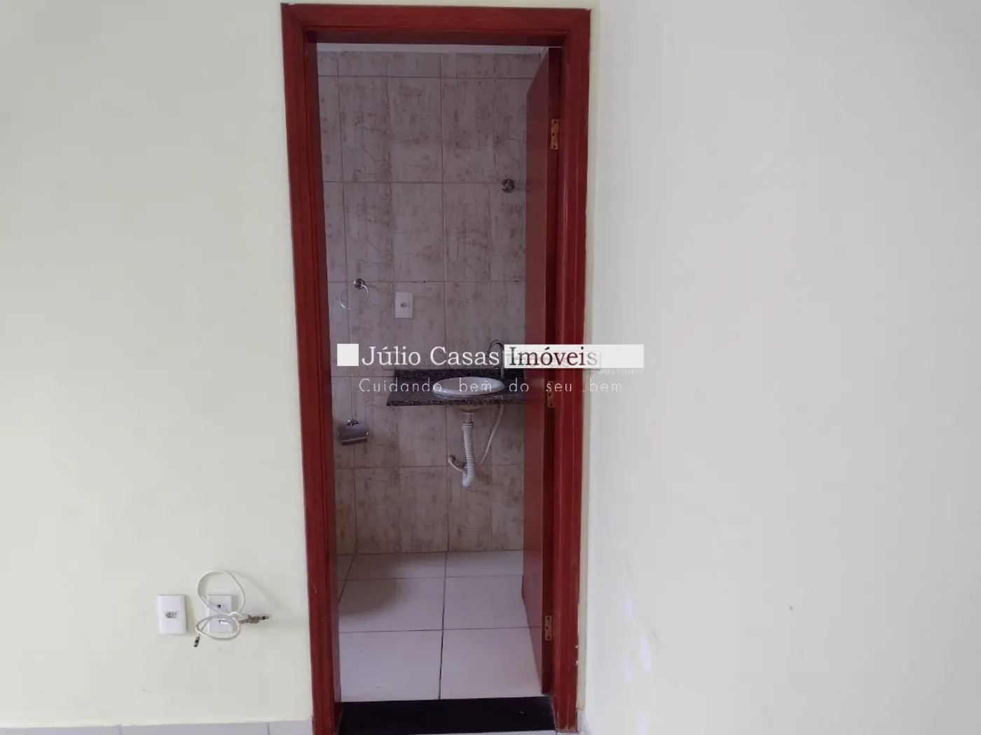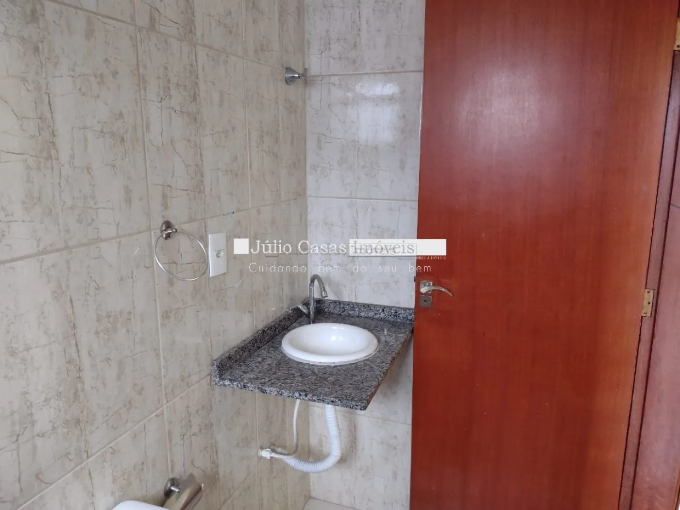 banheiro social com box, vaga descoberta para 1 veículo, salão de festas