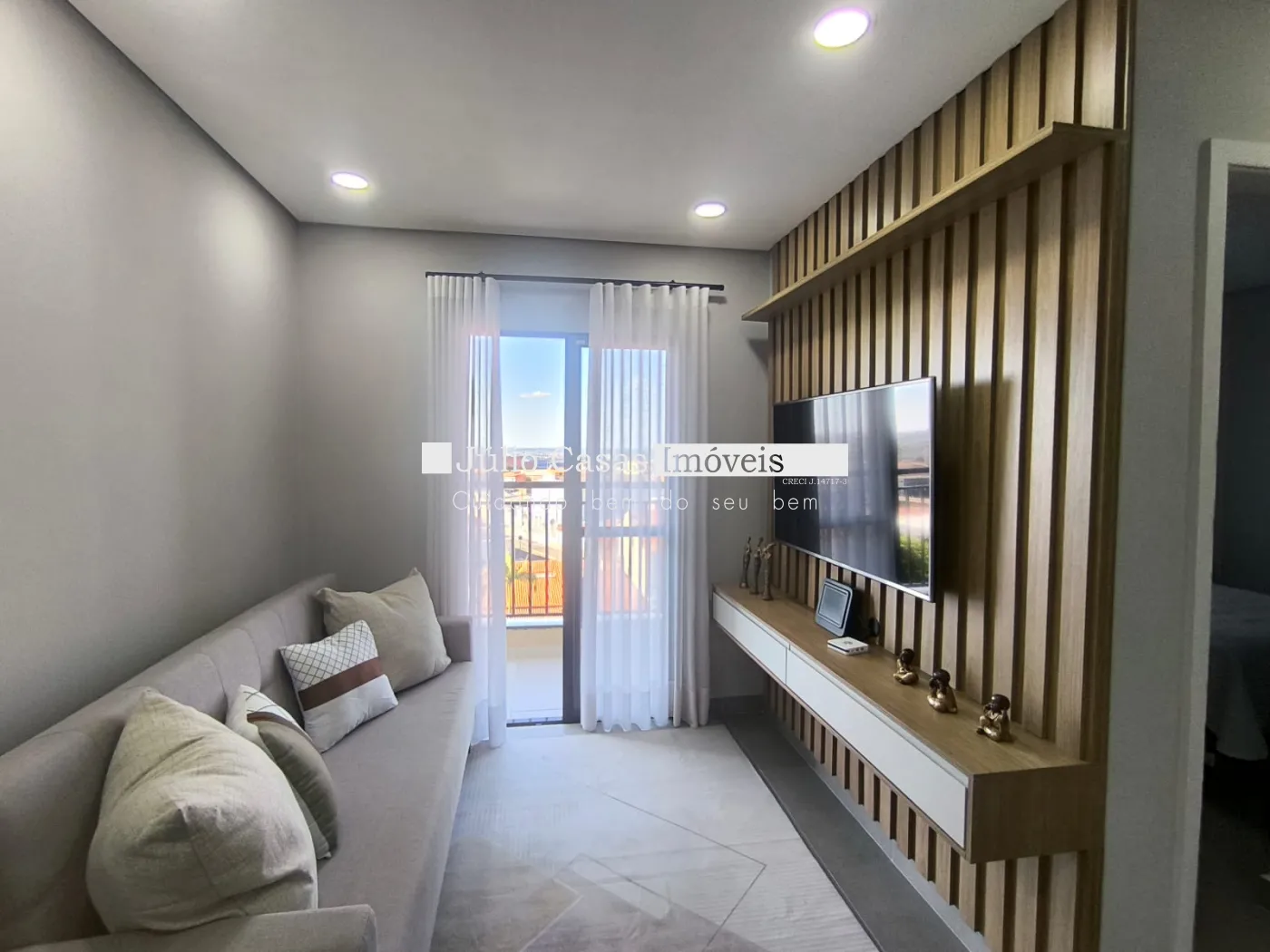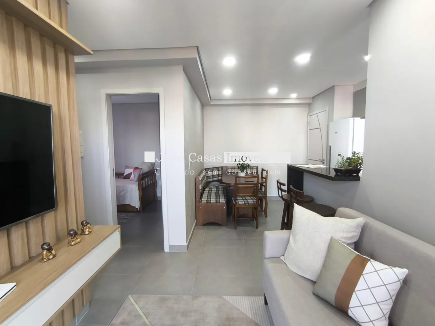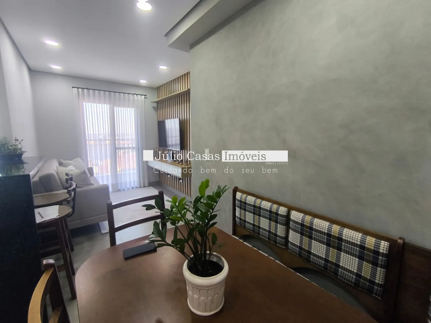 Apartamento à venda com sala para dois ambientes, sala com painel (brise) e parede decorativo em cimento queimado.