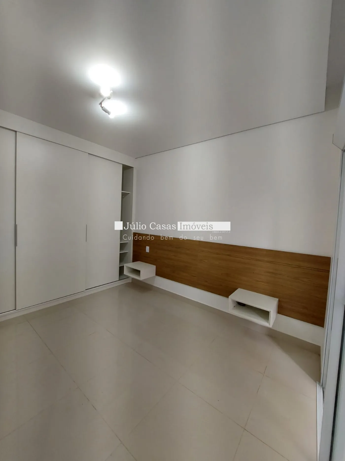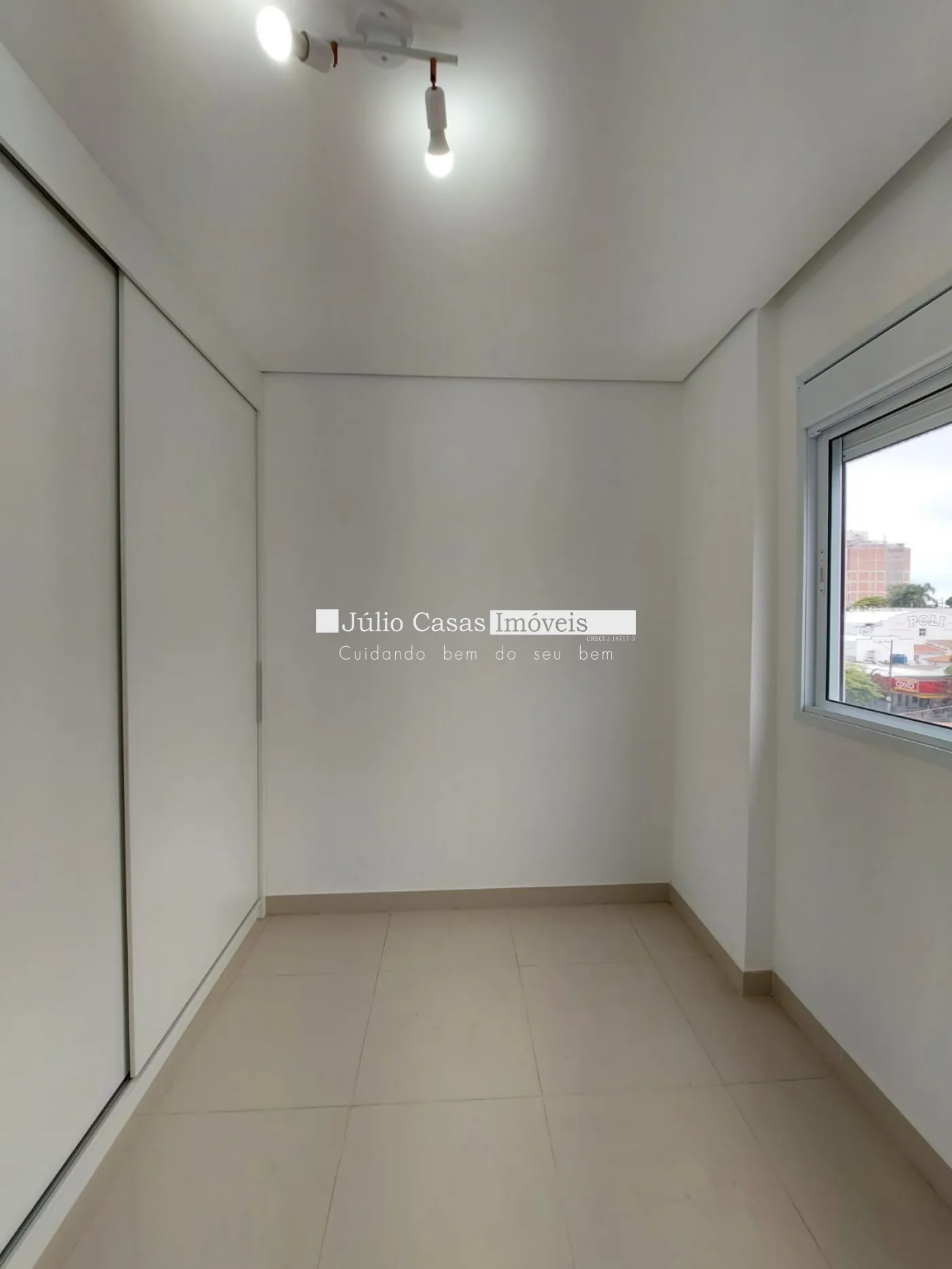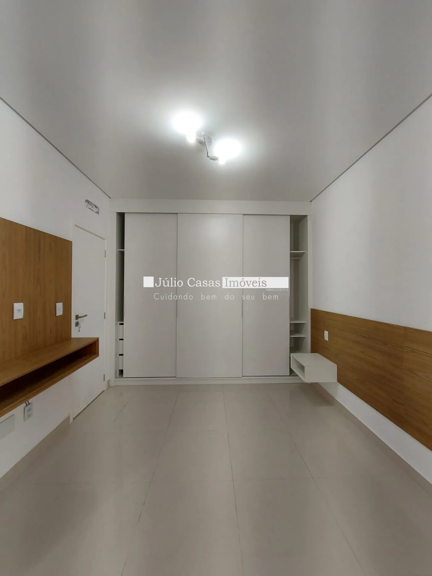 O imóvel dispõe de três quartos, sendo um deles uma suíte, todos com móveis planejados. O apartamento é revestido com piso porcelanato, proporcionando elegância e facilidade de limpeza.