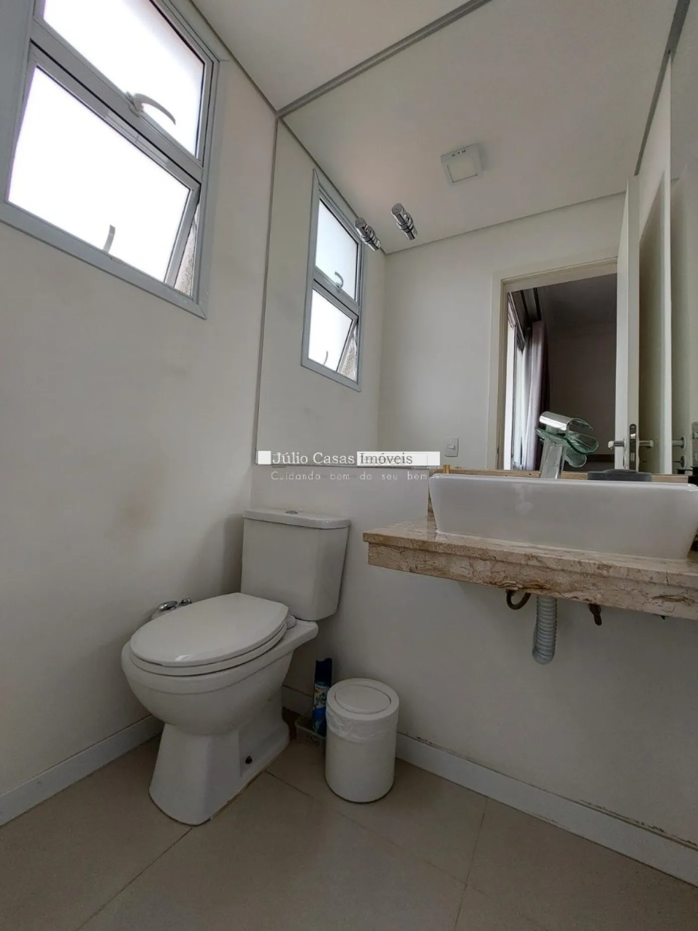 Sala com piso porcelanato, teto com acabamento em gesso, lavabo e varanda gourmet com churrasqueira.