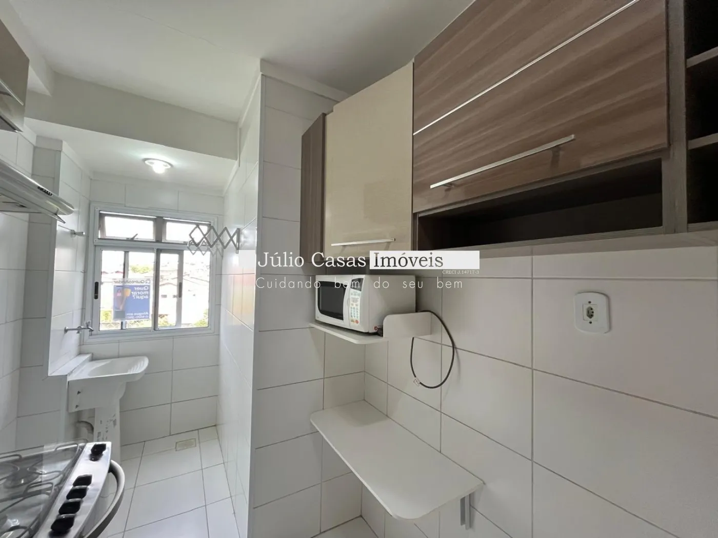 O imóvel oferece um ambiente moderno e acolhedor. A sala em dois ambientes é o coração da casa, com o toque de sofisticação do piso em porcelanato polido, ideal para receber amigos ou relaxar. A cozinha é um show à parte, repleta de modulados de alta qualidade, garantindo organização e funcionalidade para o seu dia a dia, e conta com uma área de serviço anexa para maior comodidade. São dois dormitórios confortáveis e bem iluminados, e um banheiro social que complementa a área íntima, equipado com um elegante box em vidro temperado e gabinete sob a pia com cuba em louça branca de sobrepor. E para a sua total conveniência, o apartamento ainda oferece uma vaga de garagem! A localização é imbatível! Situado em um bairro consolidado e de ótima localização, você estará a poucos passos de supermercados, escolas e comércio em geral, facilitando sua rotina. E para quem precisa de mobilidade, fácil acesso à Rodovia Castelo Branco.