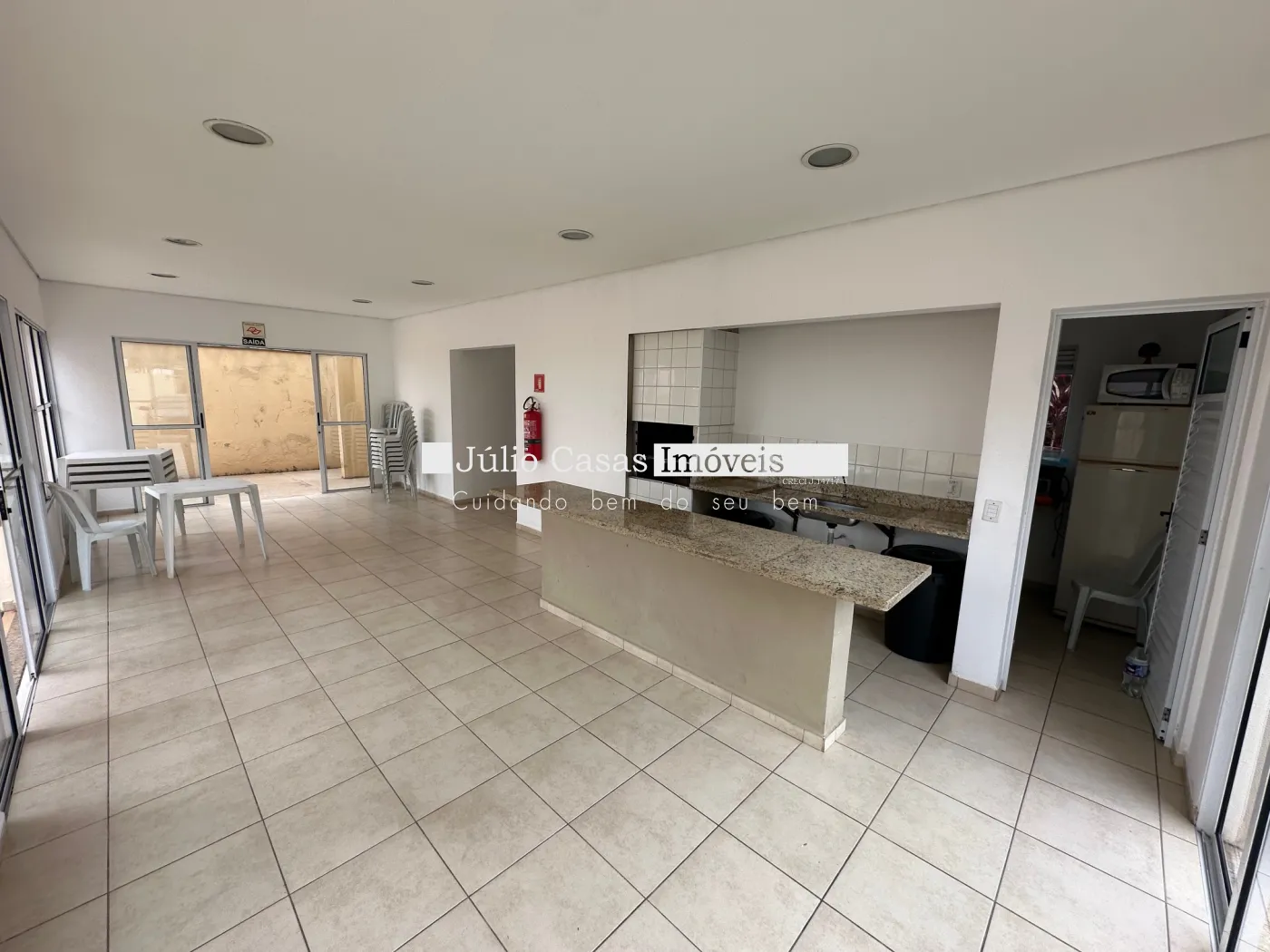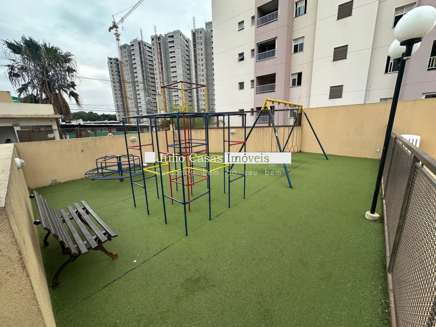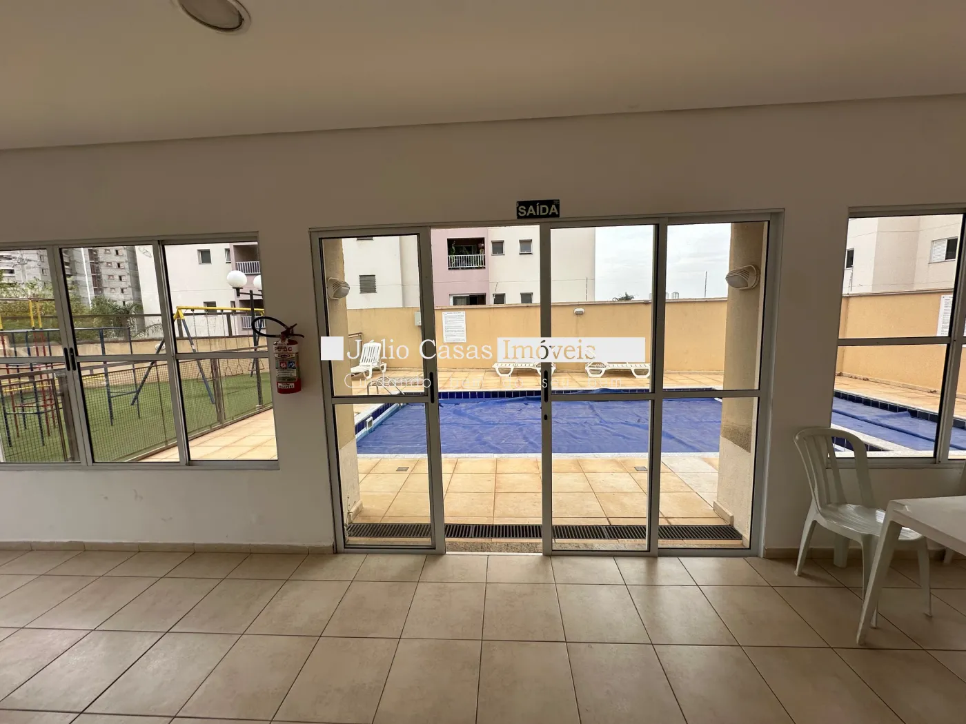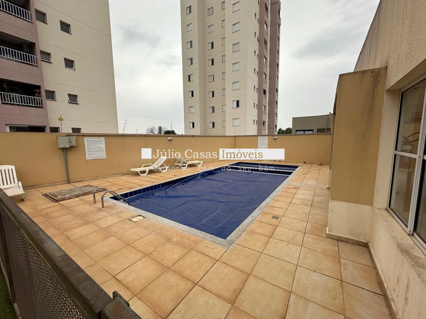 Condomínio com piscina, salão de festas, playground.