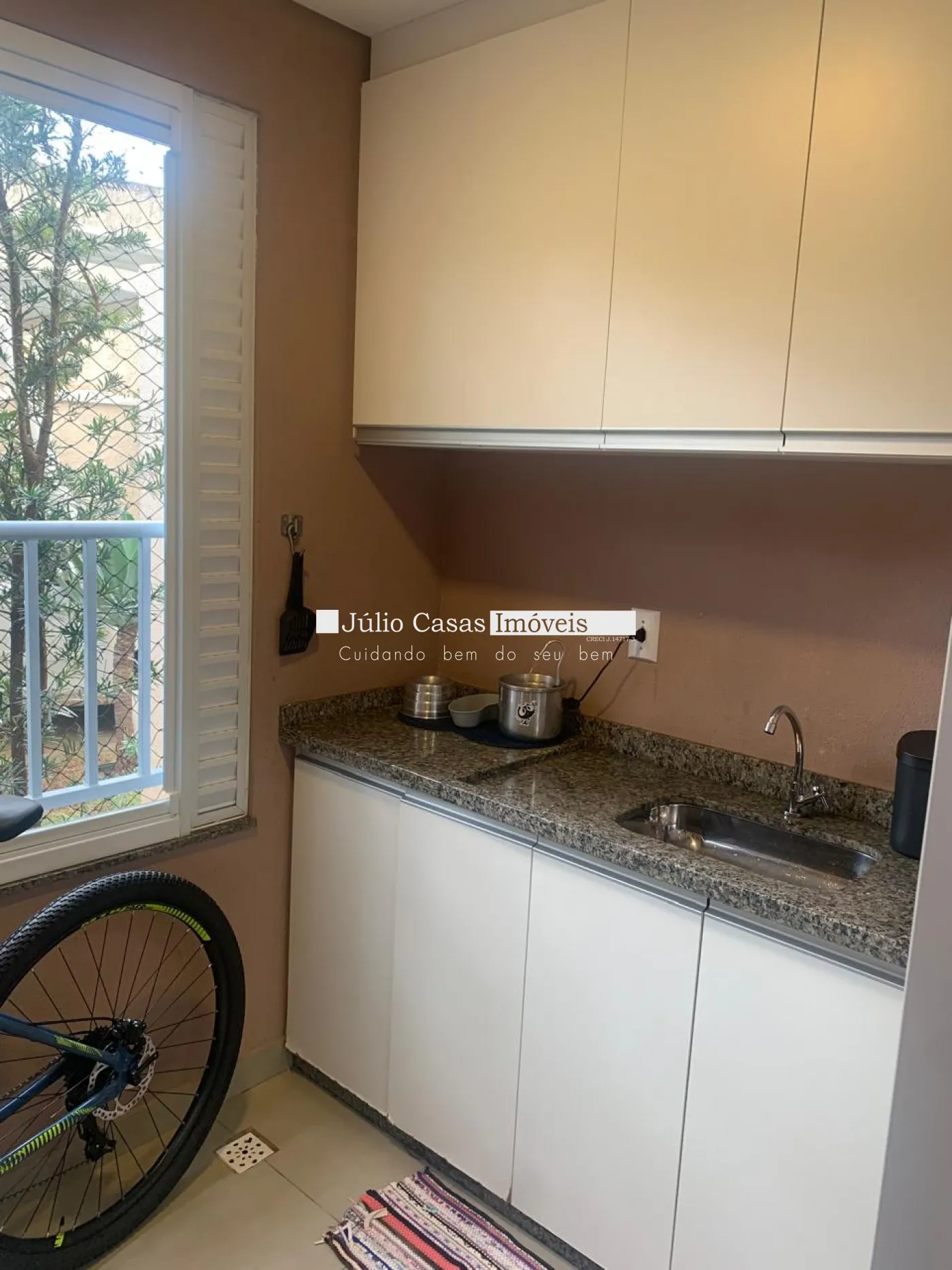 Varanda com armários, trazendo mais organização ao ambiente