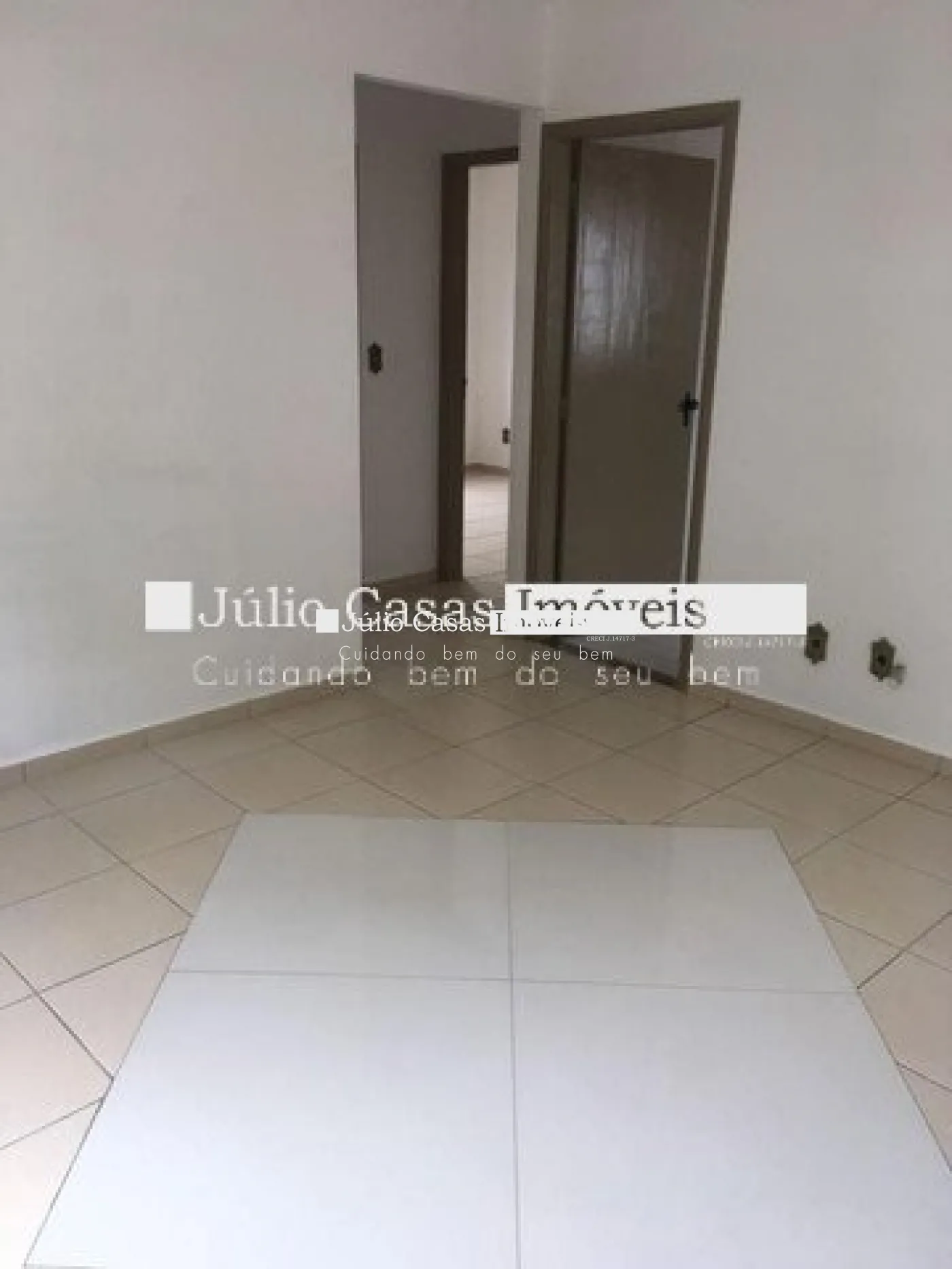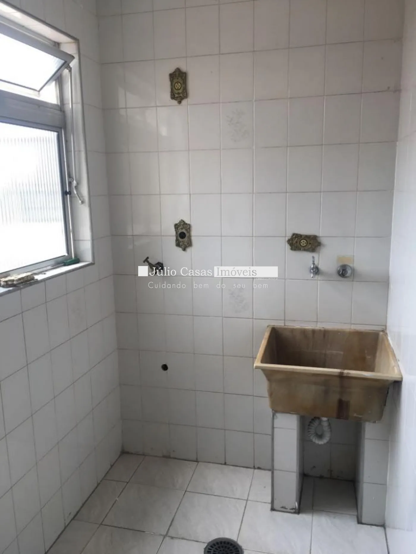 São 2 dormitórios, Sala com sacada, Cozinha, Banheiro e Área de serviço.