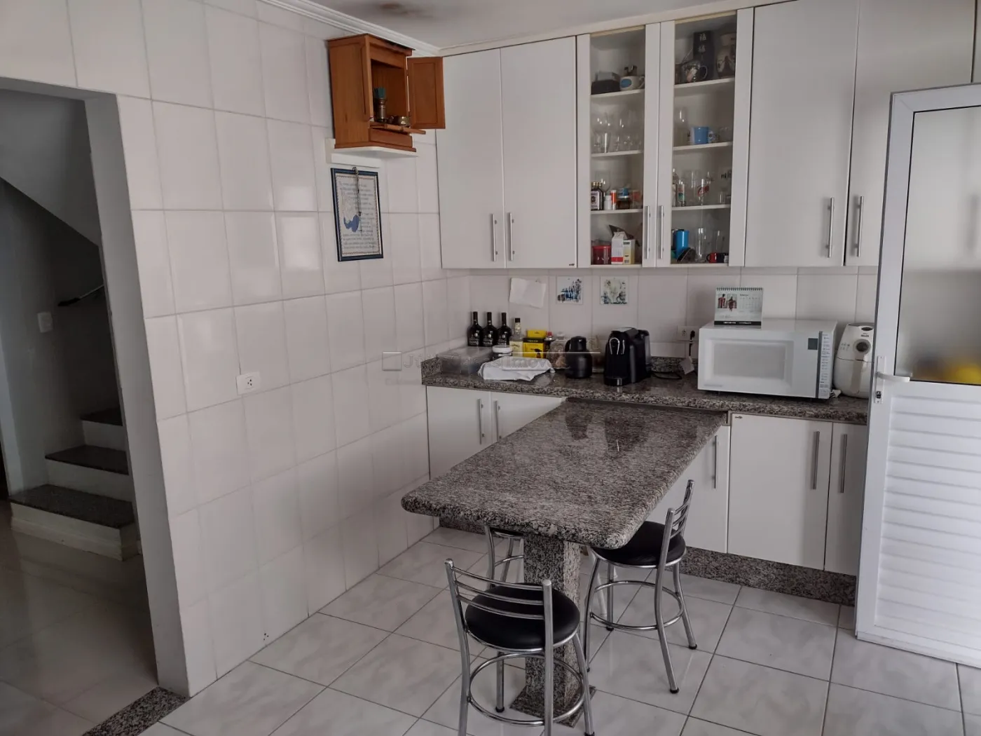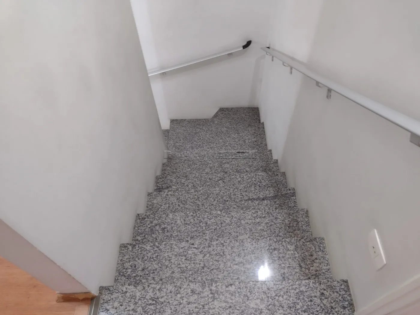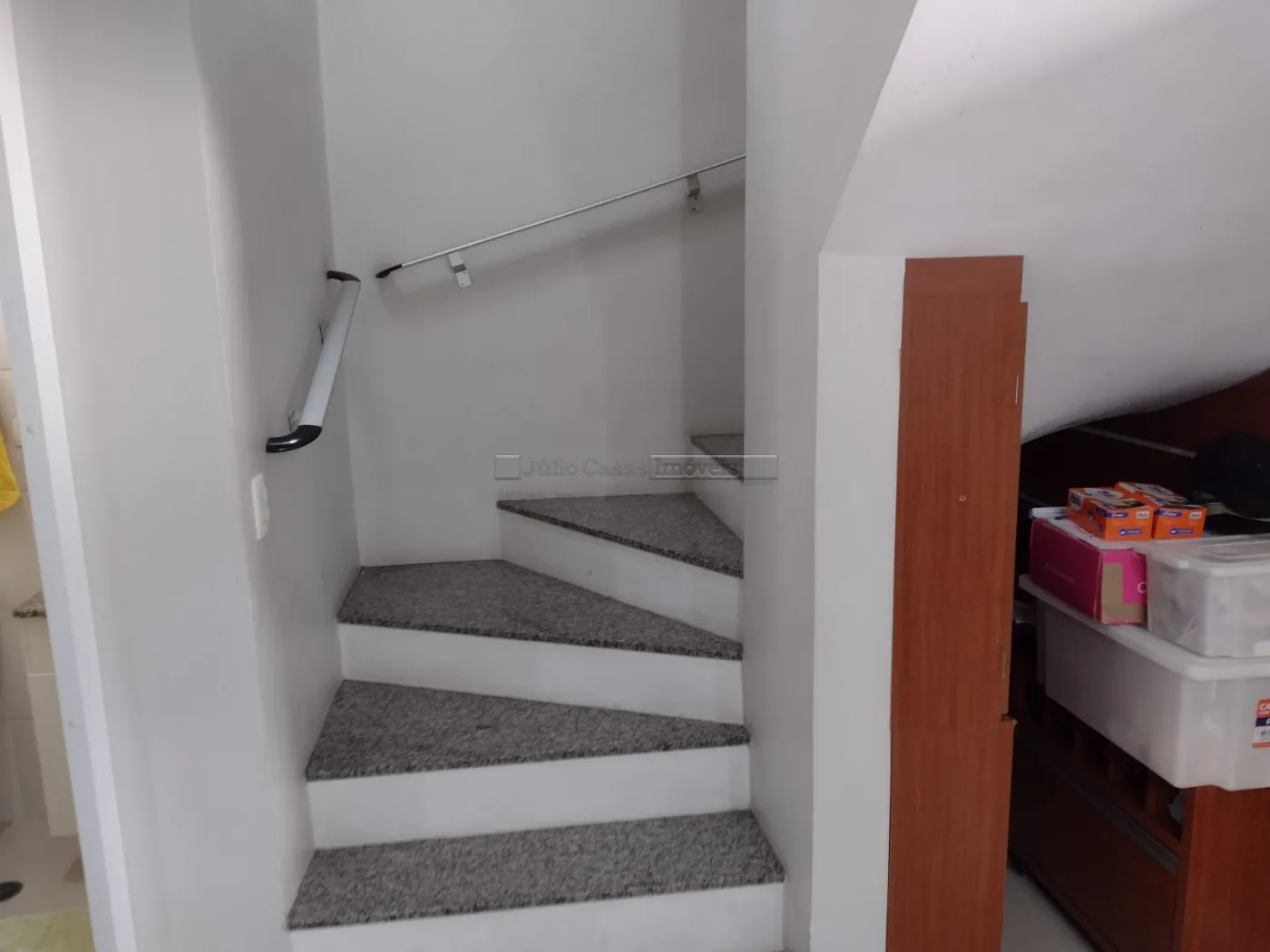 No piso inferior ampla sala em dois ambientes, com piso em porcelanato retificado de primeira qualidade, teto com detalhes em gesso, ar condicionado tipo inverter e prático lavabo com porta deslizante em vidro temperado. Cozinha repleta de armários modulados, amplo balcão de granito em `L`, com paredes azulejadas até o teto e piso em material cerâmico.