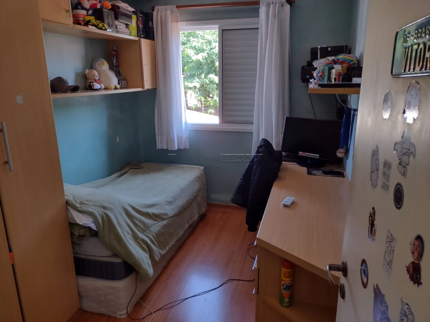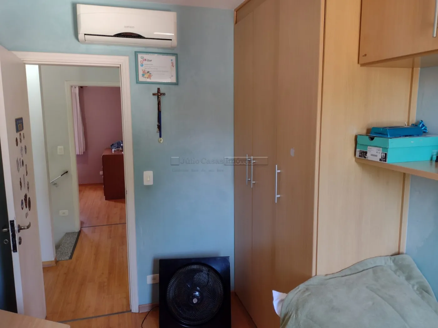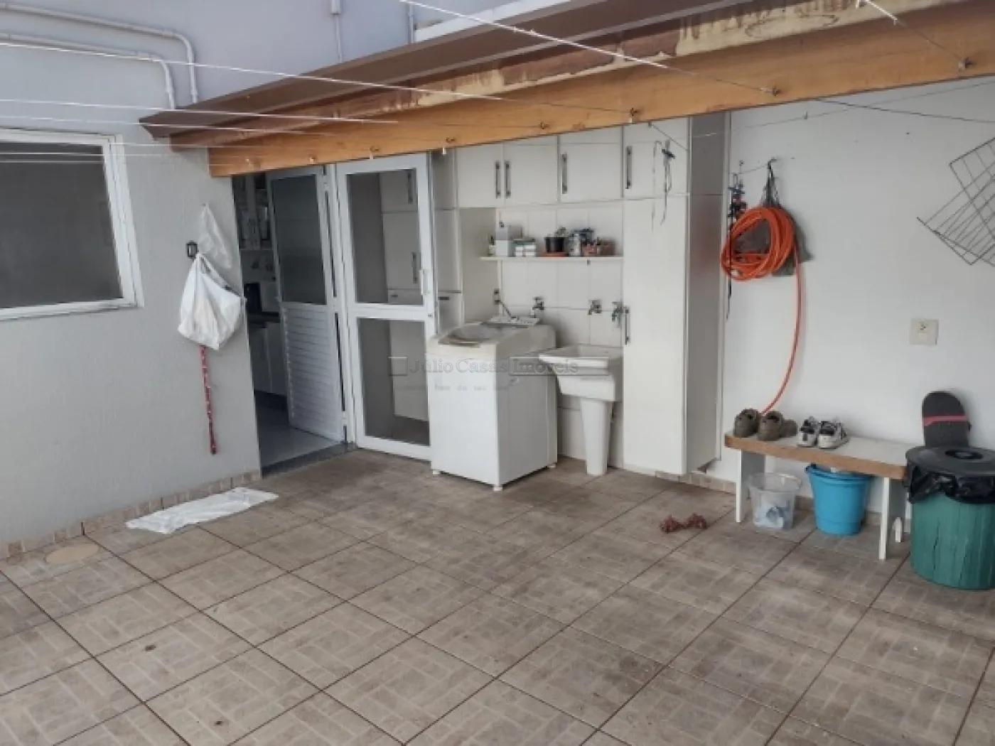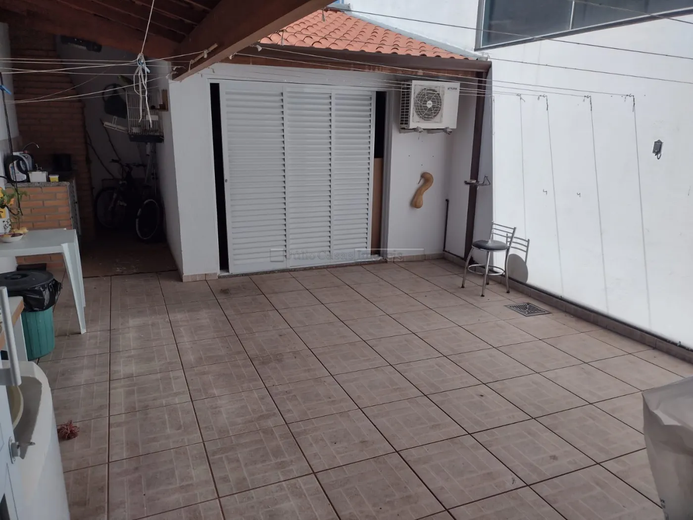 Quintal com piso todo revestido em cerâmica, com lavanderia, churrasqueira e quarto de apoio, com ar condicionado, podendo ser transformado em escritório. Duas vagas de garagem coberta. No piso superior três confortáveis dormitórios sendo uma suíte com piso em laminado de madeira, detalhe de gesso no teto, armários modulados e ar condicionado.