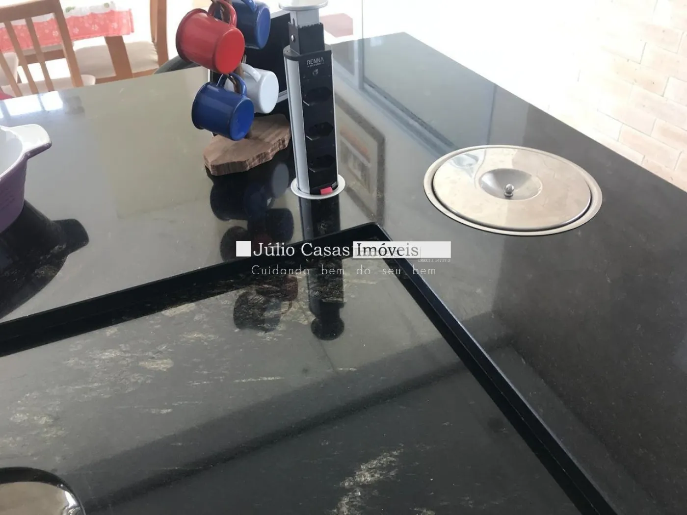Os pisos são de alta qualidade, com Portinari 90x90 na sala, cozinha e área gourmet. Os quartos e o home theater possuem piso vinílico Tarkett, e o rodapé é da Santa Luzia.