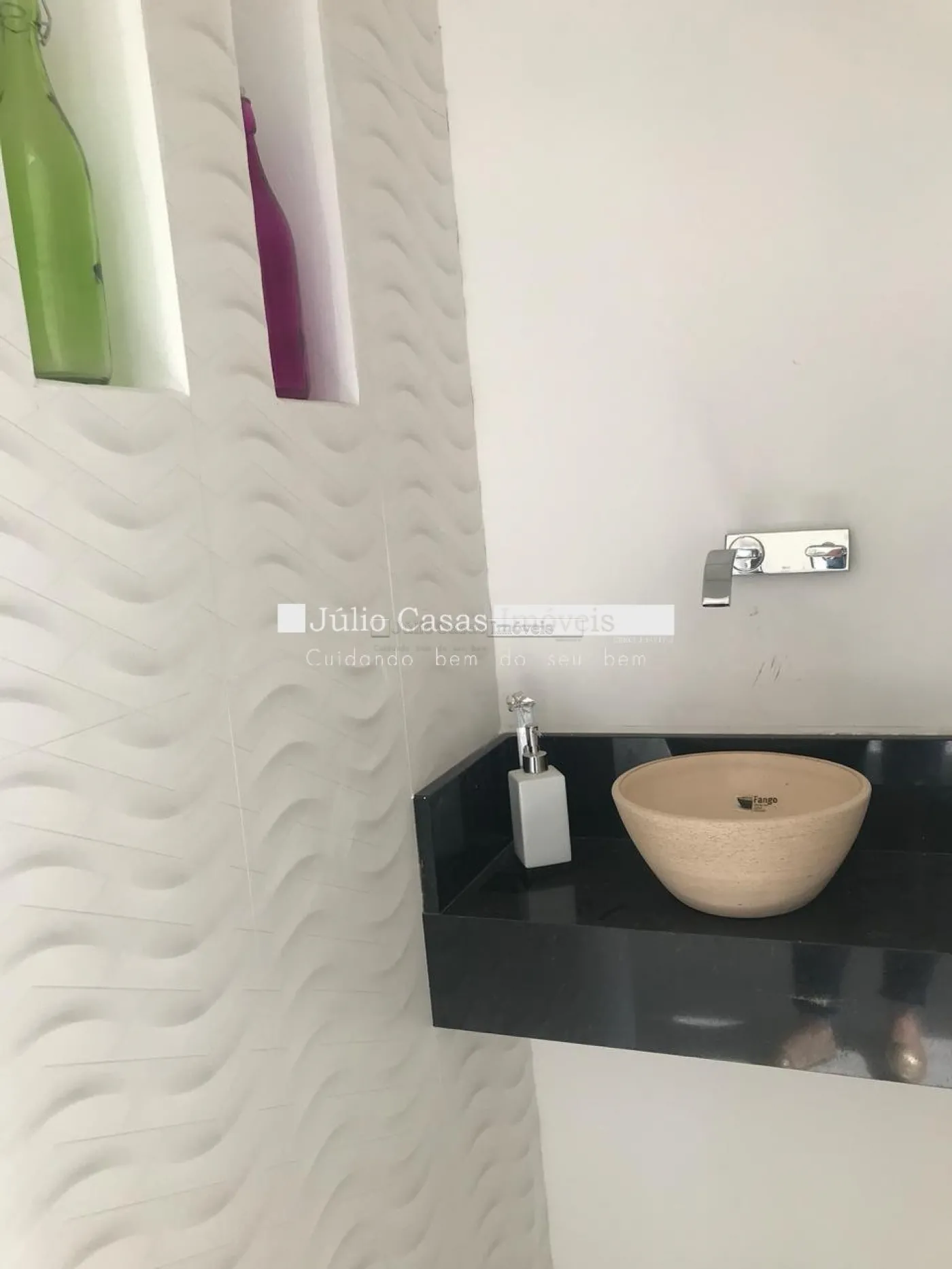 Casa no Vale dos Lagos, com fino acabamento e recém-construída. A residência conta com três quartos, todos suítes, além de duas salas, um banheiro social e um mezanino. A cozinha inclui uma despensa, e a área gourmet é equipada com churrasqueira.
