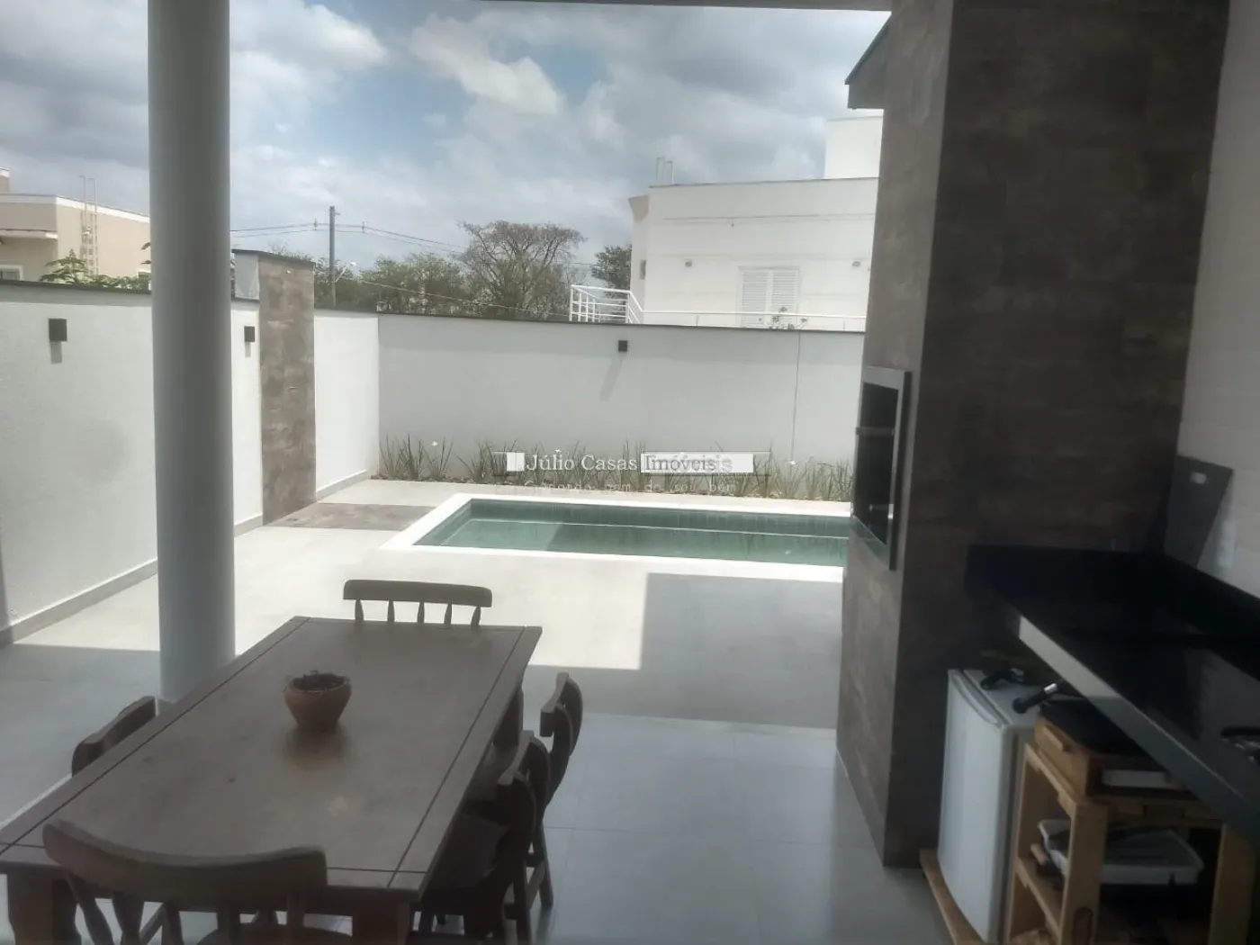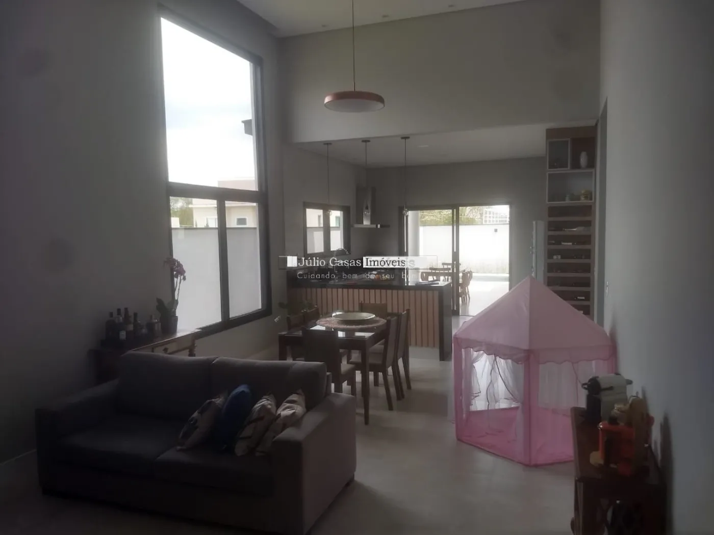 Casa em condomínio fechado, situada em uma área de 1.243m², cercada por amplos espaços verdes que oferecem qualidade de vida e tranquilidade incomparáveis. Esta casa térrea de 553m² é especialmente arejada e possui um design pensado para o máximo conforto. A residência dispõe de 3 quartos, incluindo uma suíte master com hidromassagem revestida em mármore travertino e detalhes em molduras de gesso. O amplo living comporta três ambientes distintos, ideal para momentos de convívio familiar. Destacando-se como ponto focal da casa, a área gourmet completa oferece um espaço elegante e convidativo para reunir familiares e amigos. Equipada com churrasqueira, forno e fogão a lenha, além de uma bancada em granito e detalhes em tijolinho à vista, é o local perfeito para encontros memoráveis. A varanda complementa o ambiente, proporcionando entretenimento adicional com mesas de pebolim, sinuca e uma sauna. Para momentos de relaxamento e lazer, a propriedade conta com uma piscina estrategicamente posicionada ao lado da churrasqueira. Situada na cidade de maior crescimento e uma das mais seguras da região metropolitana de São Paulo, a apenas 9 km do Shopping Cidade, esta casa oferece conveniência e segurança sem igual. Agende sua visita hoje mesmo e traga sua família para apreciar esta verdadeira obra de arte