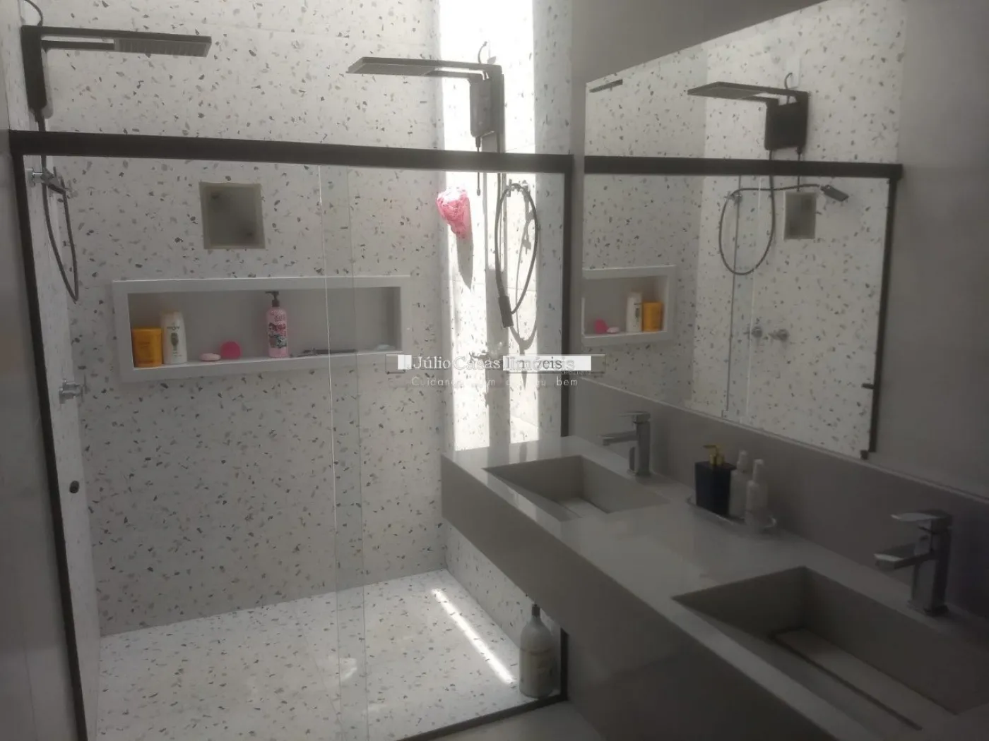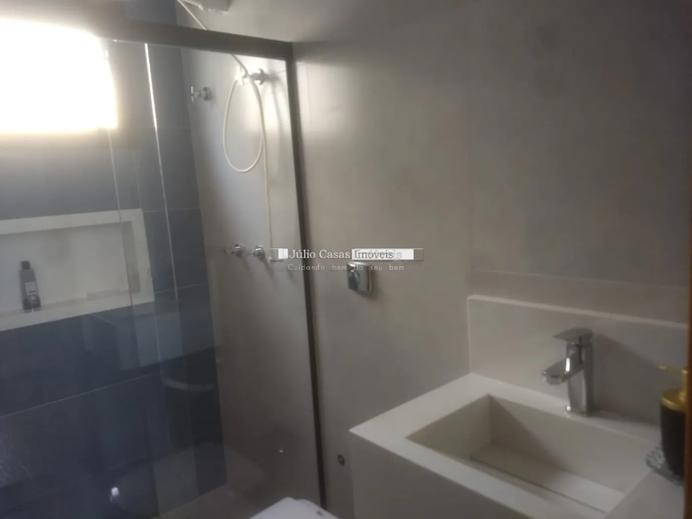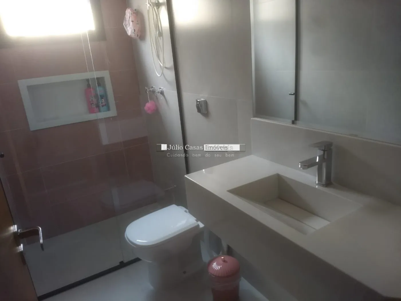 3suítes amplas todas com acabamento em gesso rebaixado para luminárias embutidas, todos os banheiros com painel em pastilha, pia esculpidas. Todas as esquadrias com mosqueteiro.