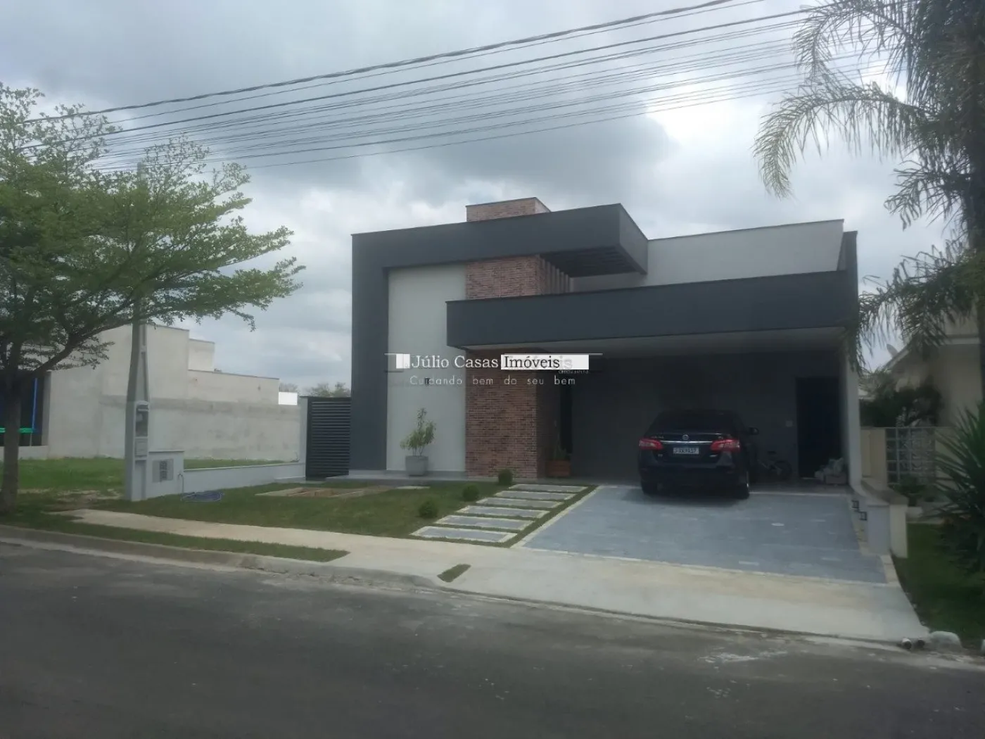 Frente com garagem para 4 veículos sendo 2 cobertas.