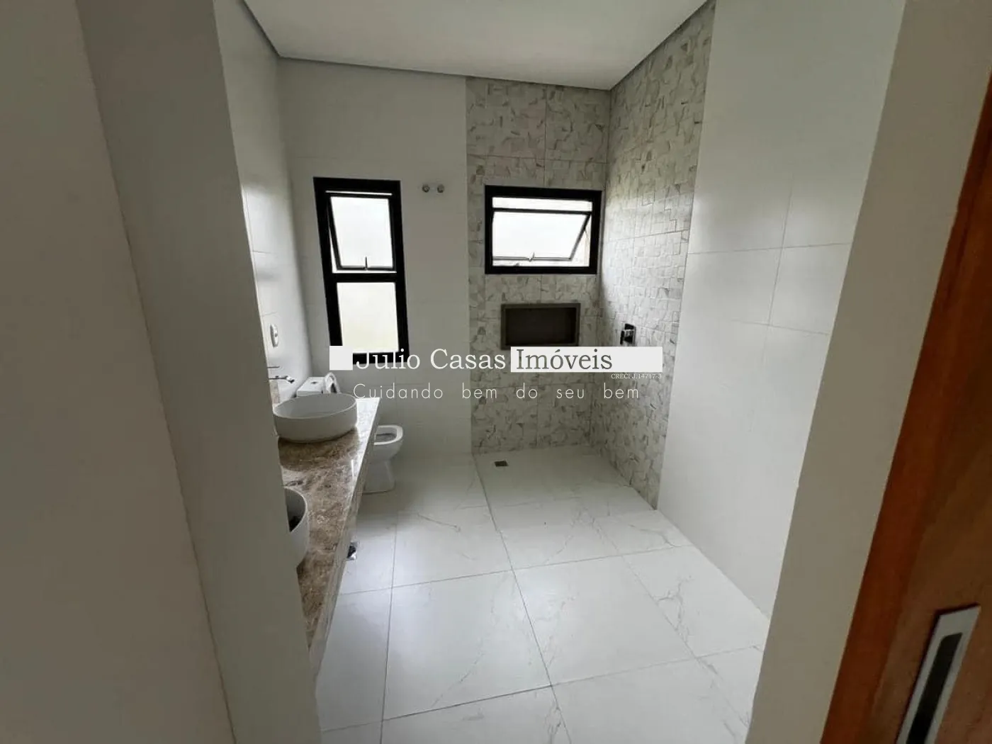 A casa é extremamente arejada, com grande entrada de luz natural e toda preparada para instalação de ar condicionado. O acabamento é impecável, com revestimentos e pisos em porcelanato de primeira linha em toda a residência.