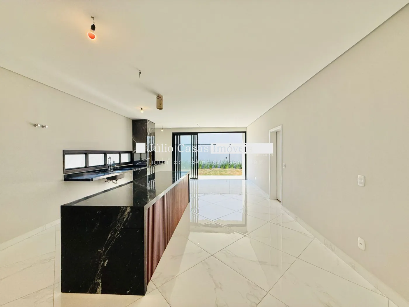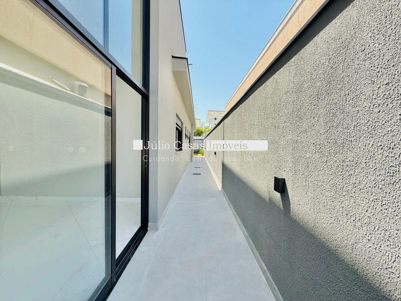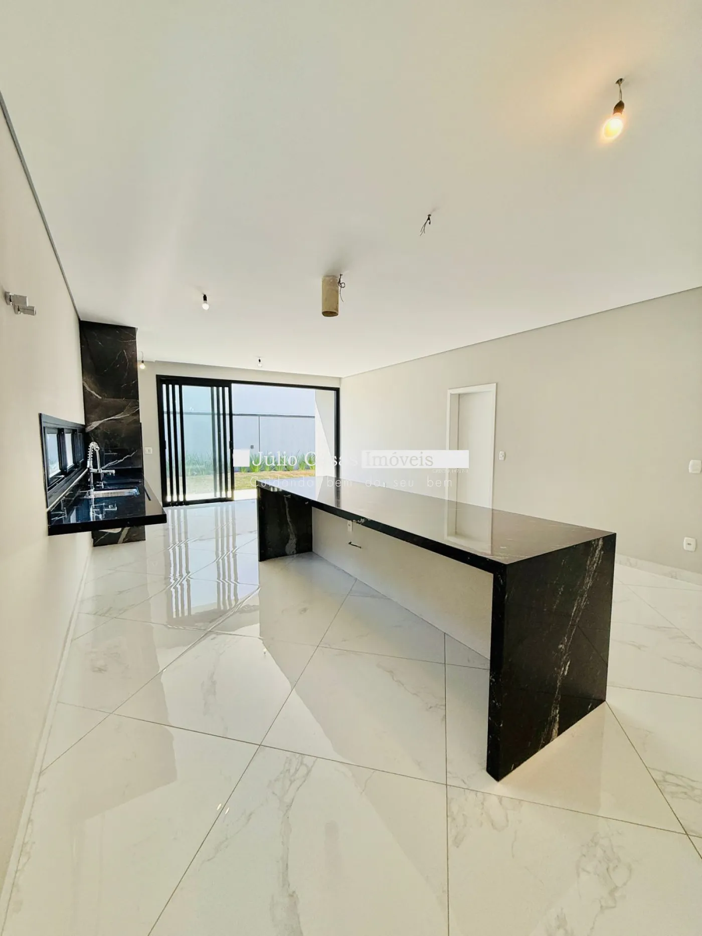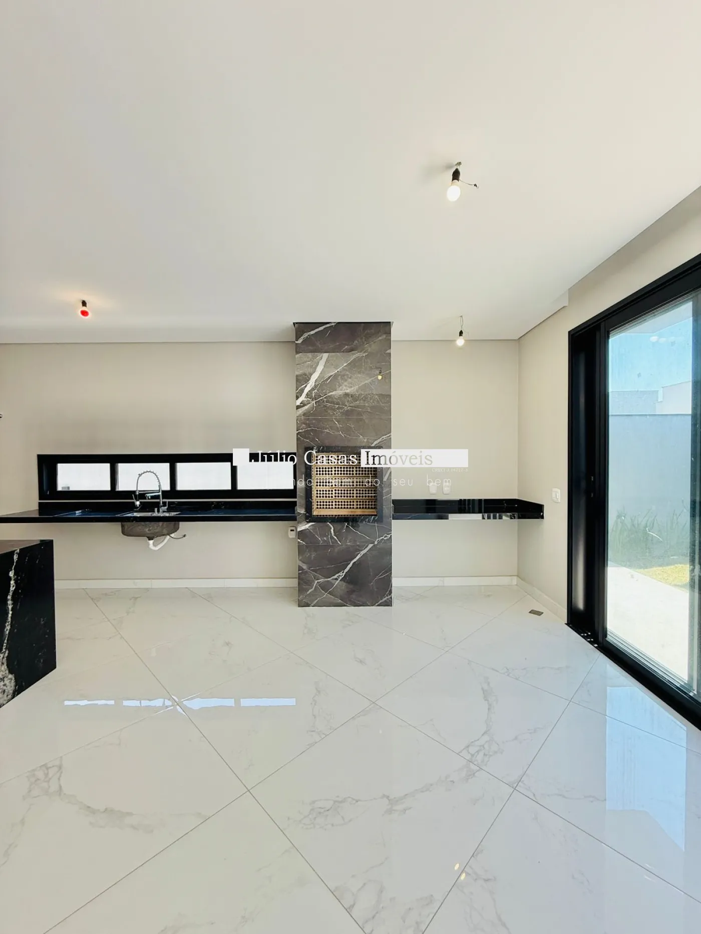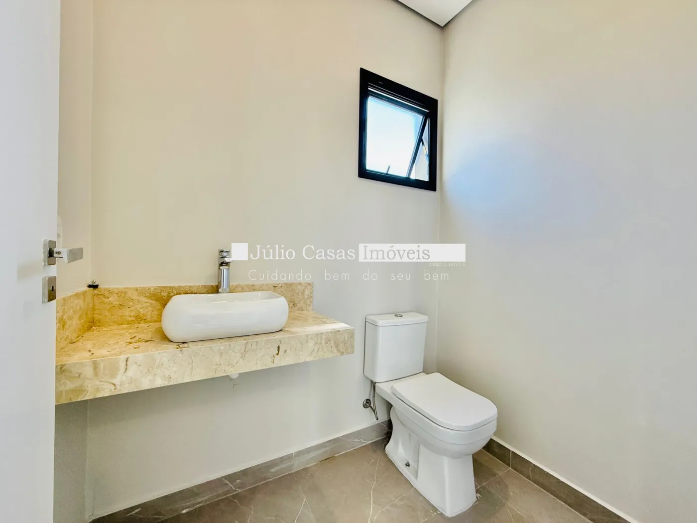 Casa térrea a venda em condomínio com sala 2 ambientes com pé direito duplo, cozinha integrada com ilha ampla em granito São Gabriel, a área gourmet com churrasqueira e pia, lavabo, 3 suítes amplas 1 sendo máster com espaço para closet, quarto em piso carpete madeira, ambientes frios e sala em porcelanato primeira linha, persianas automatizadas, banheiros com nicho e pia em mármore travertino com cuba sobreposta. quintal gramado, exaustão para churrasqueira, pressurizador na caixa d`água, infraestrutura completa para ar condicionado, e infraestrutura pronta para aquecedor solar. Entrada de serviço independente.